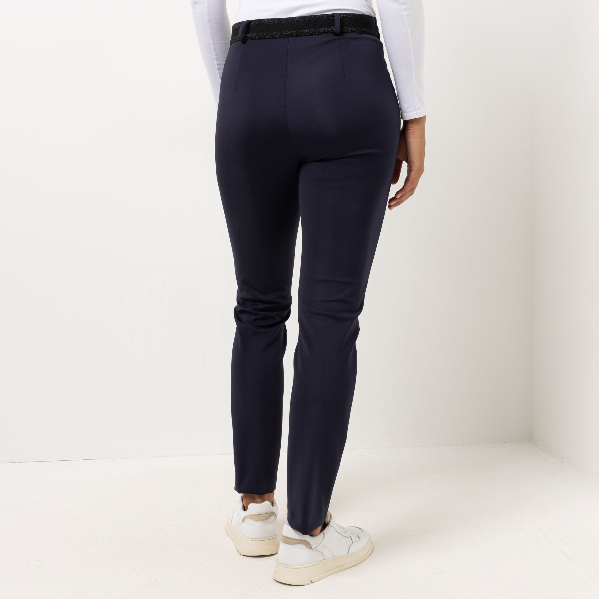 Edler Look, der seinen hohen Tragekomfort versteckt: Die Hose Lillyth New von RAPHAELA BY BRAX im zeitlosen Navy-Ton ist aus weichem Jersey gemacht. Sie hat einen Bund mit Gürtelschlaufe, Knopf und verdecktem Reißverschluss sowie Reißverschlusstaschen.