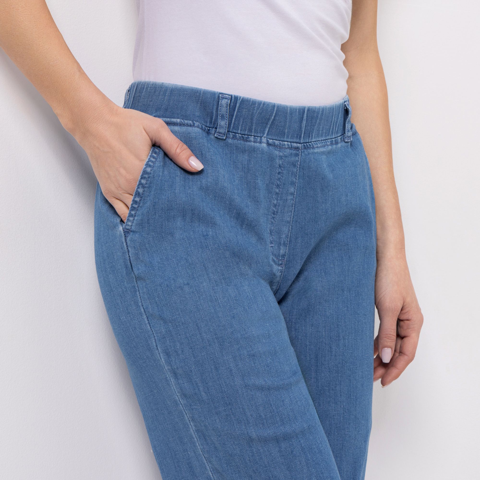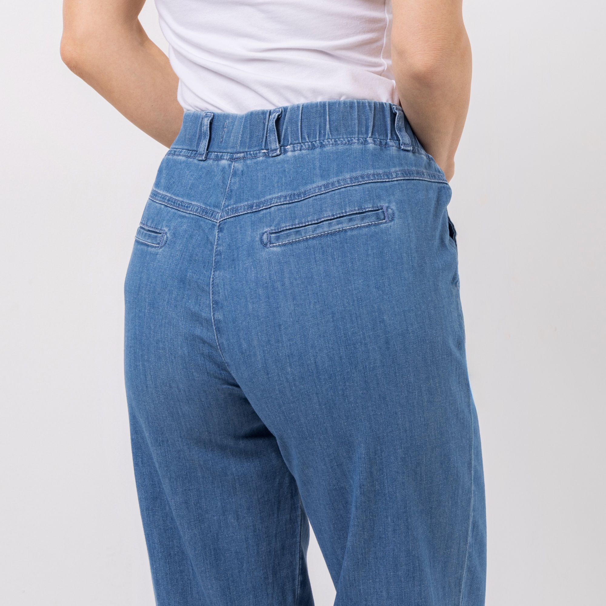 • Rundumdehnbund mit Gürtelschlaufen
