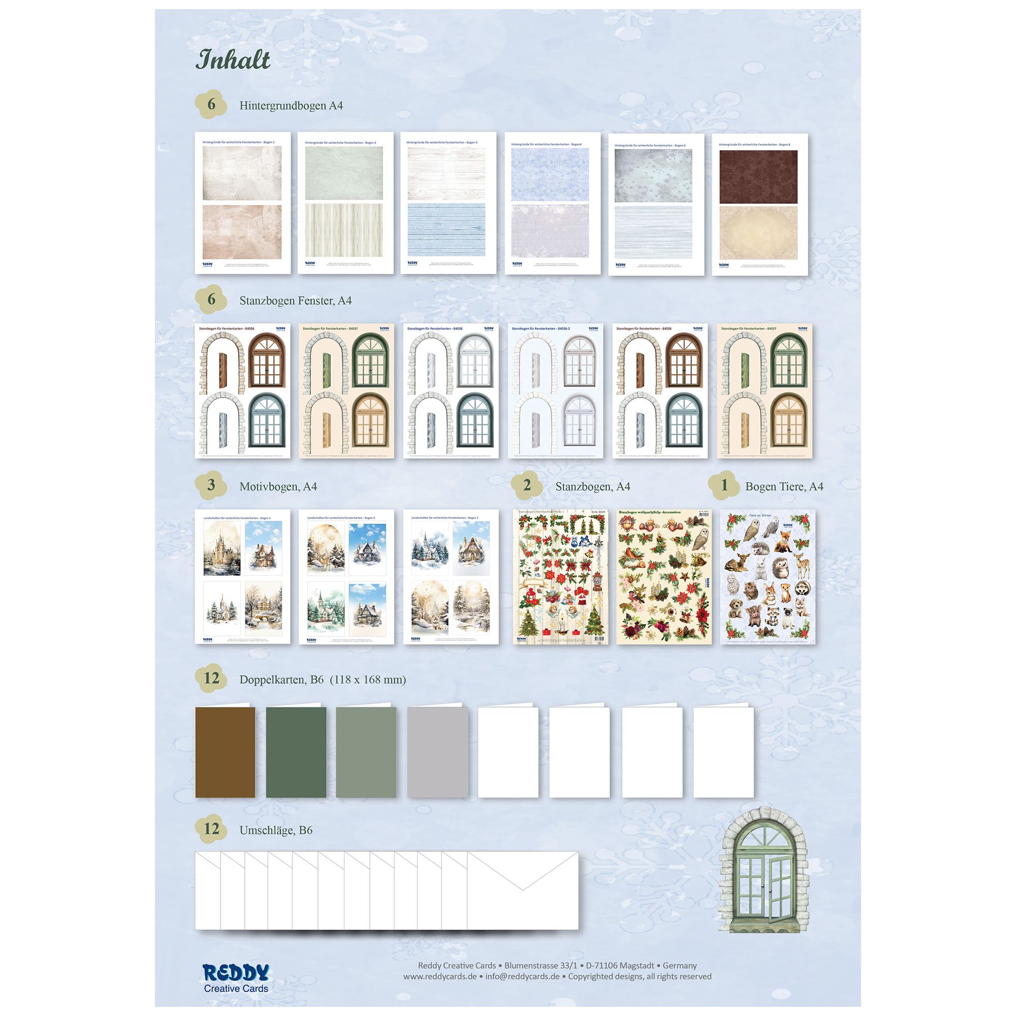 REDDY Grußkarten-Set Fensterkarten inkl. Stanzbogen 41tlg.