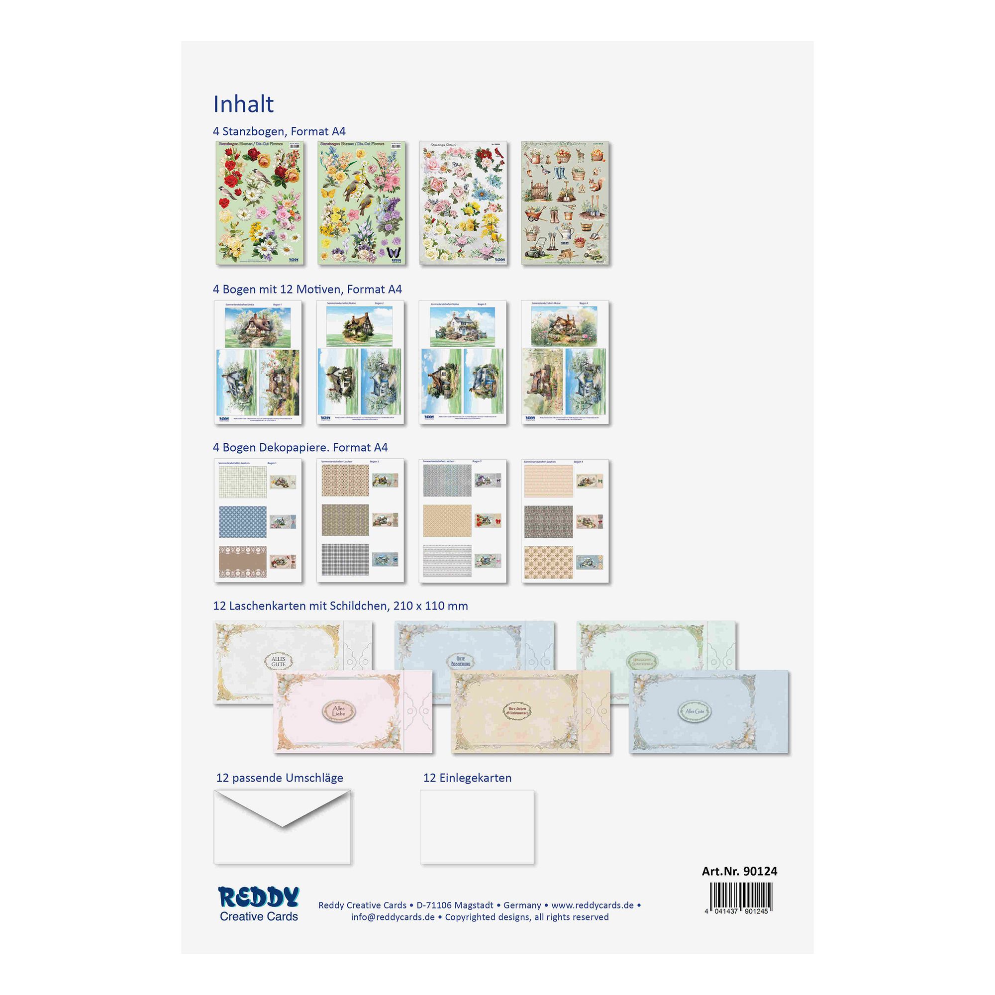 Mit REDDY gestaltest du einzigartige Grußkarten, die sommerliche Landschaften und blühende Blumenarrangements in den Mittelpunkt stellen. Das Set vereint liebevoll bedruckte Passepartoutkarten, detailreiche Motiv- und Stanzbogen und praktische Einlegekarten – so entstehen im Nu kleine Kunstwerke, die deine persönliche Handschrift tragen und Freude bereiten. Die perfekt abgestimmten Bestandteile laden dazu ein, kreative Grüße oder individuelle Geschenkverpackungen zu gestalten, ganz ohne Vorkenntnisse.