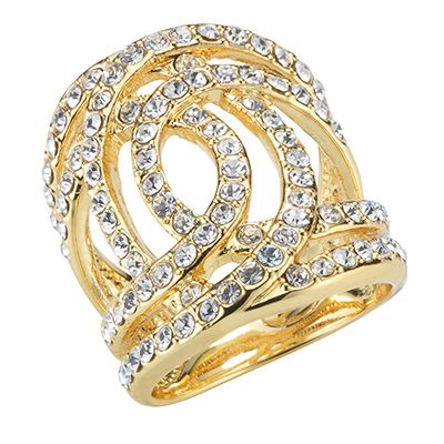 Wie ineinander verschlungene Lichtstrahlen wirkt der Cocktailring "Intreccio" aus der Kollektion Roberto by RFM. Er ist aus poliert und vergoldet gearbeitet und ist zu jedem festlichen Anlass ein toller Hingucker!
