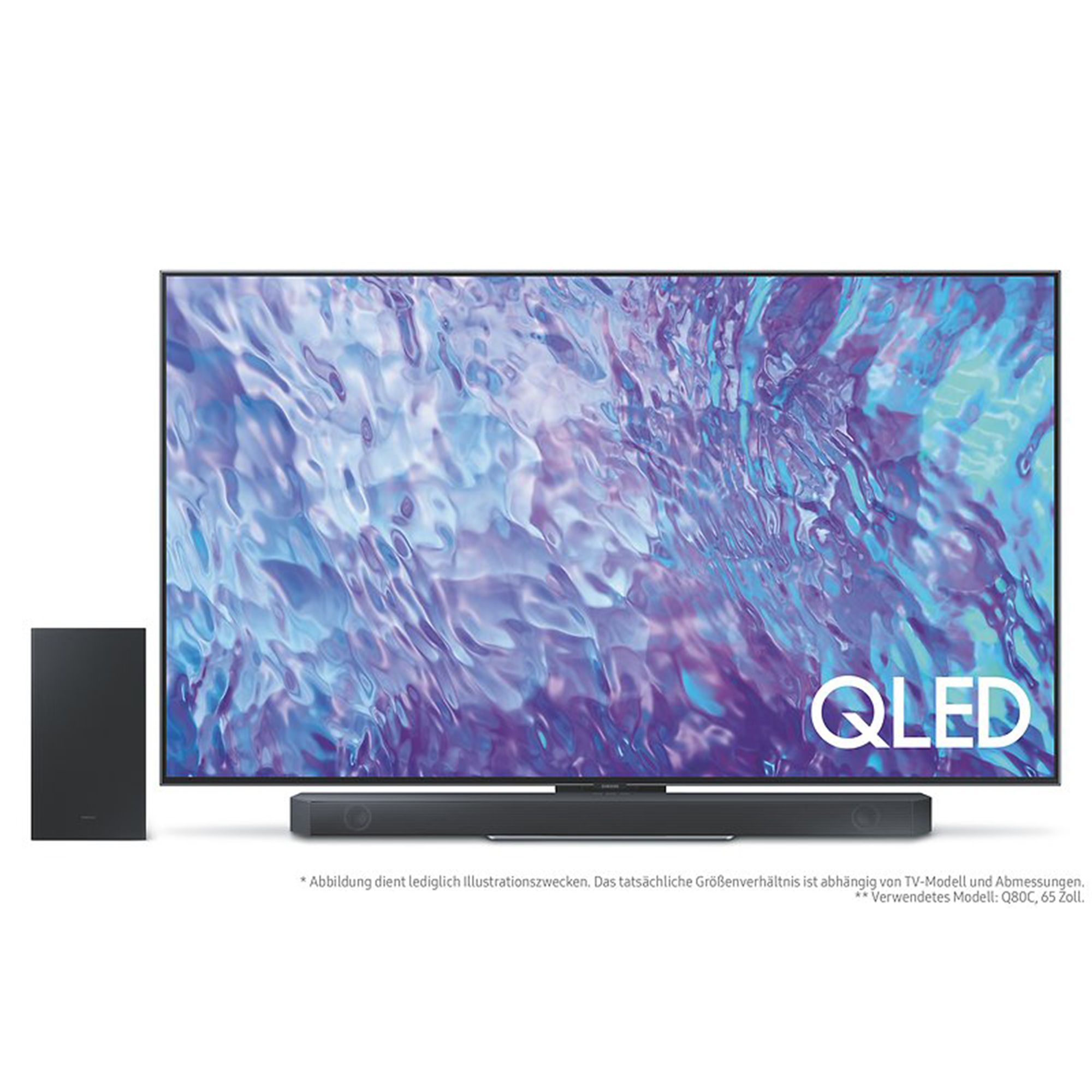 Das Set von SAMSUNG umfasst eine Soundbar mit 3.1-Kanal-Surround-Sound mit 7 integrierten Lautsprechern und einen externen 6,5 Zoll Wireless Subwoofer.