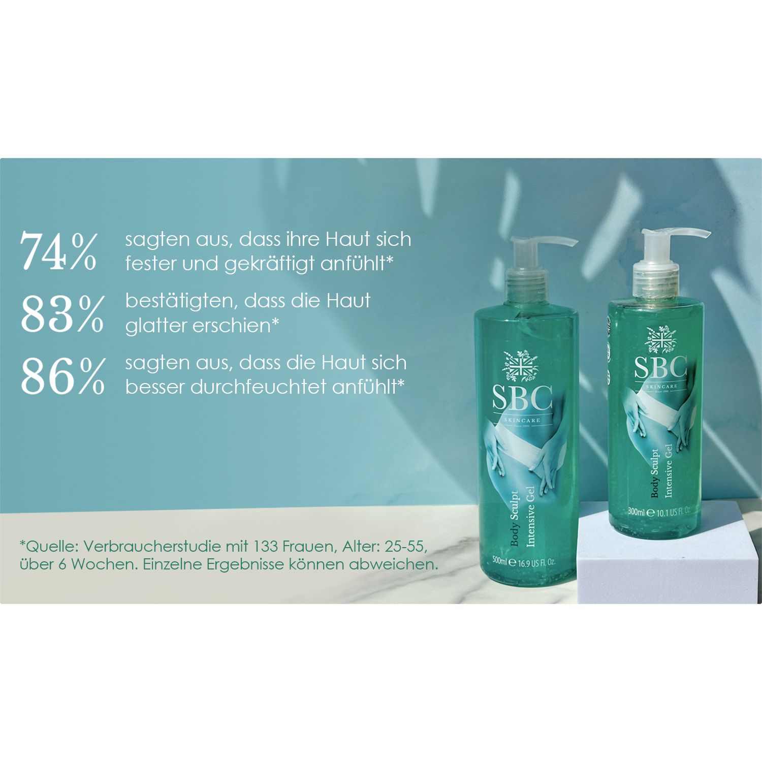 Sichtbar gut gepflegt: mit dem SBC Body Sculpt Intensive Gel. Das hochwirksames Körpergel hilft gezielt dabei, Hautpartien zu straffen und die Haut sichtbar fester und glatter erscheinen lässt.