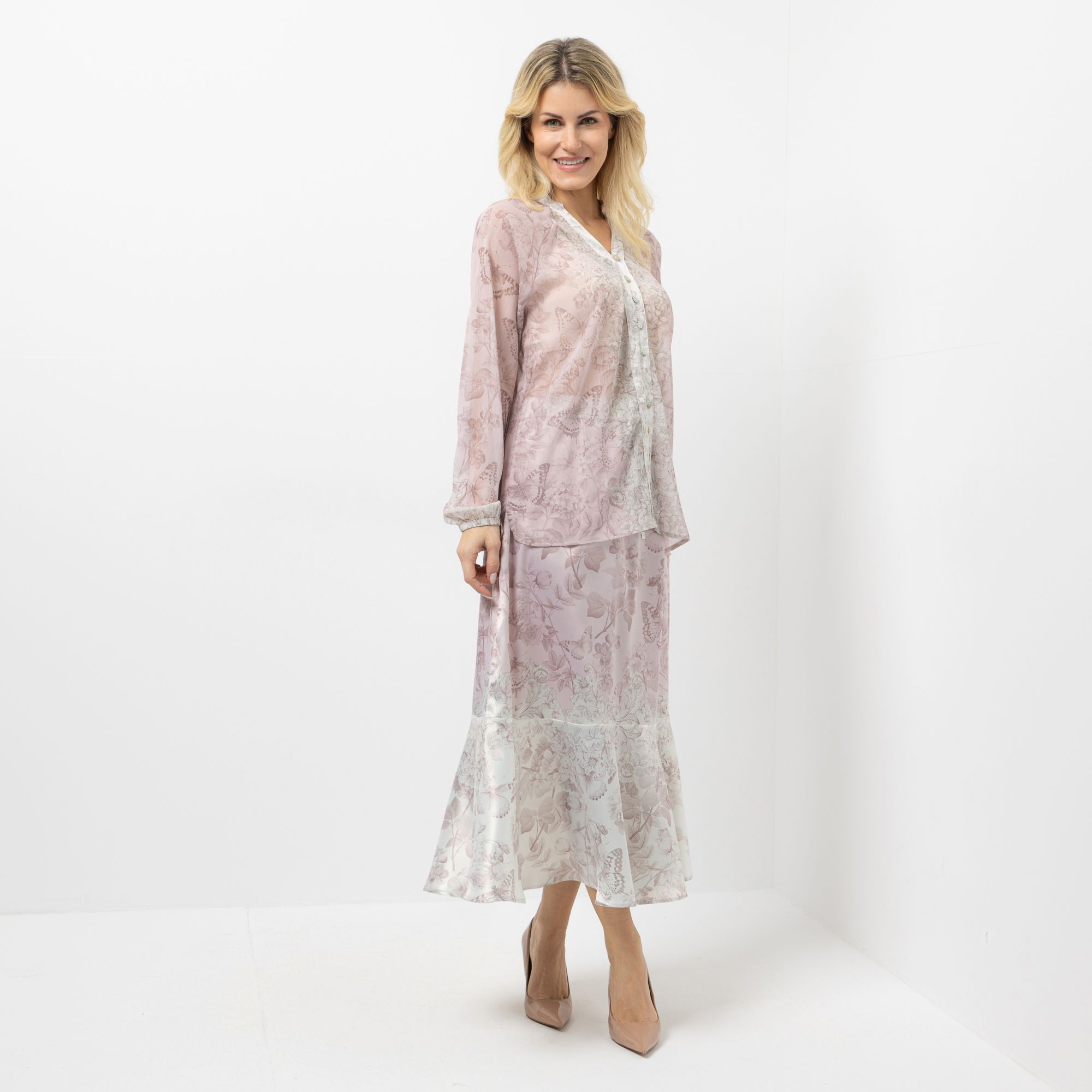 Jedes Designermodell wird einzeln bedruckt, deshalb können sich Unregelmäßigkeiten oder weiße Kontrasteffekte an unterschiedlichen Stellen befinden. Dieses Merkmal ist charakteristisch für die hochwertigen Drucke. Verschiedene Motive werden handgemalt und danach als Druck dupliziert. Hiermit entsteht ein von der Designerin exklusiv entworfener Print, der mit ihrer Signatur versehen ist.