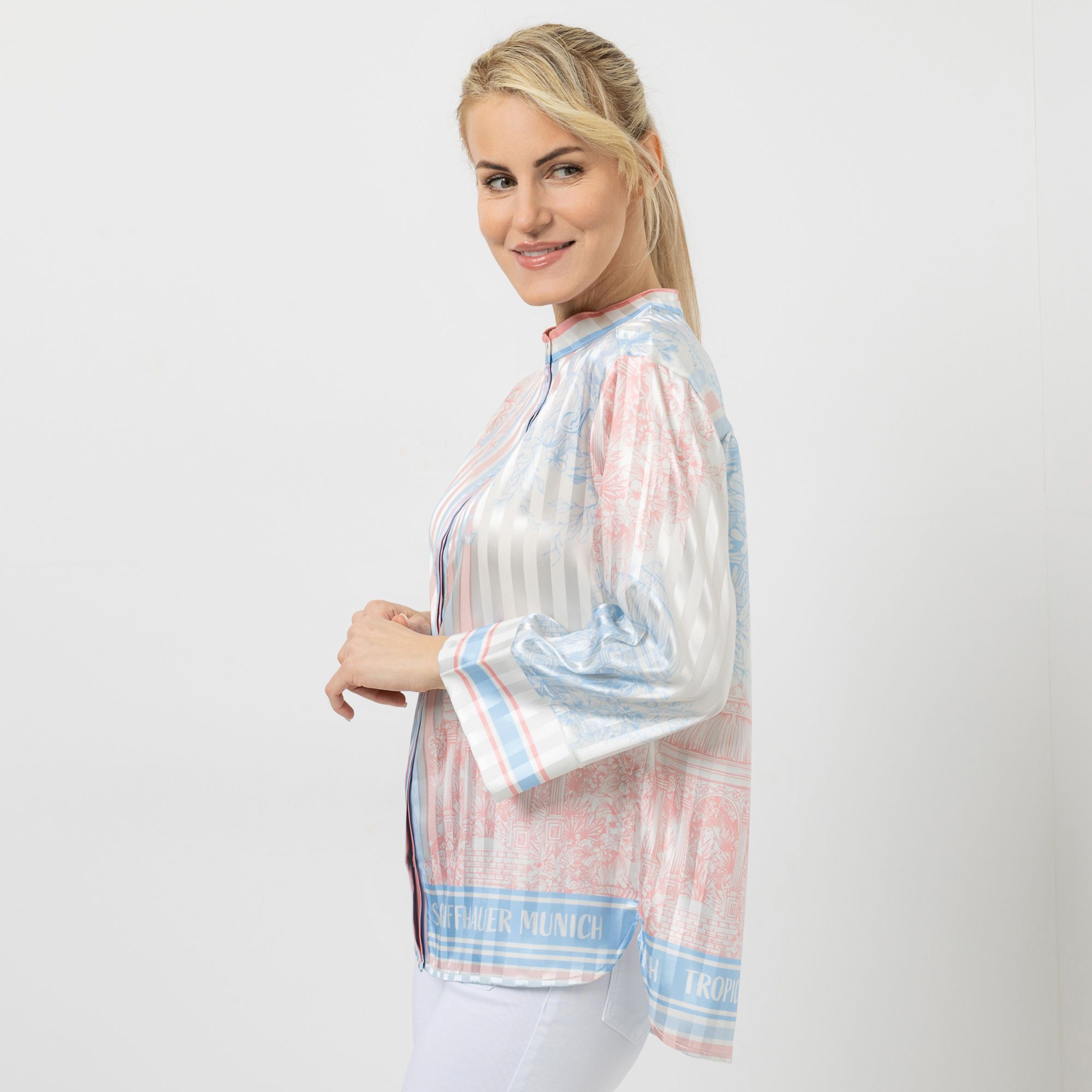 Edler Look: Die SCHIFFHAUER MUNICH® Bluse ist ein exklusives Designer-Stück.
