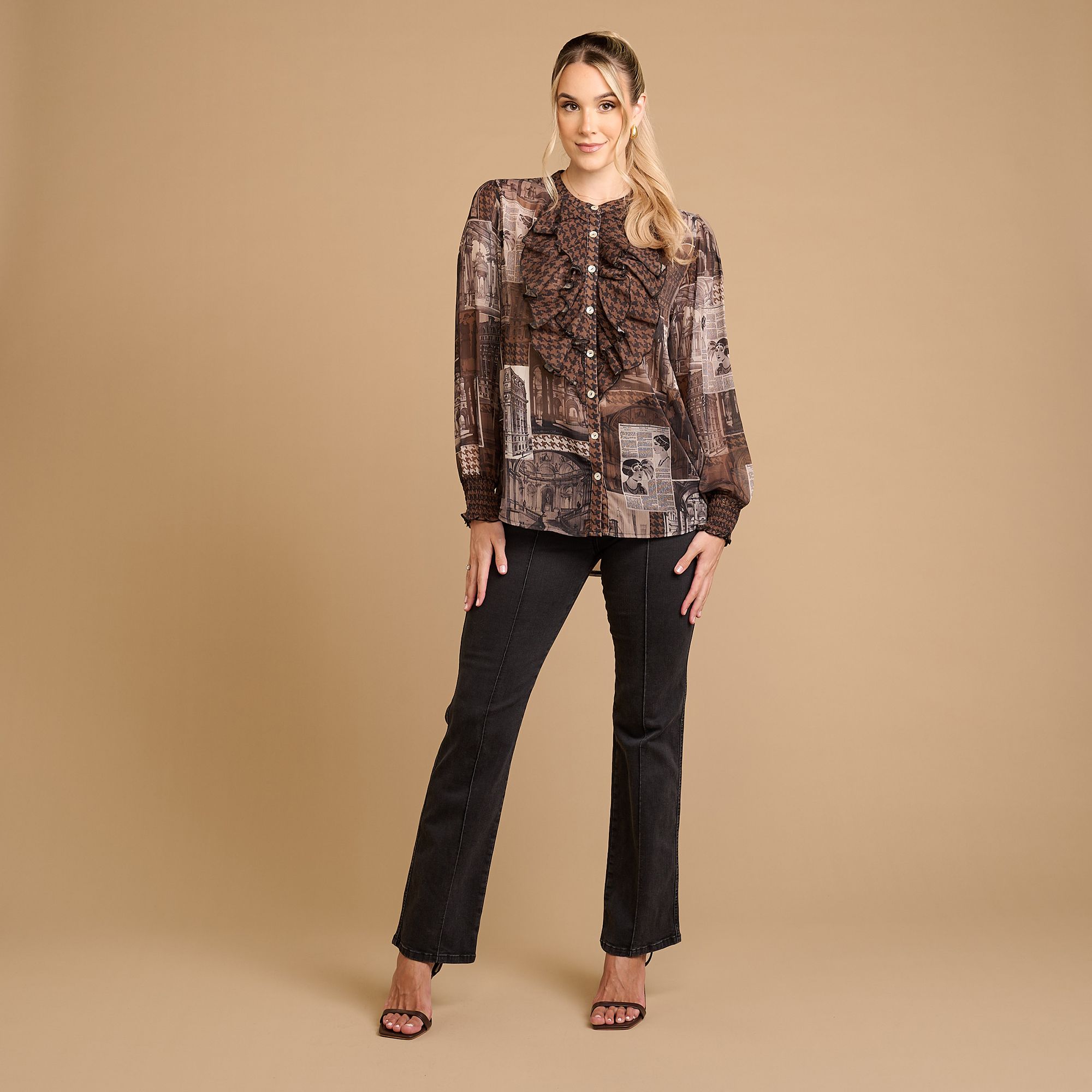 Exklusivprint, Volants, Logoknöpfe: Die Bluse Italy von SCHIFFHAUER MUNICH® inspiriert wie ein Kurzurlaub am Mittelmeer