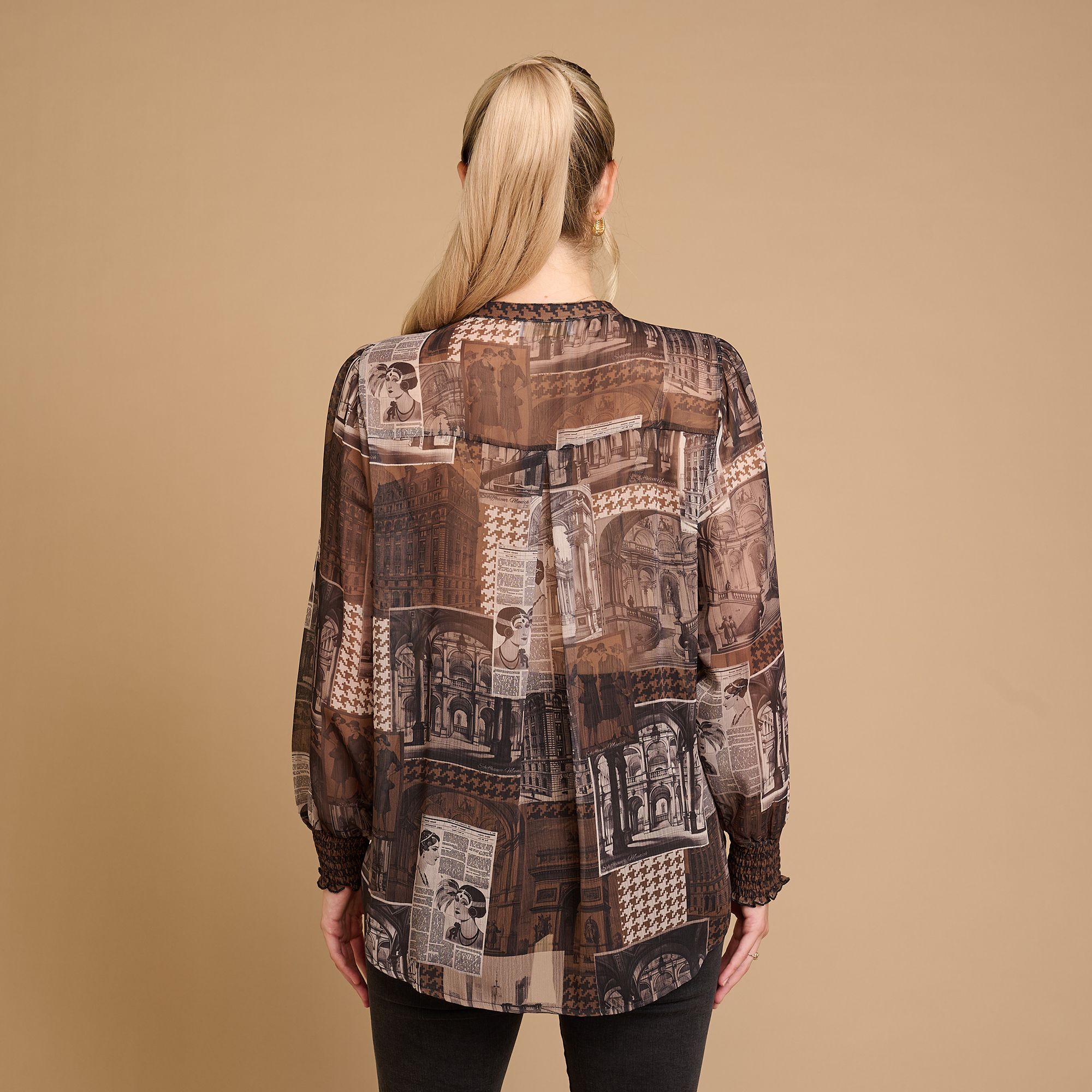 SCHIFFHAUER MUNICH® Bluse Italy Rundhalsausschnitt Allover Druck figurumspielend