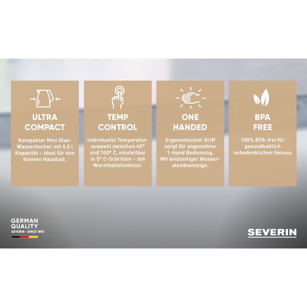 SEVERIN Mini-Wasserkocher WK 3458 0,5L Volumen Temperaturregelung