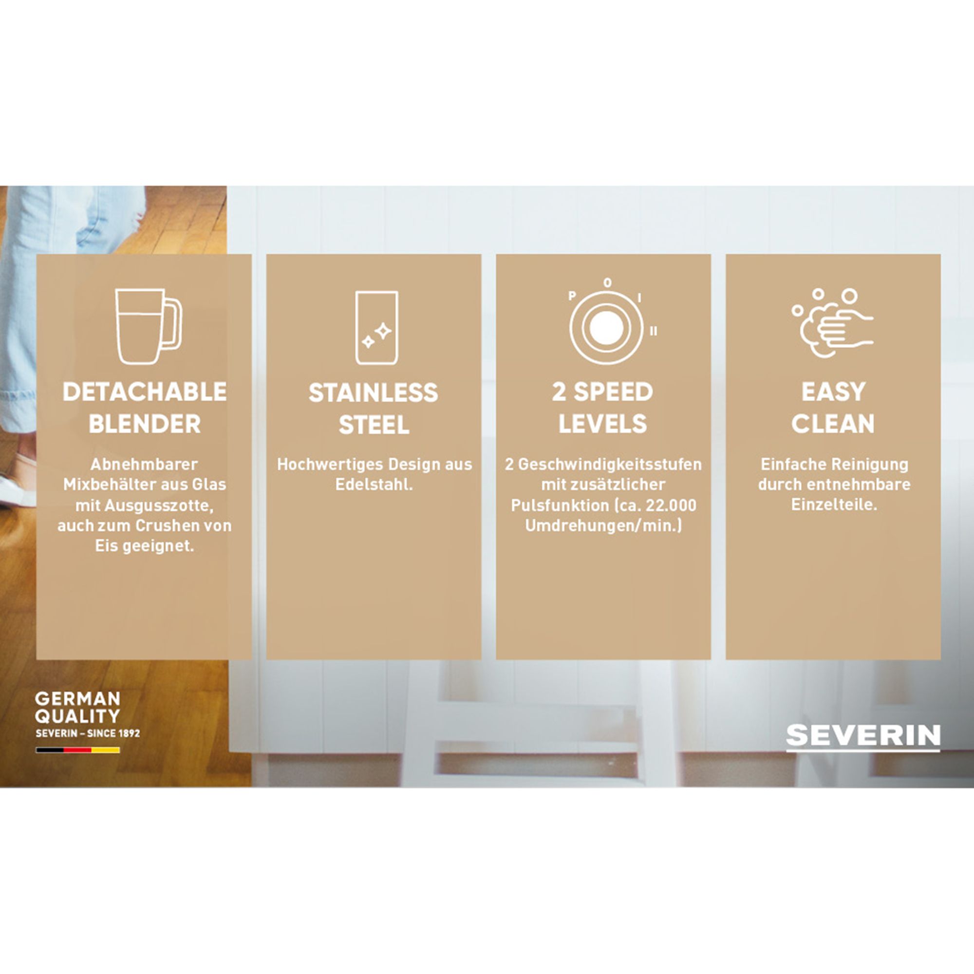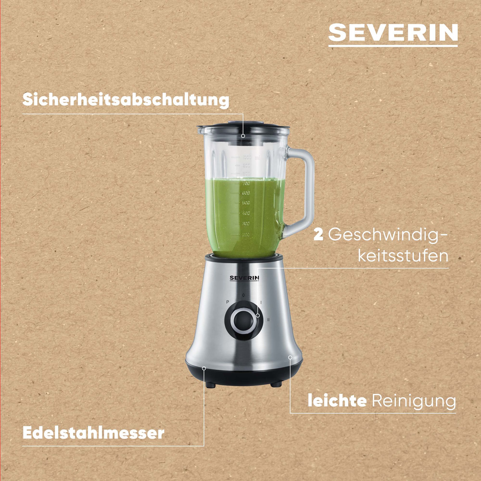 Der ideale Begleiter für deinen Koch- und Backalltag: Der SEVERIN SM 3734 Standmixer mit Glas-Mixbehälter und einer Leistung von 550 Watt zaubert im Handumdrehen köstliche Smoothies, Suppen und vieles mehr.