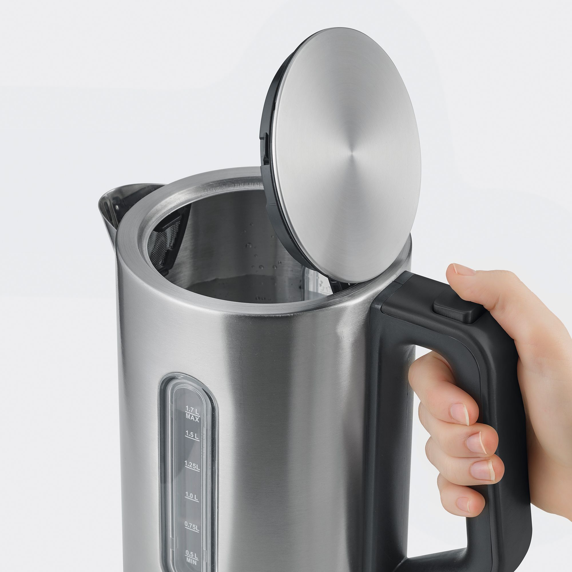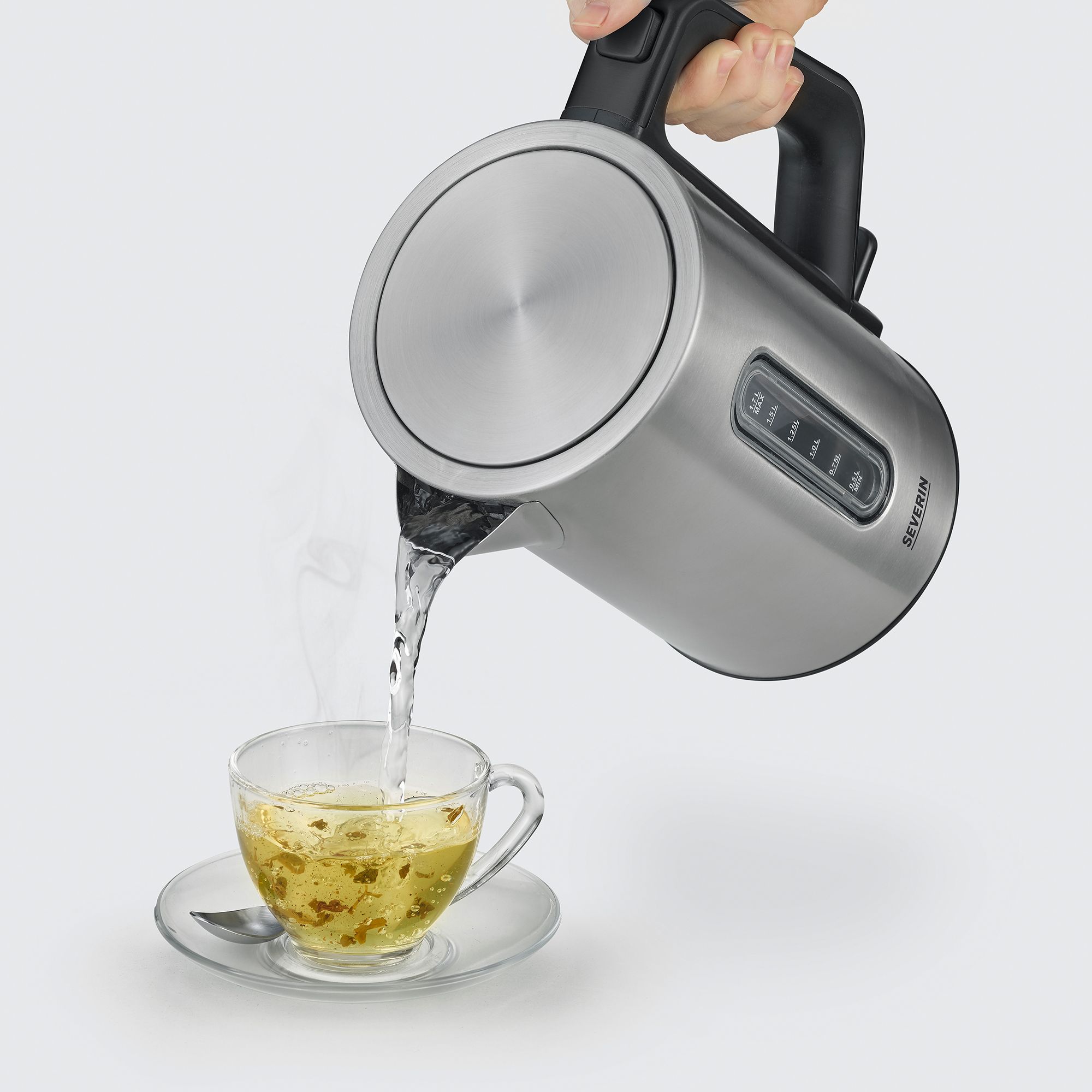 Ein zuverlässiget Küchenhelfer, der dir das Erhitzen von Wasser besonders einfach macht: Der SEVERIN WK 3402 Wasserkocher. Das großzügige Fassungsvermögen von 1,7 Liter sorgt dafür, dass du mehrere Portionen auf einmal zubereiten kannst – ideal für gesellige Teerunden oder den schnellen Kaffee zwischendurch.
