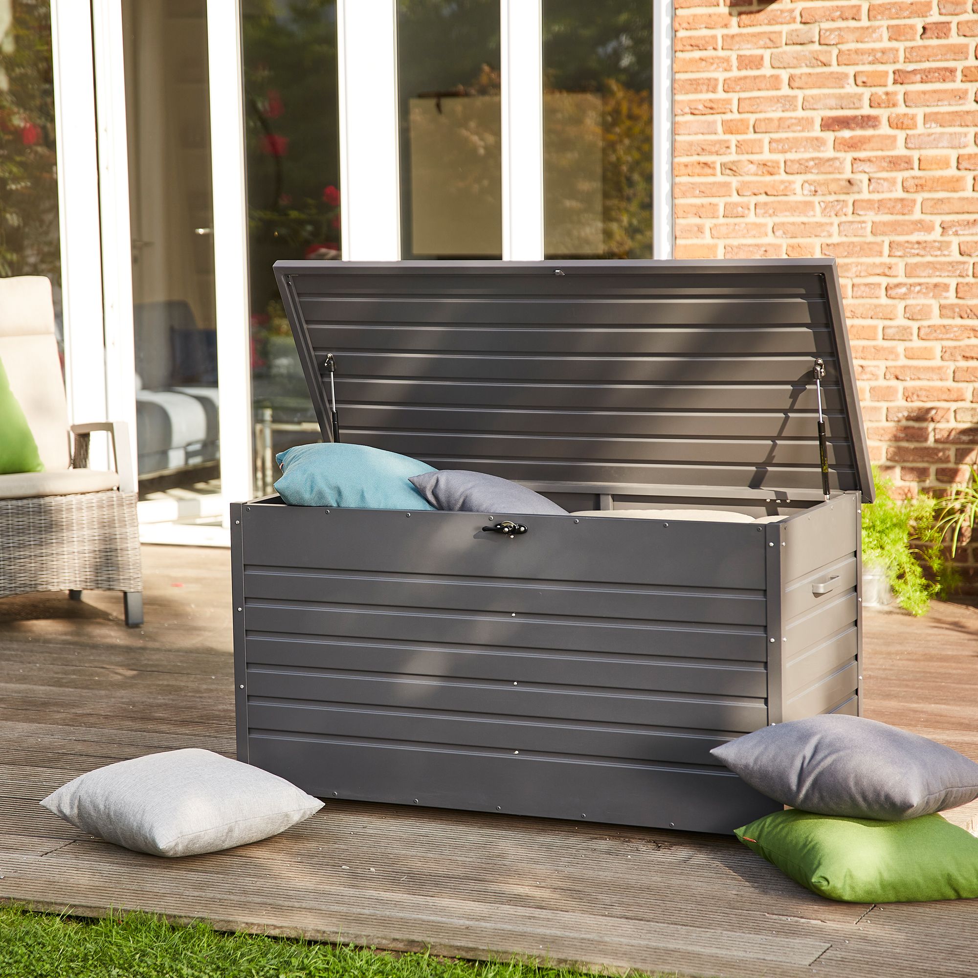 Die Gläser sind leer, die Sterne blinken am Himmel, die Nachtkühle zieht herauf und man will sich ins Haus verabschieden: Wohin mit den Kissen? Die Kissenbox „Sabano“ von SIENA GARDEN macht es dir leicht! Verstau die Sitz-Accessoires mit einem Handgriff in der Box. Tolles Extra: Dank der Rollen lässt sich die Box problemlos umstellen, sodass sie nie im Weg rumsteht.