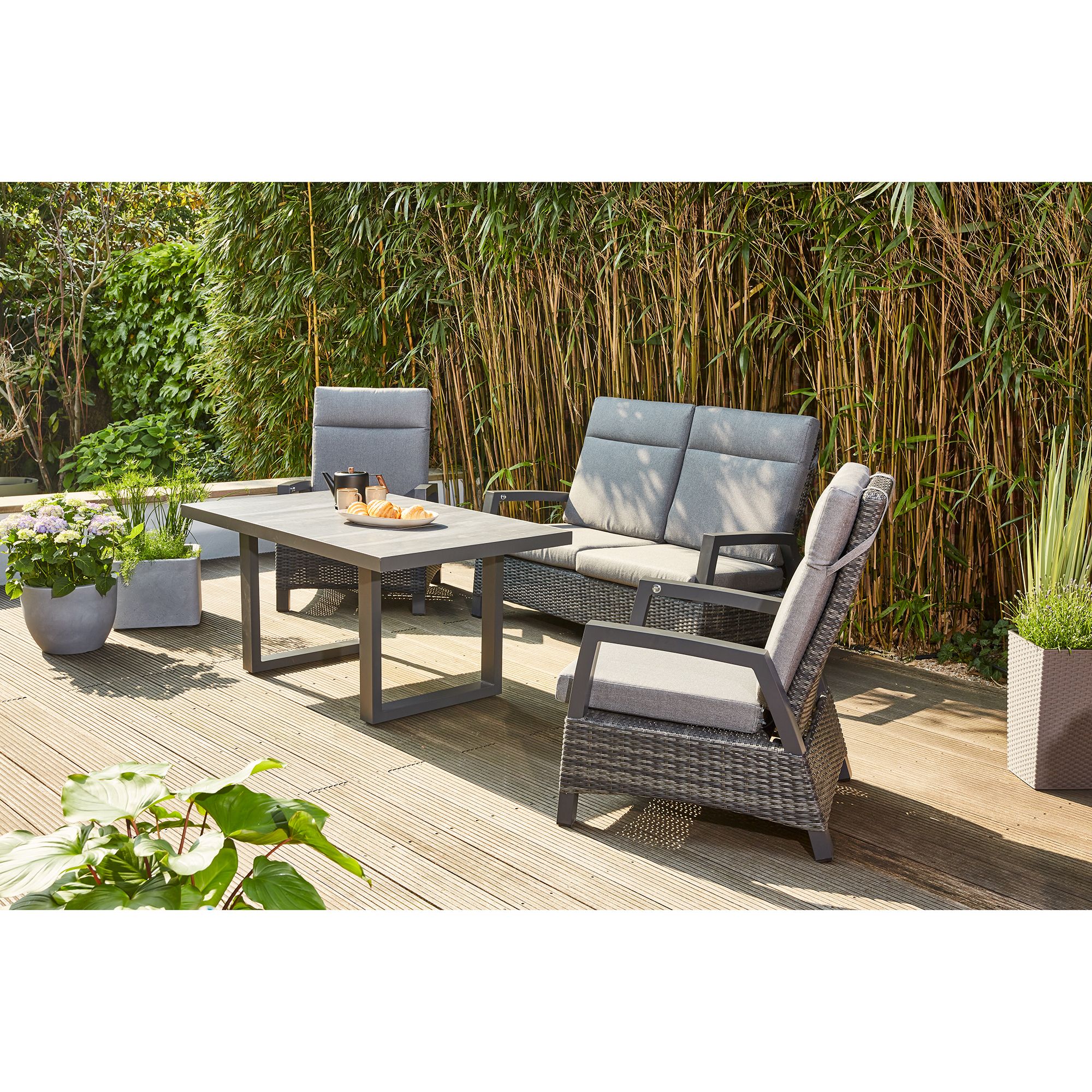 Das 4-teilige Loungeset Taranto von SIENA GARDEN kombiniert modernes Design mit höchstem Komfort. Ob für gemütliche Abende mit Freunden oder entspannte Stunden in der Sonne – mit diesem Set verwandelst du Garten oder Terrasse in eine stilvolle Wohlfühloase!
