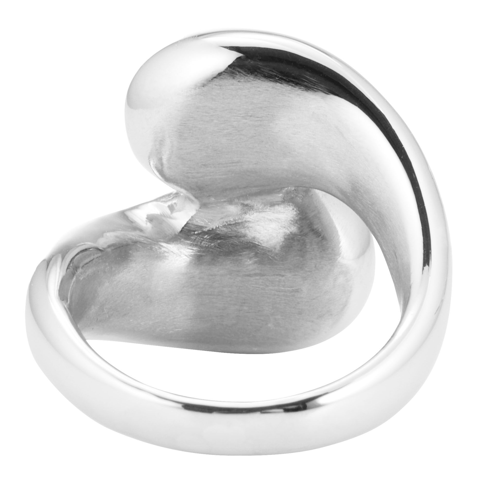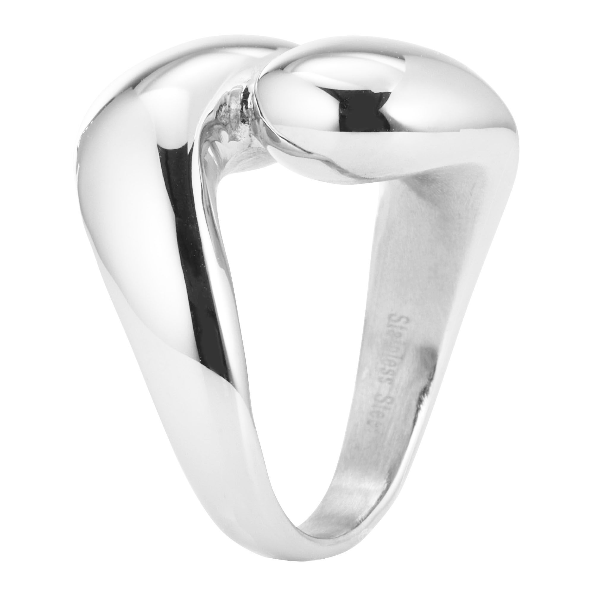 Wie ein Stück Kunst präsentiert sich dieser elegante Croisé-Ring an der Damenhand: Der attraktive Schmuck ist in feinstem Edelstahl gefertigt und schimmernd in poliertem Finih – für maximale optische Effekte!