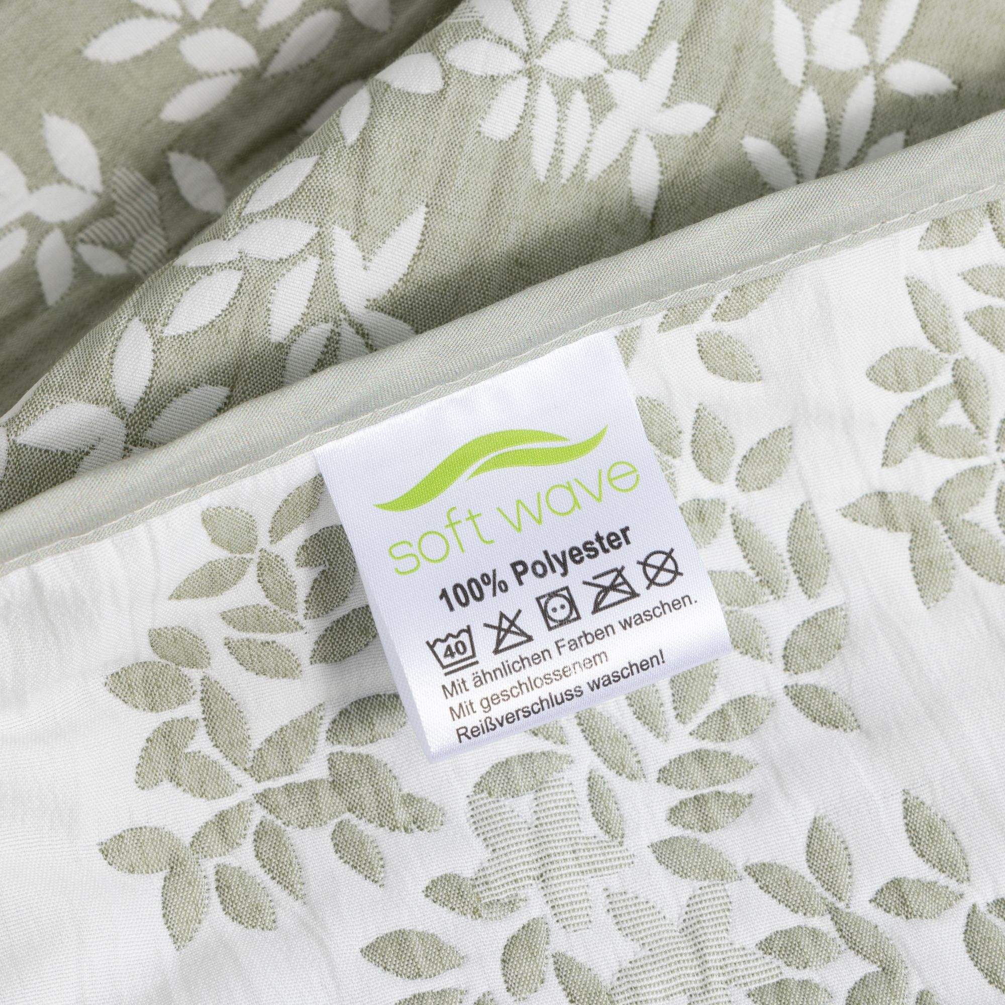 SOFT WAVE bringt mit dieser Tagesdecke aus hochwertigem Jacquard-Stoff eine attraktive Mischung aus angenehmer Struktur und stilvollem Design ins Zuhause. Die Blätterranke zeigt sich auf der Vorderseite im Positivdruck und auf der Rückseite als Negativdruck – das Ergebnis: eine spannende Optik und Abwechslung auf dem Bett, die zu vielen Einrichtungstilen passt. Dank der antibakteriellen Ausrüstung bleibt das Material zudem lange frisch.