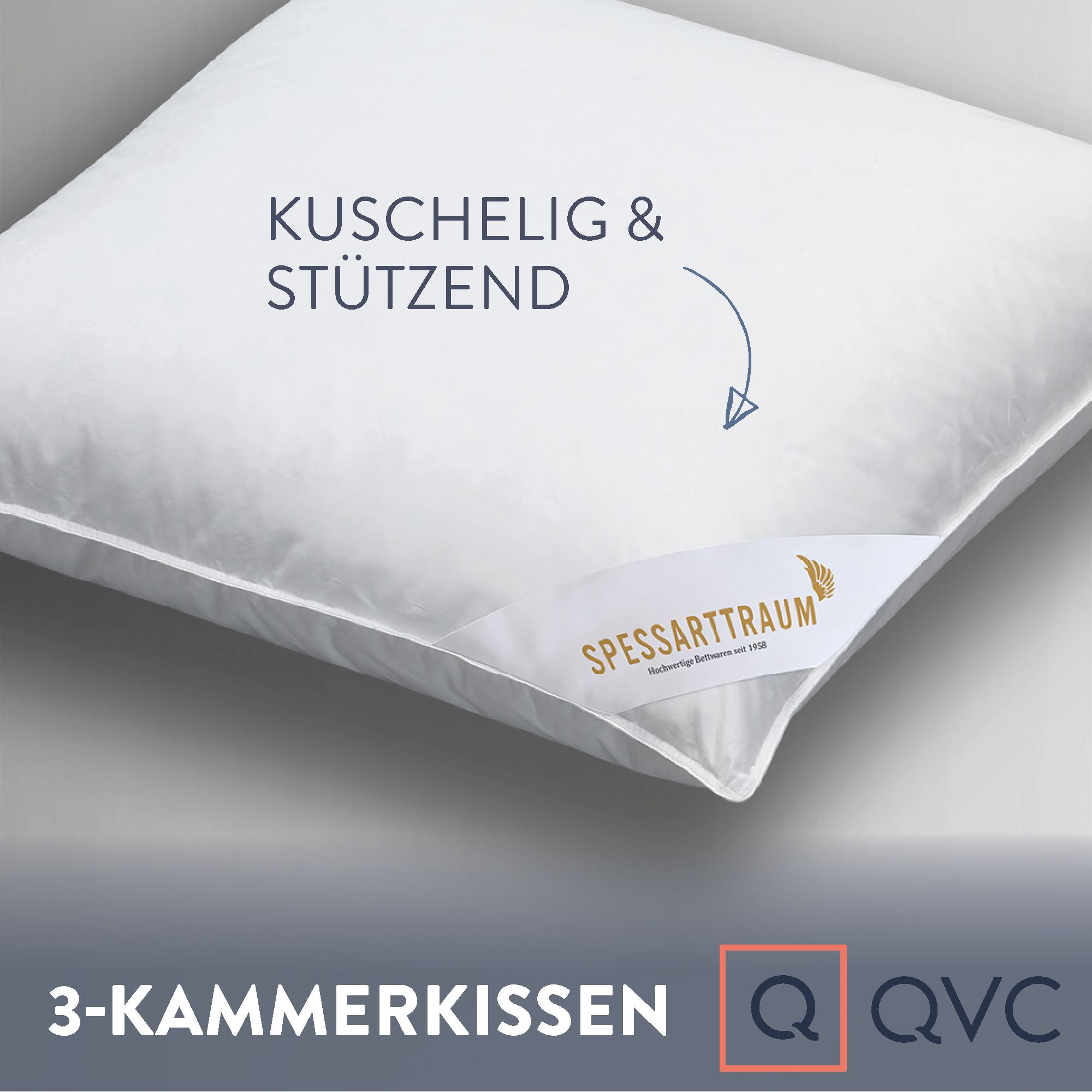 SPESSARTTRAUM vereint anspruchsvolle Materialien mit innovativer Funktion. Das Q-llektion 3-Kammer-Kissen hydrophobe Daune verbindet weiche Umschlossenheit mit unterstützender Festigkeit durch seinen speziellen Aufbau.