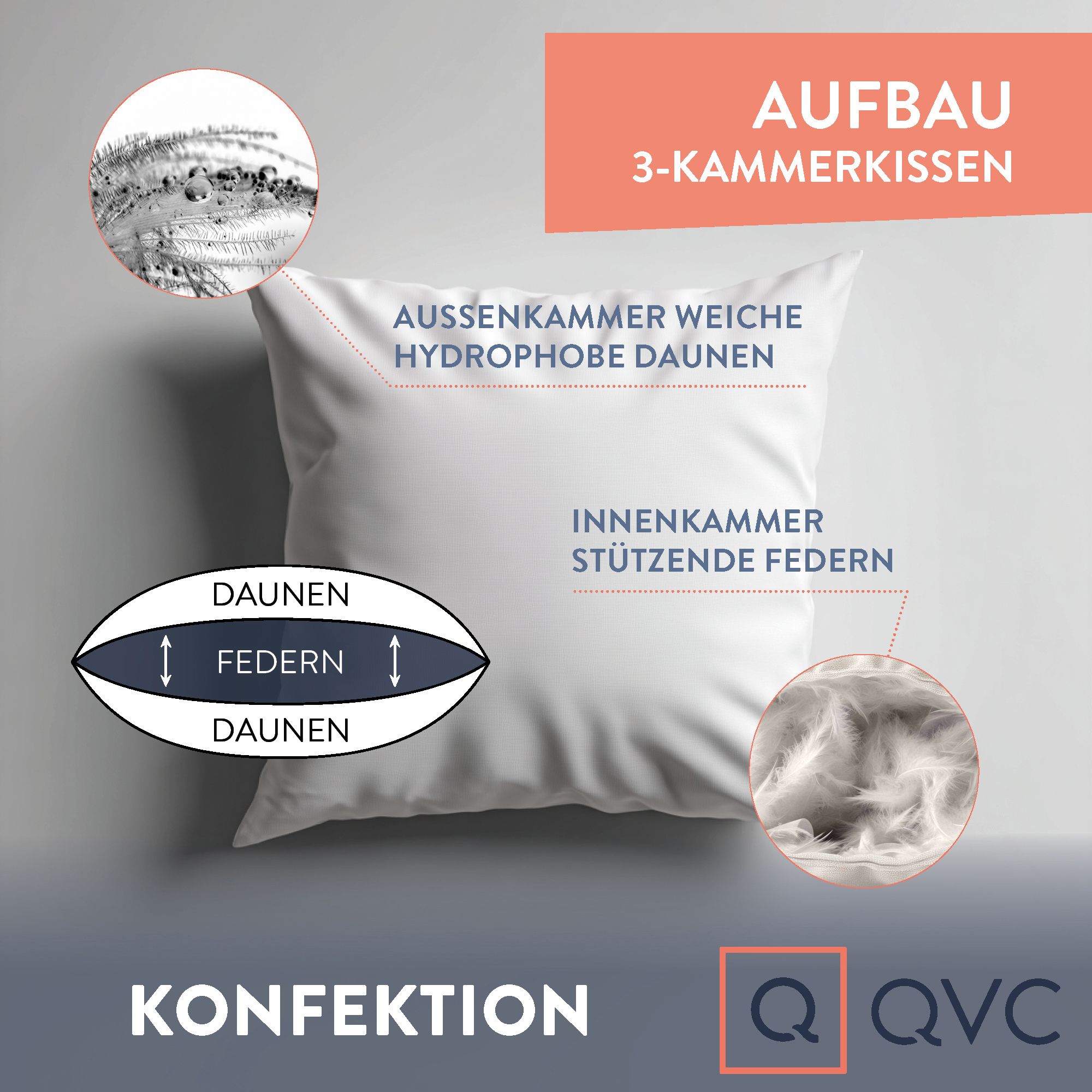 3-Kammerkissen mit hydrophober Daunenfüllung