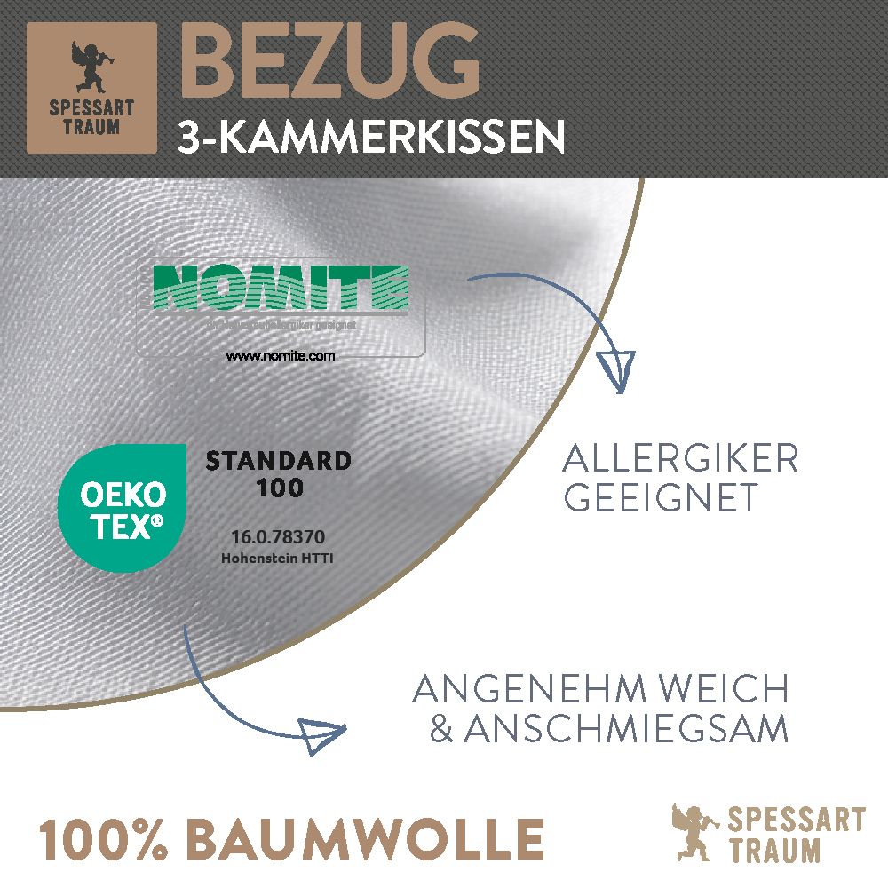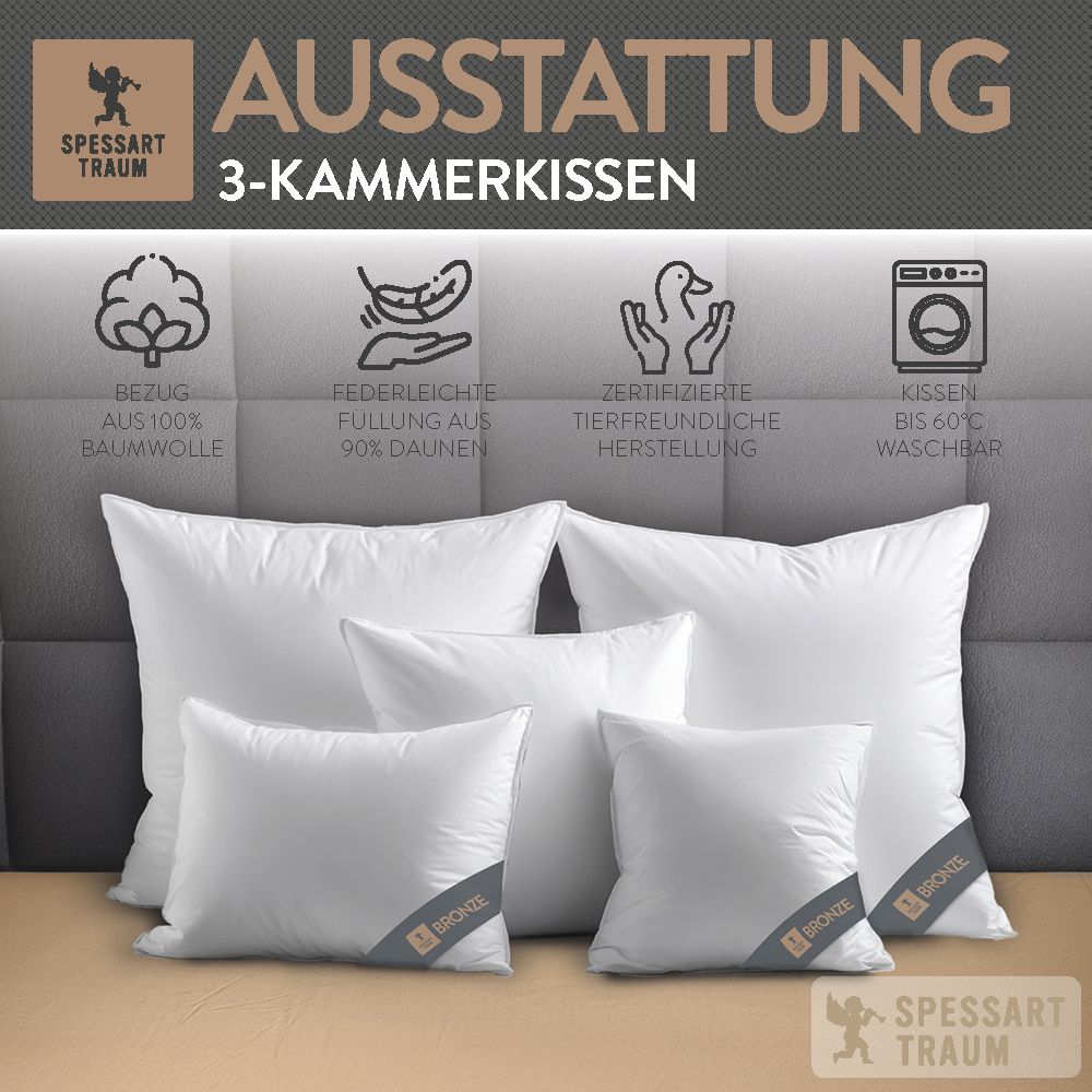 3-Kammerkopfkissen gefüllt mit Daunen und Federn