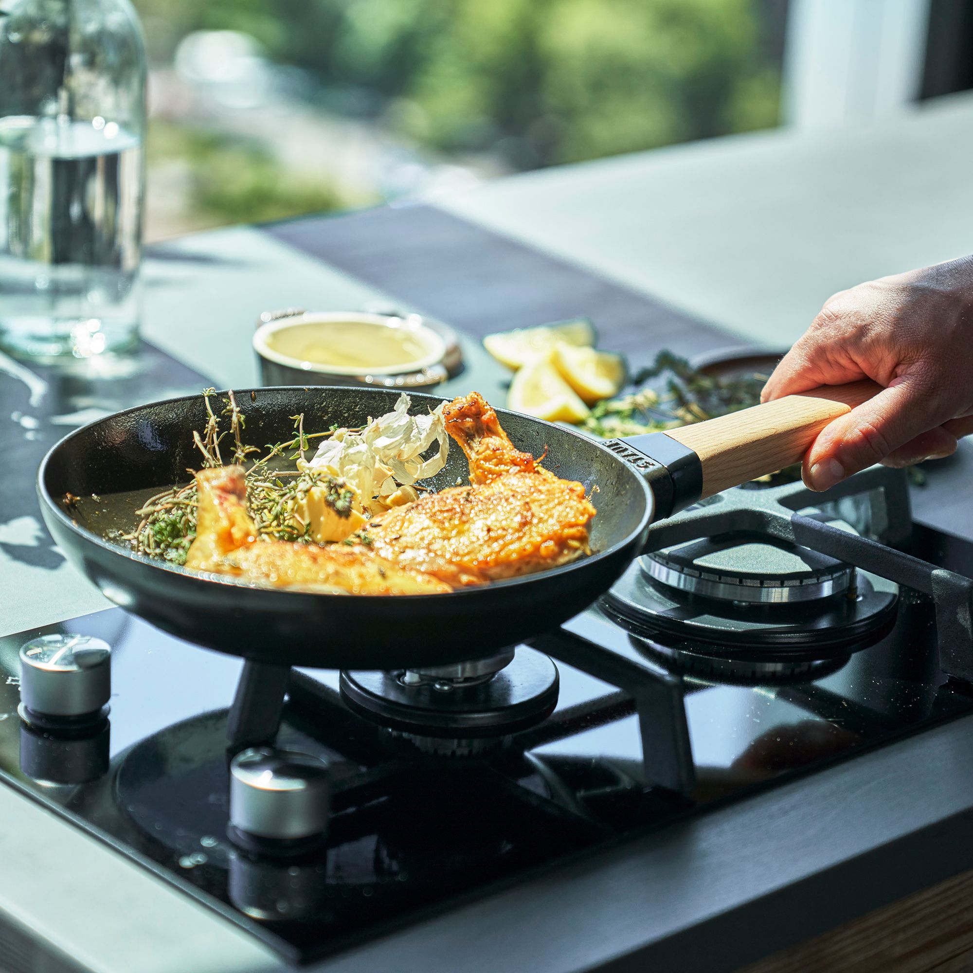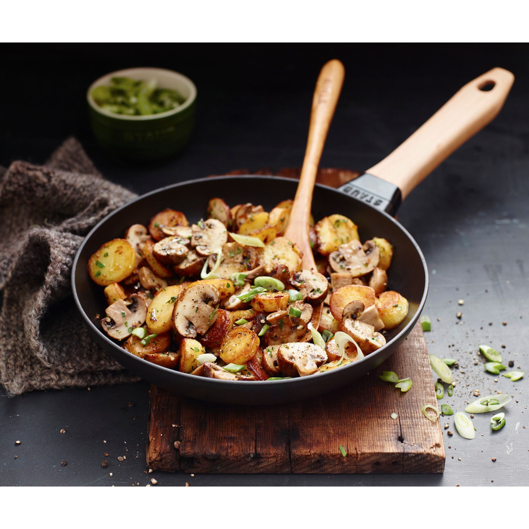Ein Highlight für deine Küche – und ein Genuss fürs Profi-Auge! Die Universalpfanne von STAUB® sorgt für ausgezeichnete kulinarische Erlebnisse. Das Gargut kann bei hoher Temperatur in die Pfanne gegeben werden, damit sich die Poren schließen und die Speisen ihre Säfte beibehalten. Gemeinsam mit einer knusprigen Kruste und dem entstehenden Röstaroma erhält man so einen unvergleichlichen Geschmack!