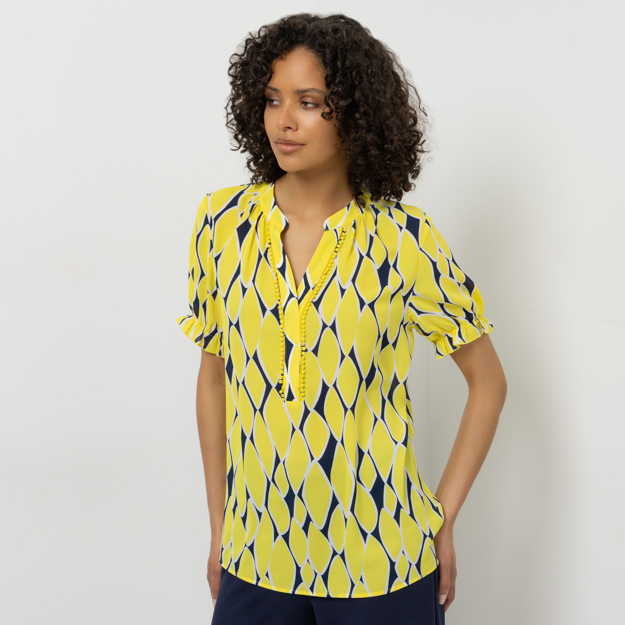 STEFFEN SCHRAUT Bluse, 1/2-Arm Serafino-Ausschnitt Rüschendetails leger weit