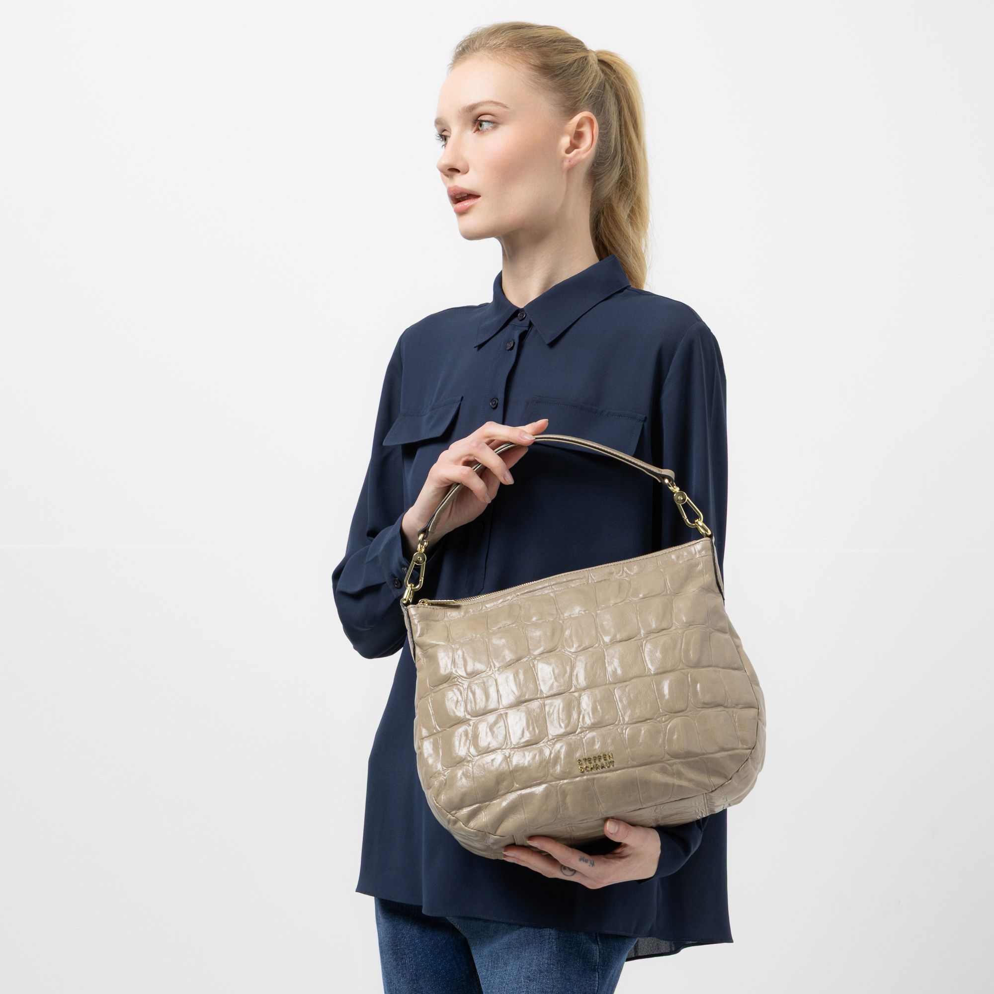 Der luxuriöse Shopper von STEFFEN SCHRAUT by Abro vereint italienisches Rindsleder mit markanter Reptilprägung und setzt durch das edle Metall-Logo ein stilvolles Statement für modebewusste Auftritte.