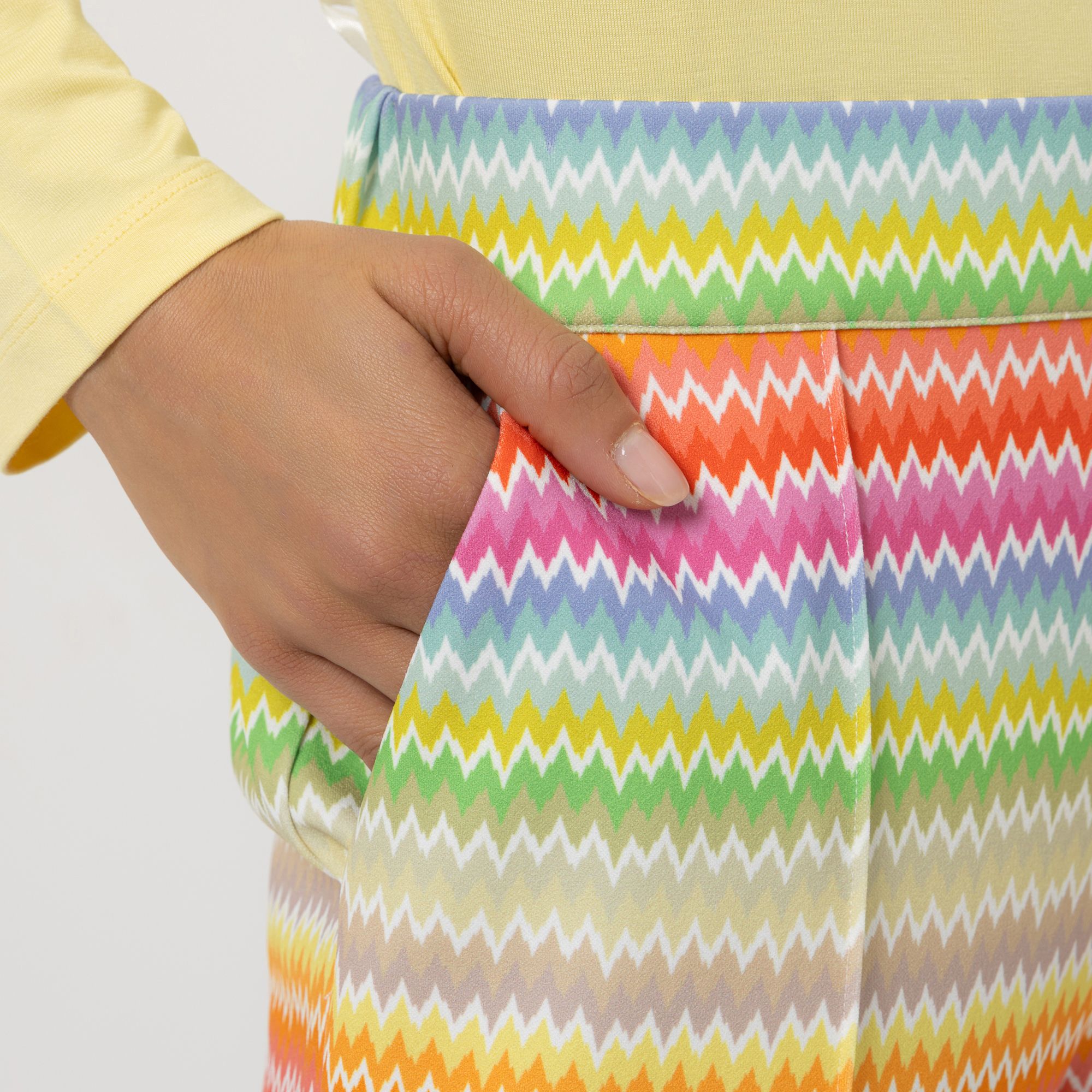 Für einen überzeugenden Auftritt voller Charisma: Die STEFFEN SCHRAUT Hose hat ein buntes Muster. Durch ihren langen, weiten Schnitt und den flachen Bund vorne wirkt sie besonders vorteilhaft und beschwingt.