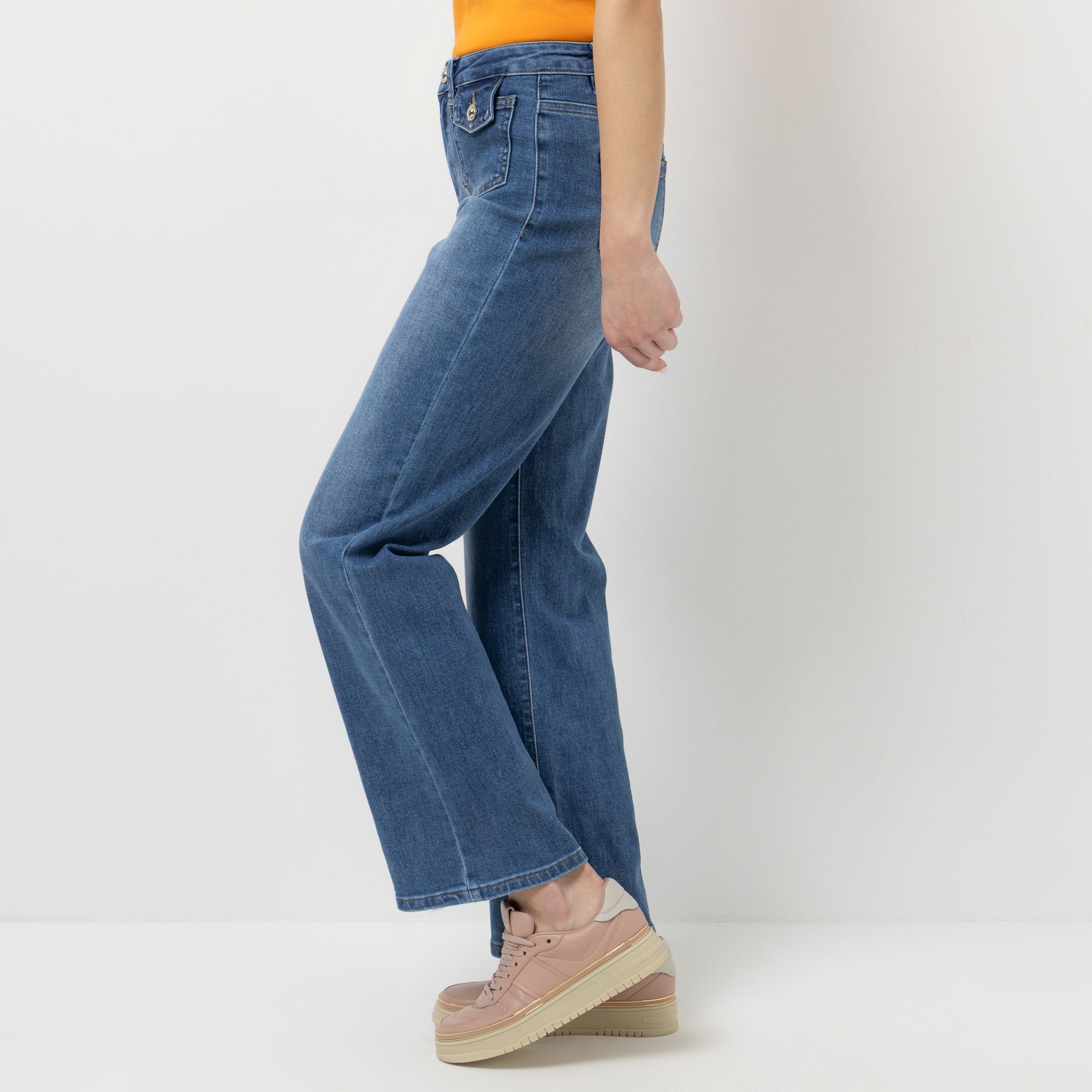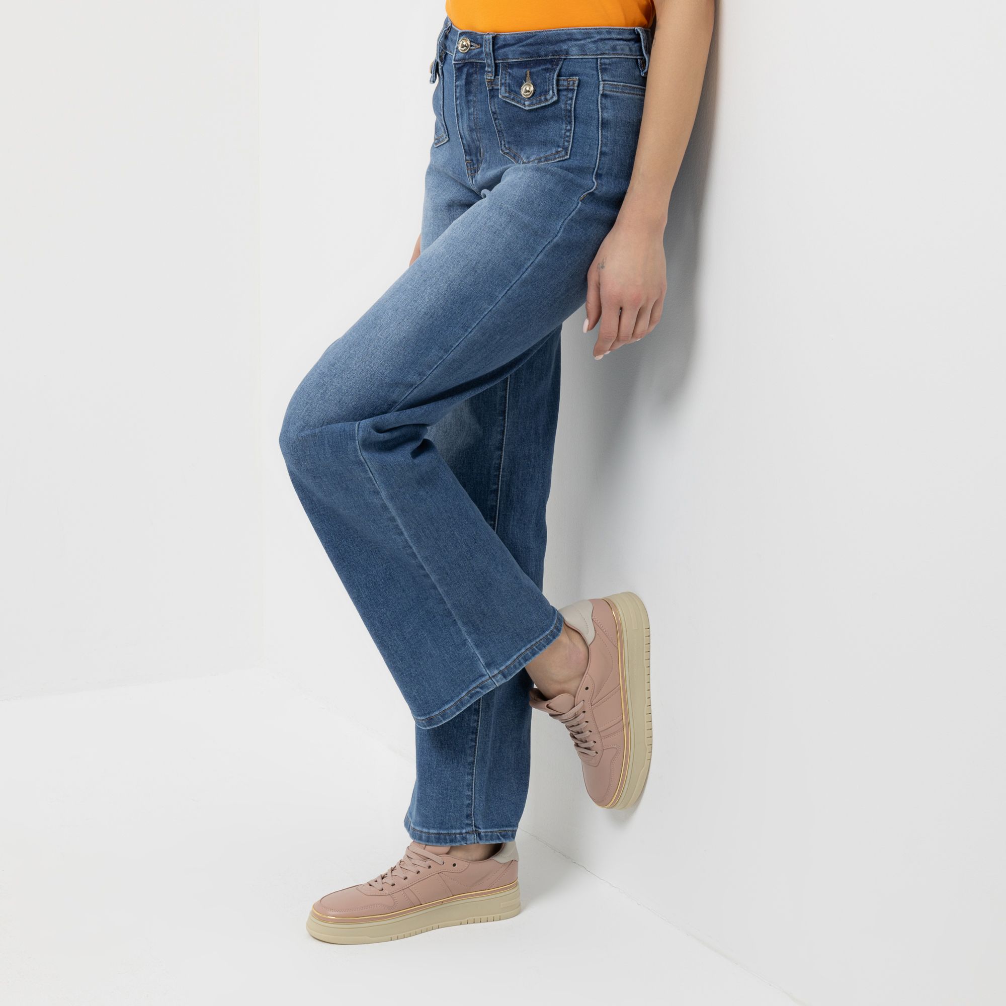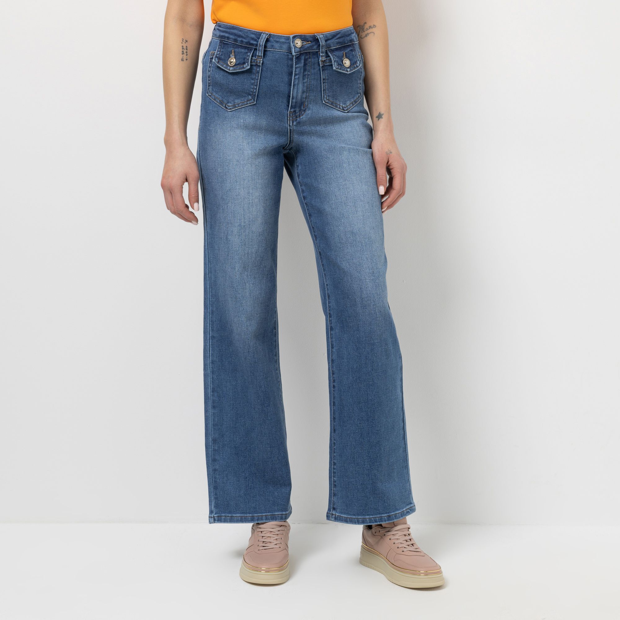 STEFFEN SCHRAUT Jeanshose, lange Form aufgesetzte Taschen Zierknöpfe ausgestelltes Bein