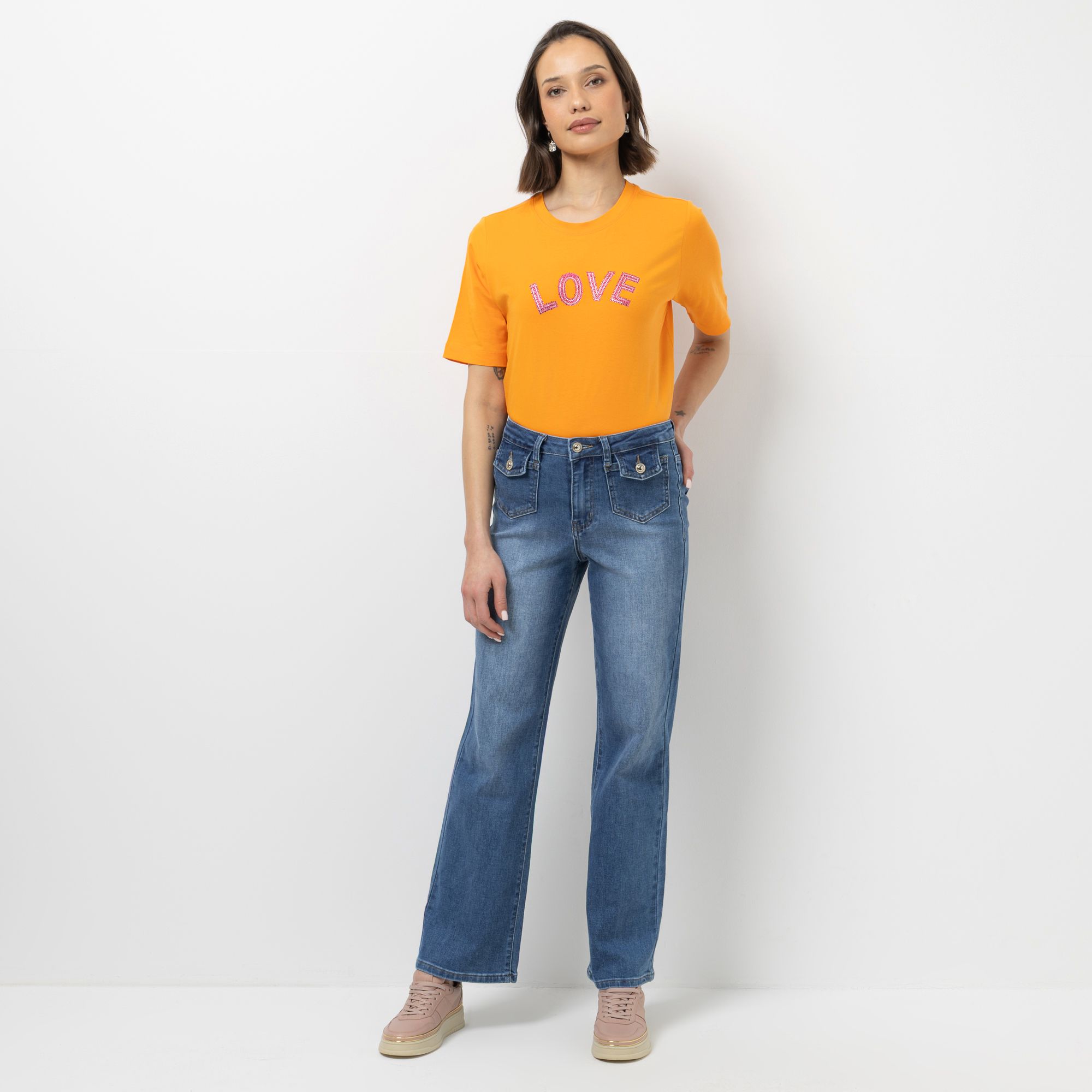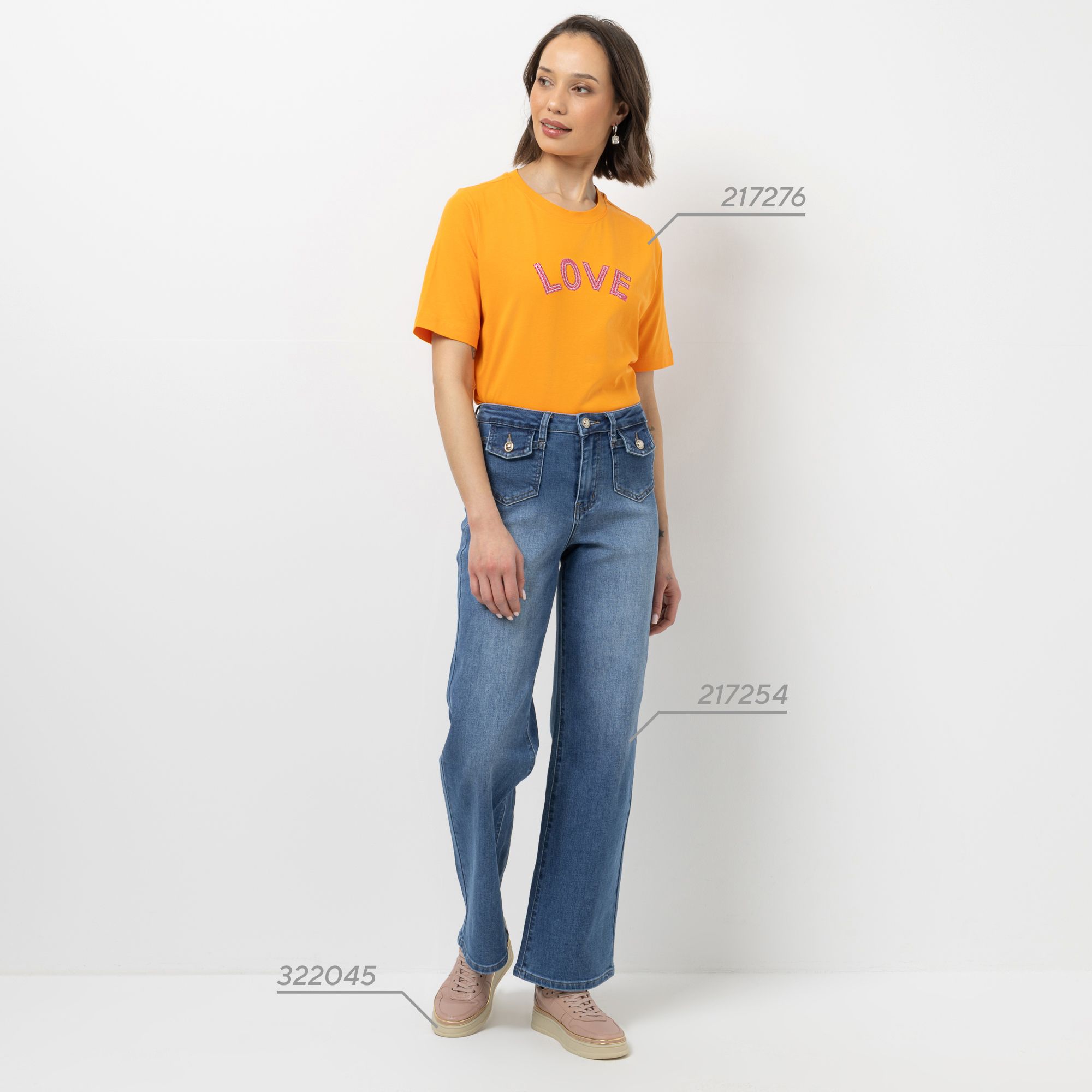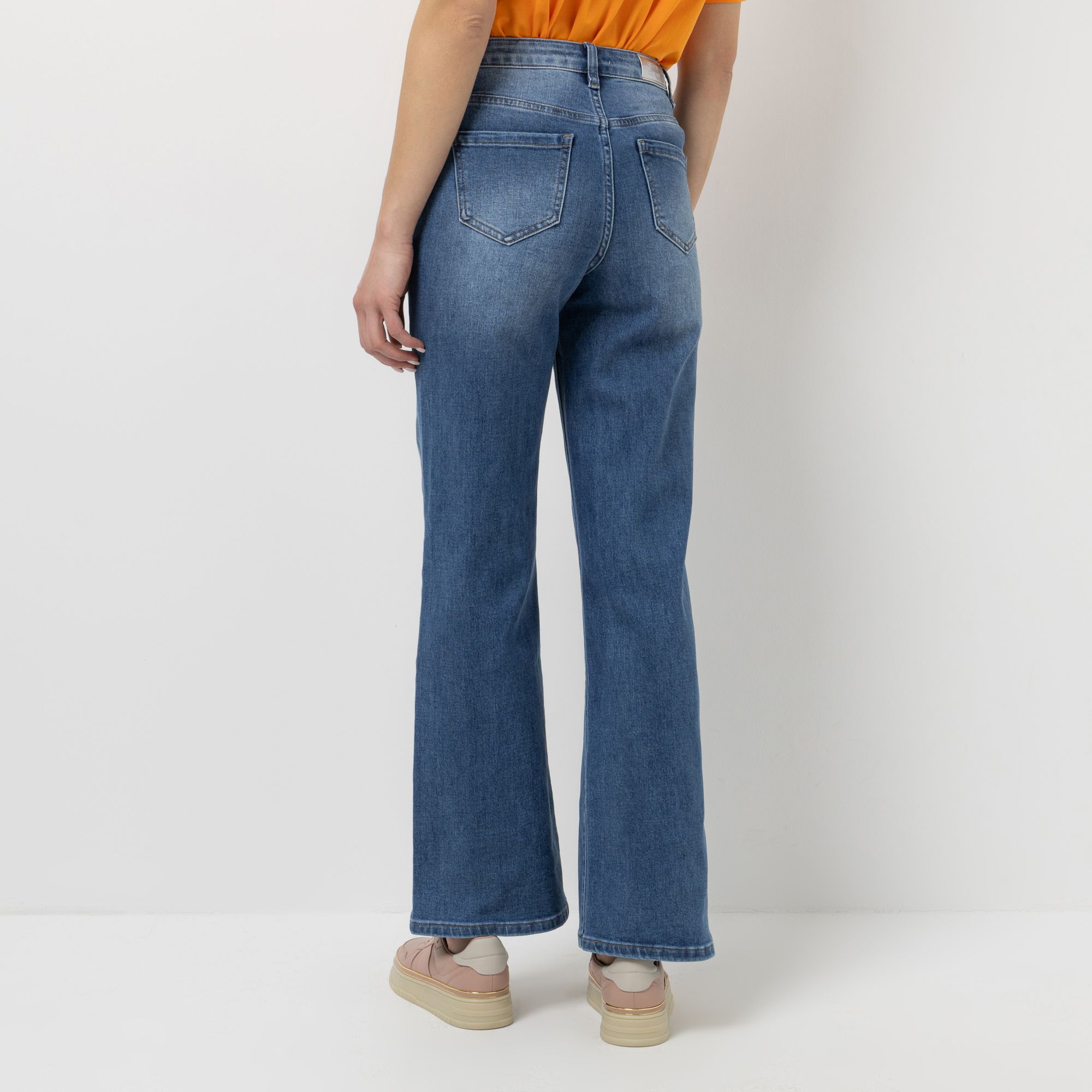 STEFFEN SCHRAUT Jeanshose, lange Form aufgesetzte Taschen Zierknöpfe ausgestelltes Bein