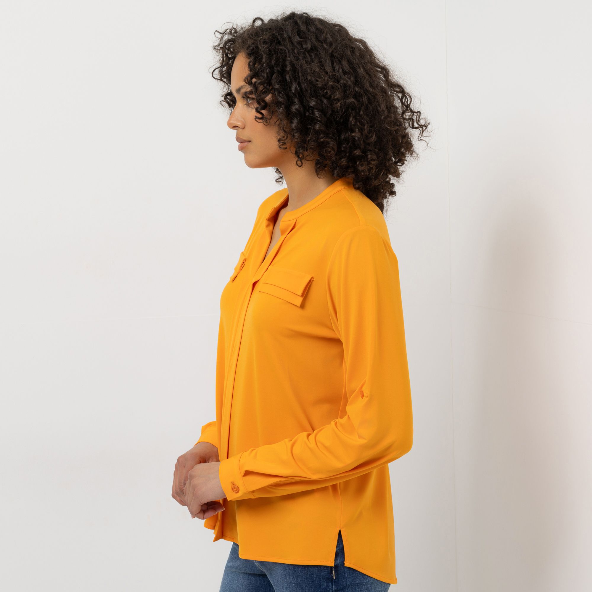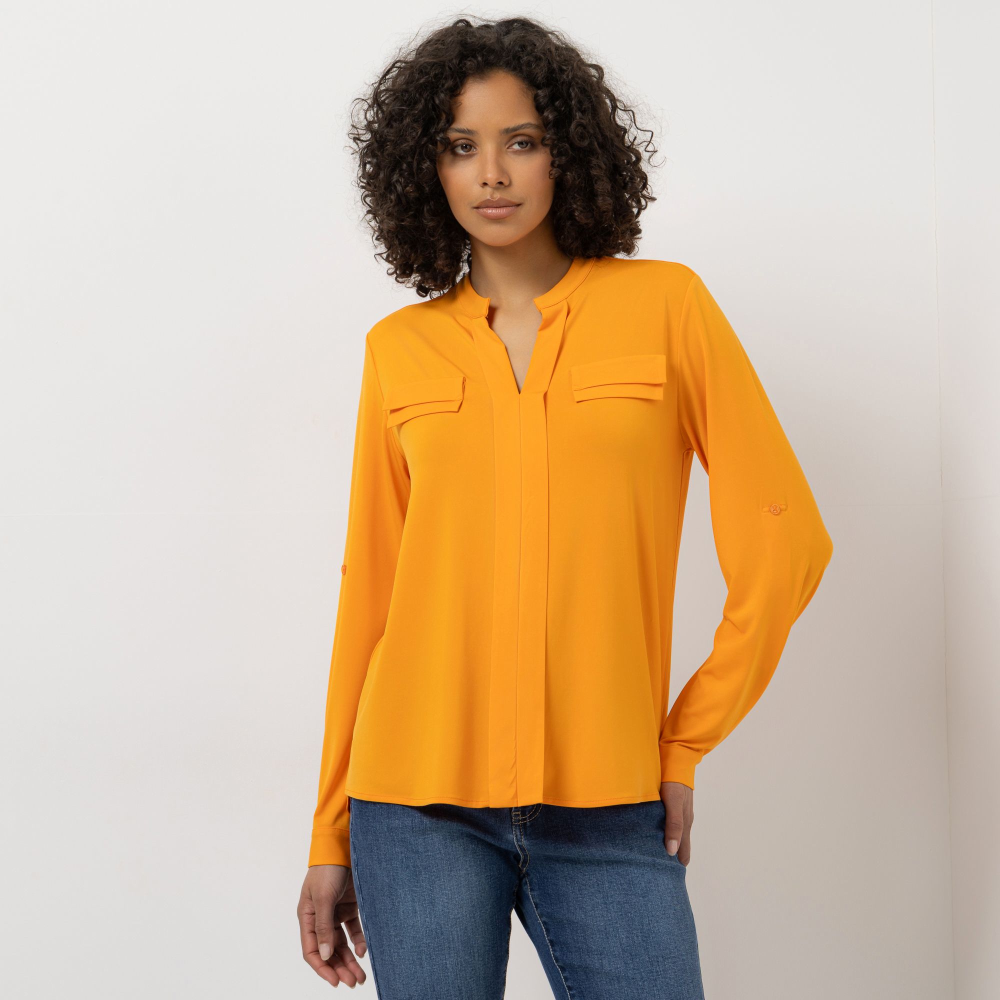 STEFFEN SCHRAUT Jersey-Bluse Serafino-Ausschnitt Armriegel mit Knopf leger weit