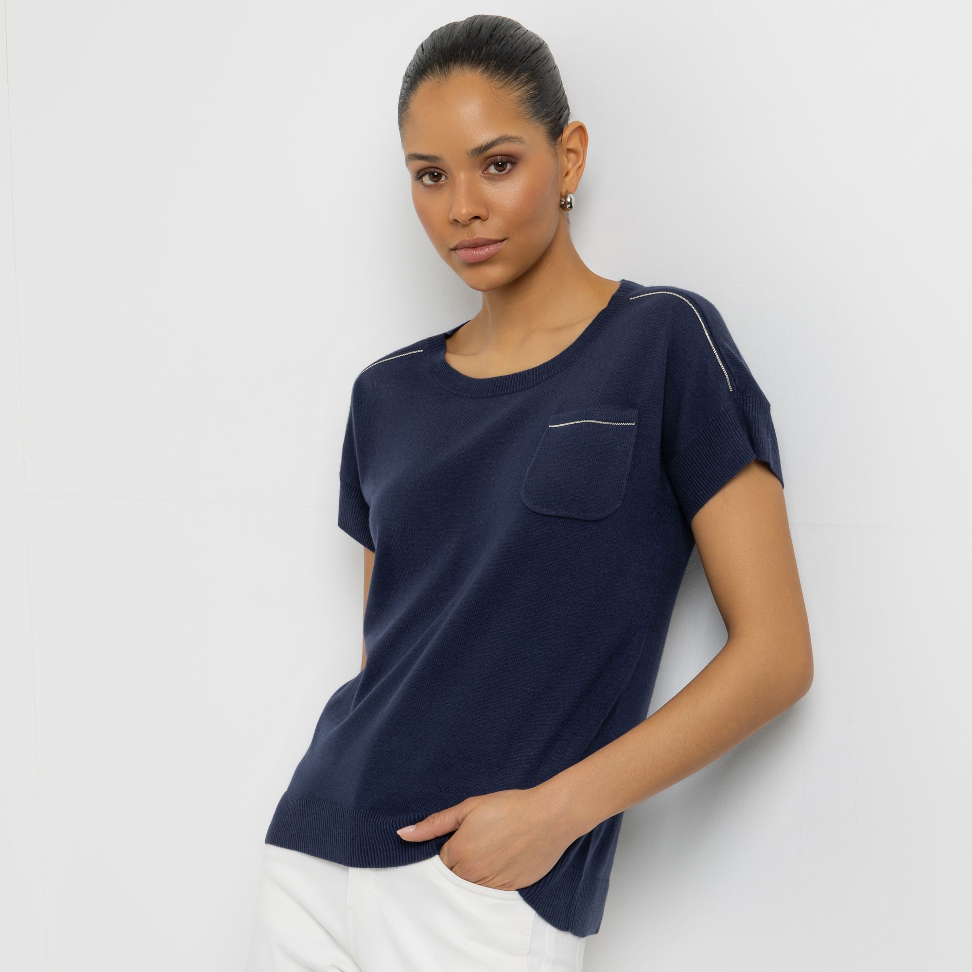 STEFFEN SCHRAUT Pullover 1/2-Arm Rundhalsausschnitt Kettendetails figurumspielend