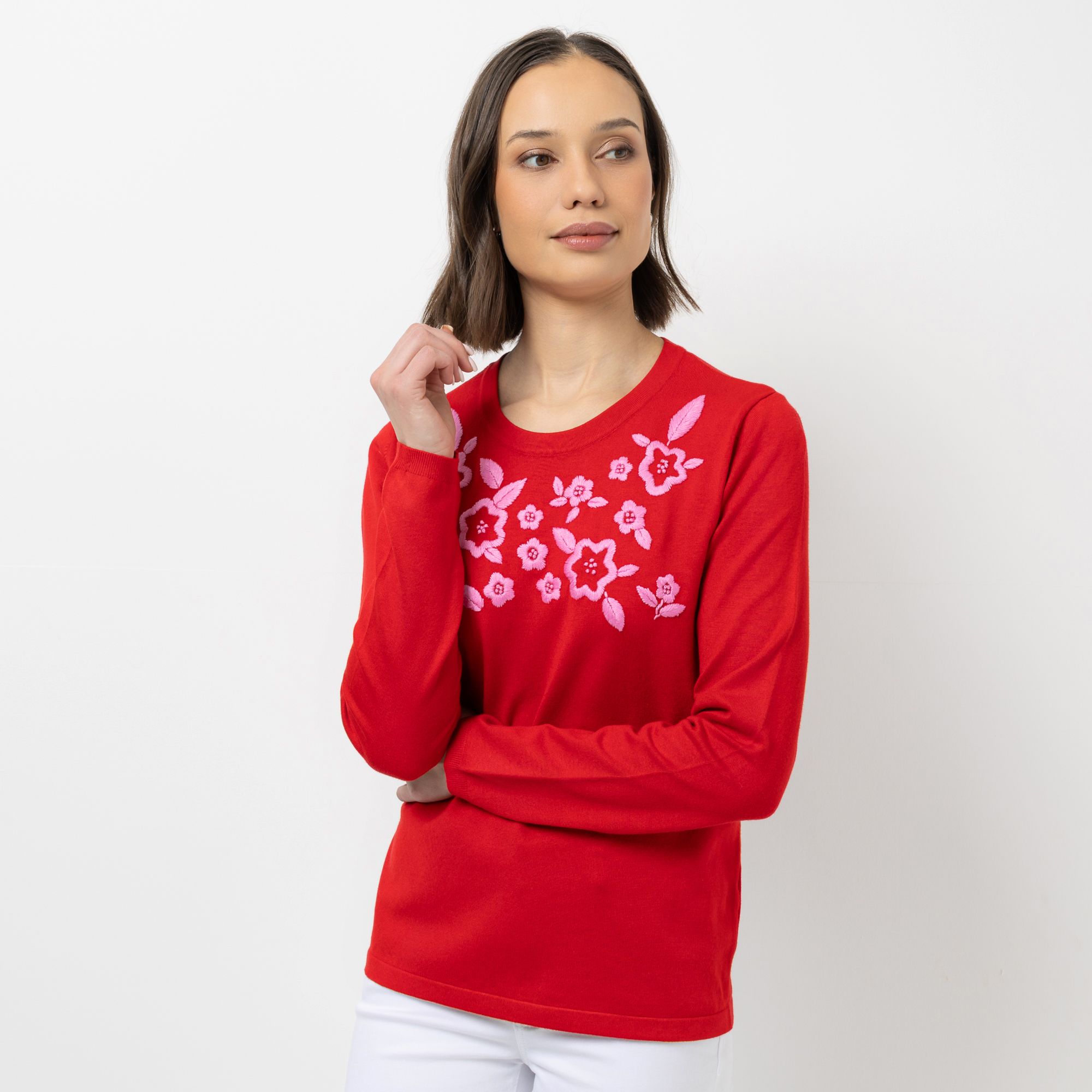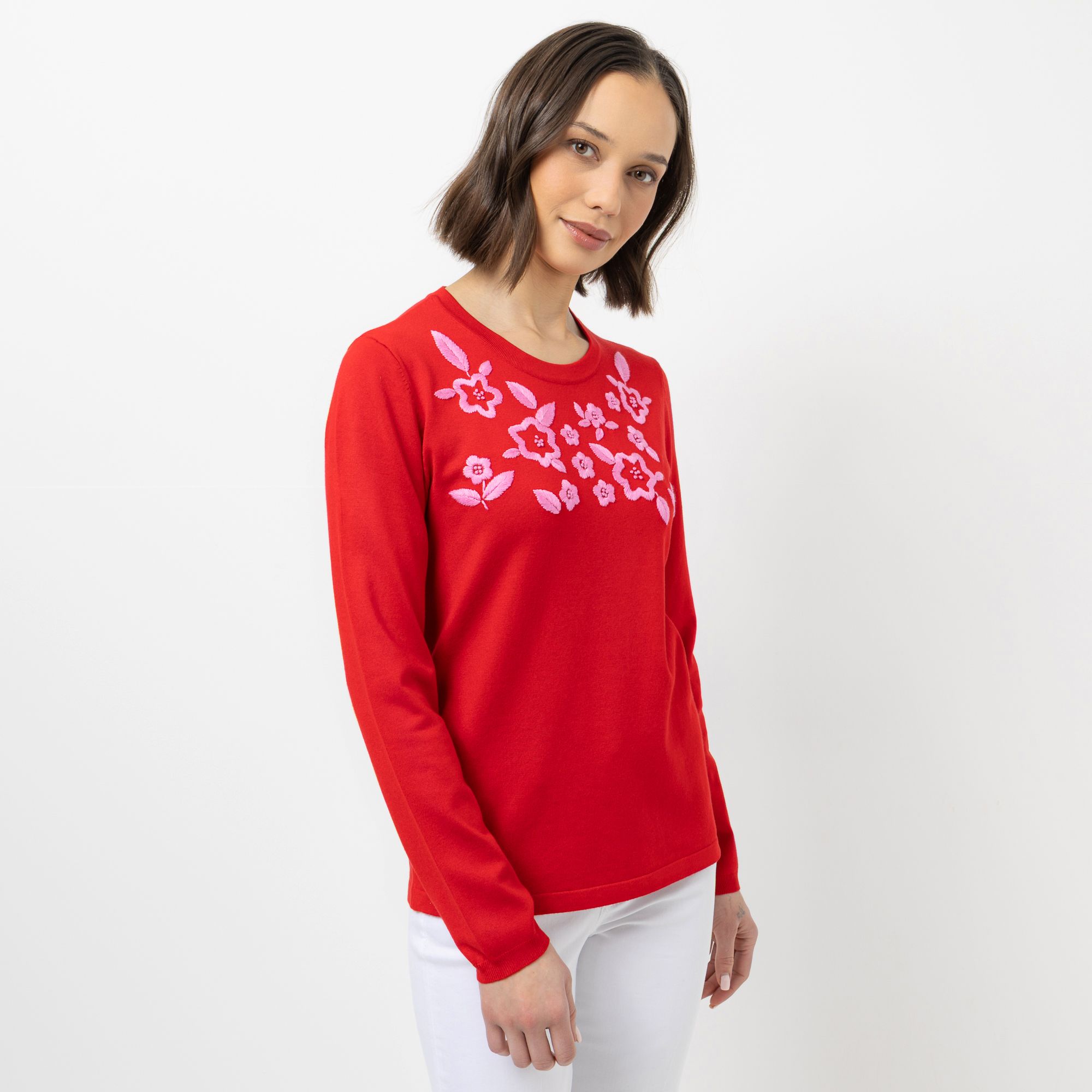 STEFFEN SCHRAUT Pullover Rundhalsausschnitt Kontraststickerei figurumspielend