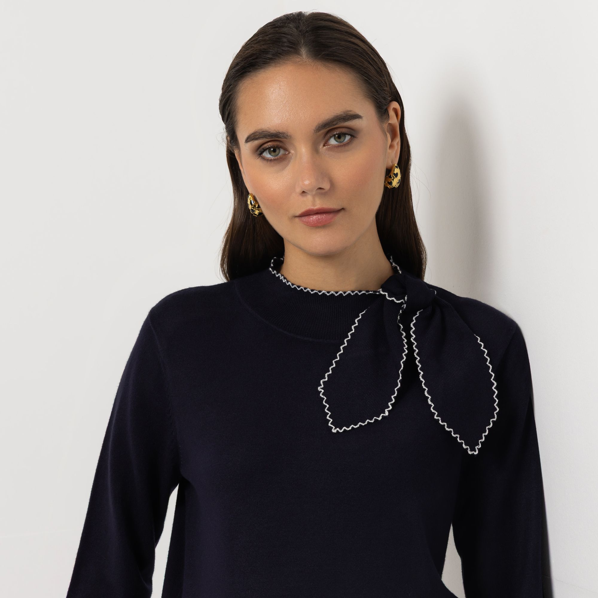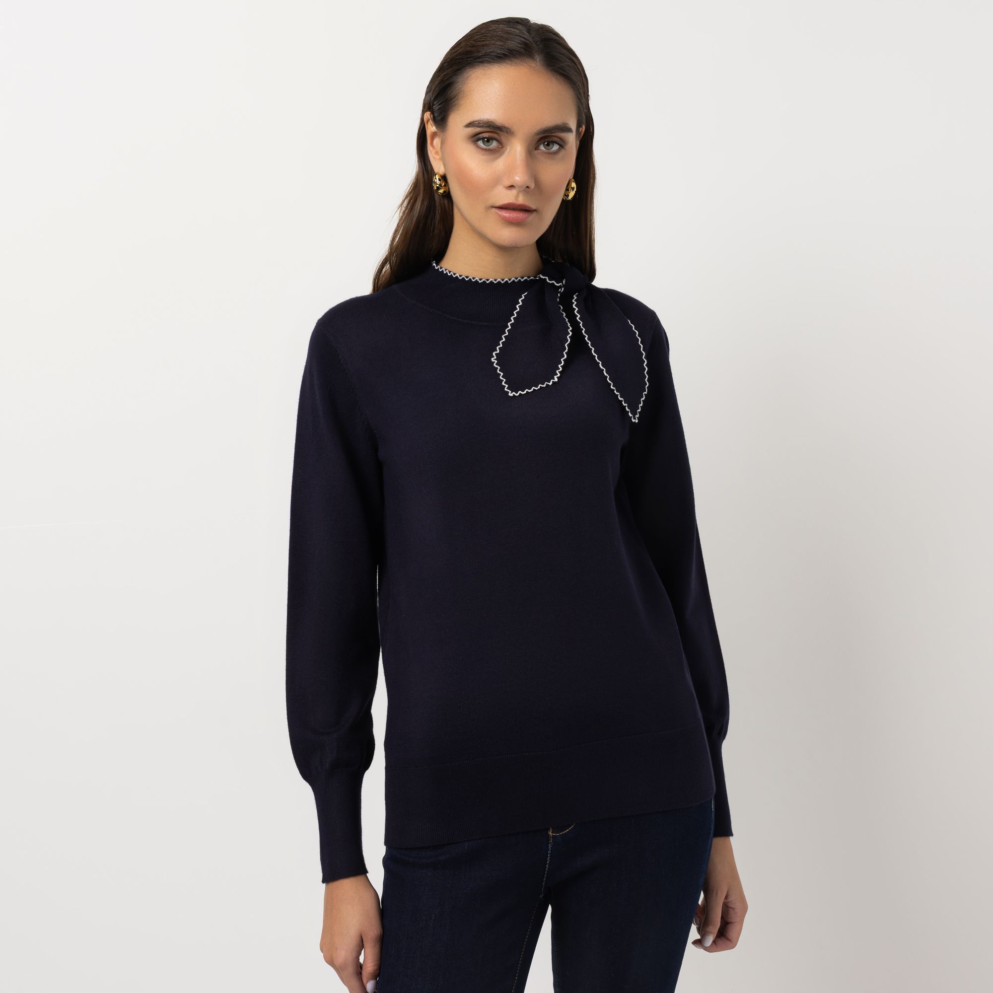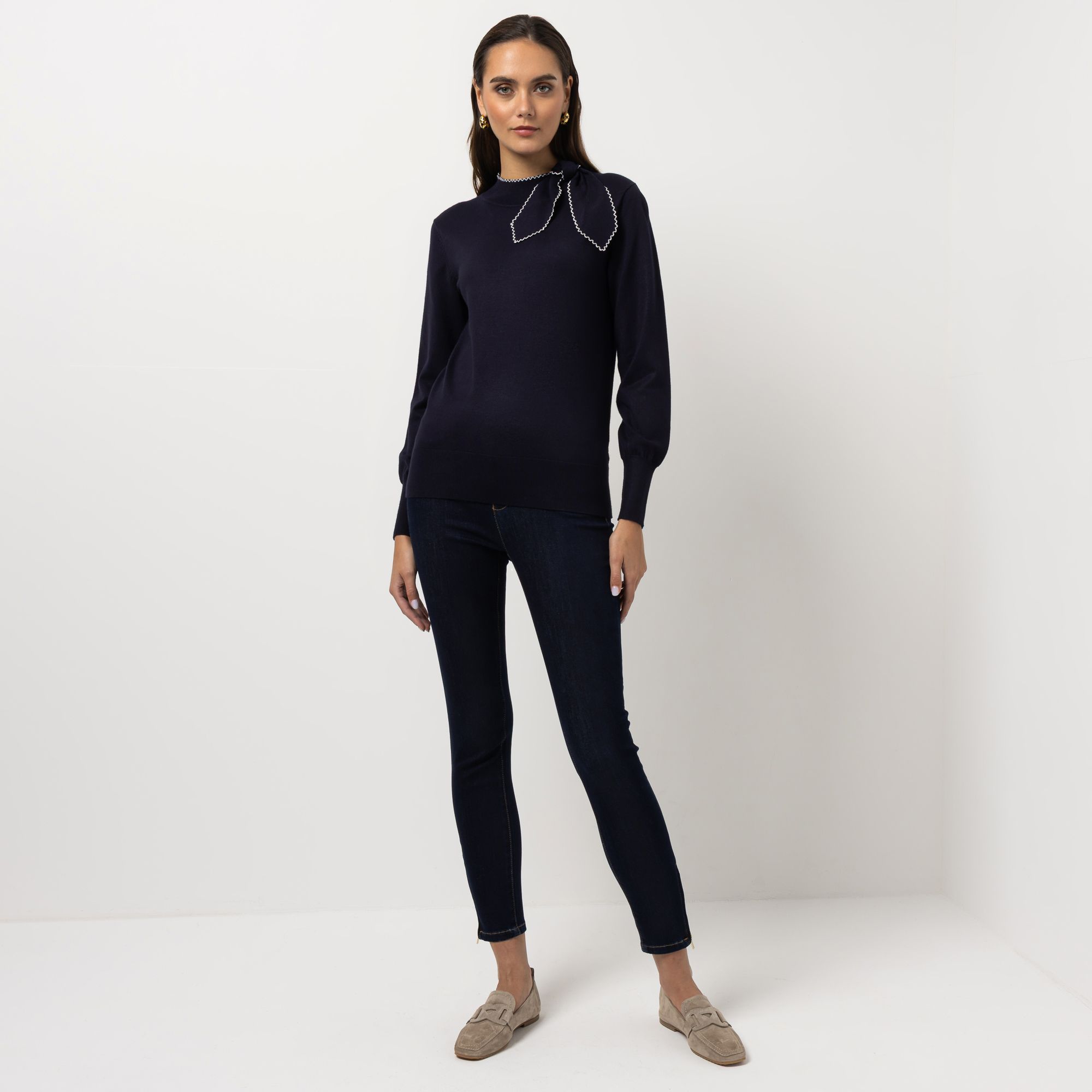 STEFFEN SCHRAUT Pullover Stehkragen mit dekorativem Bindeband figurbetont