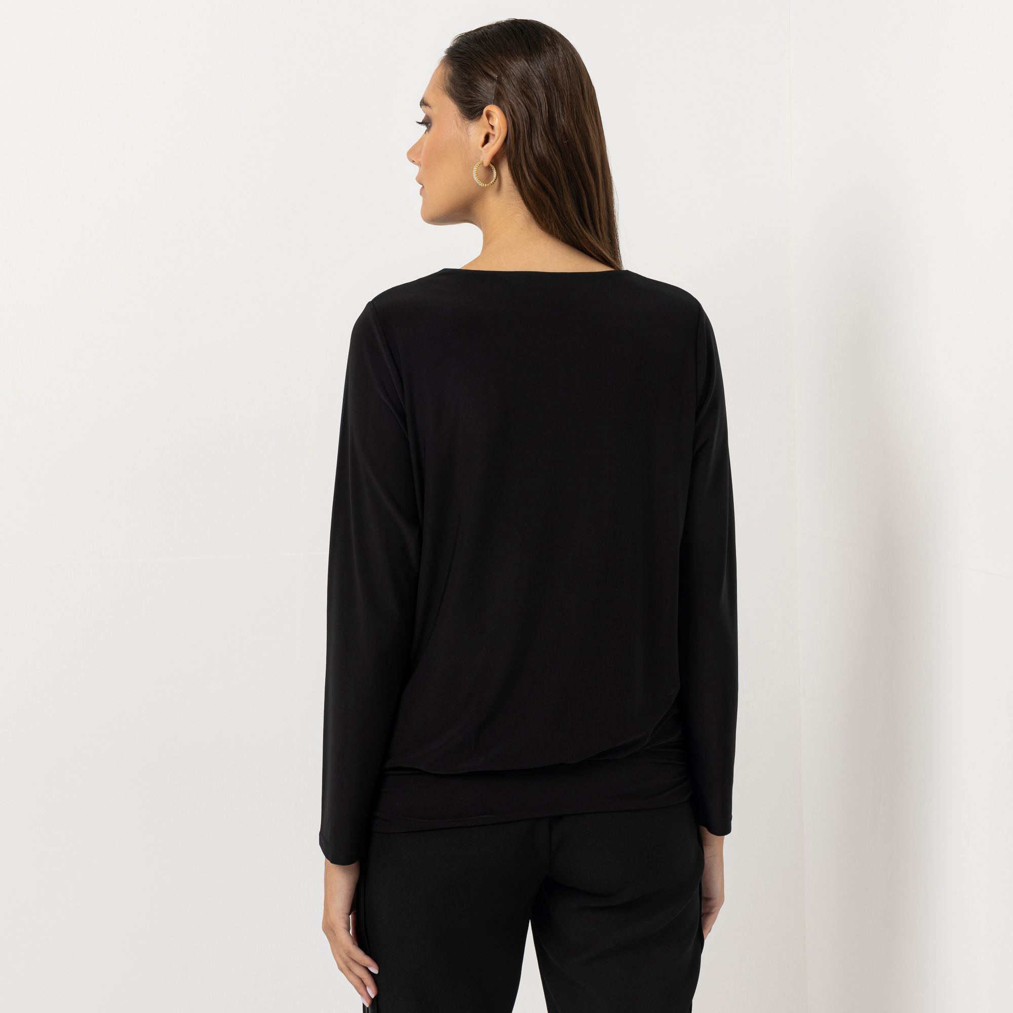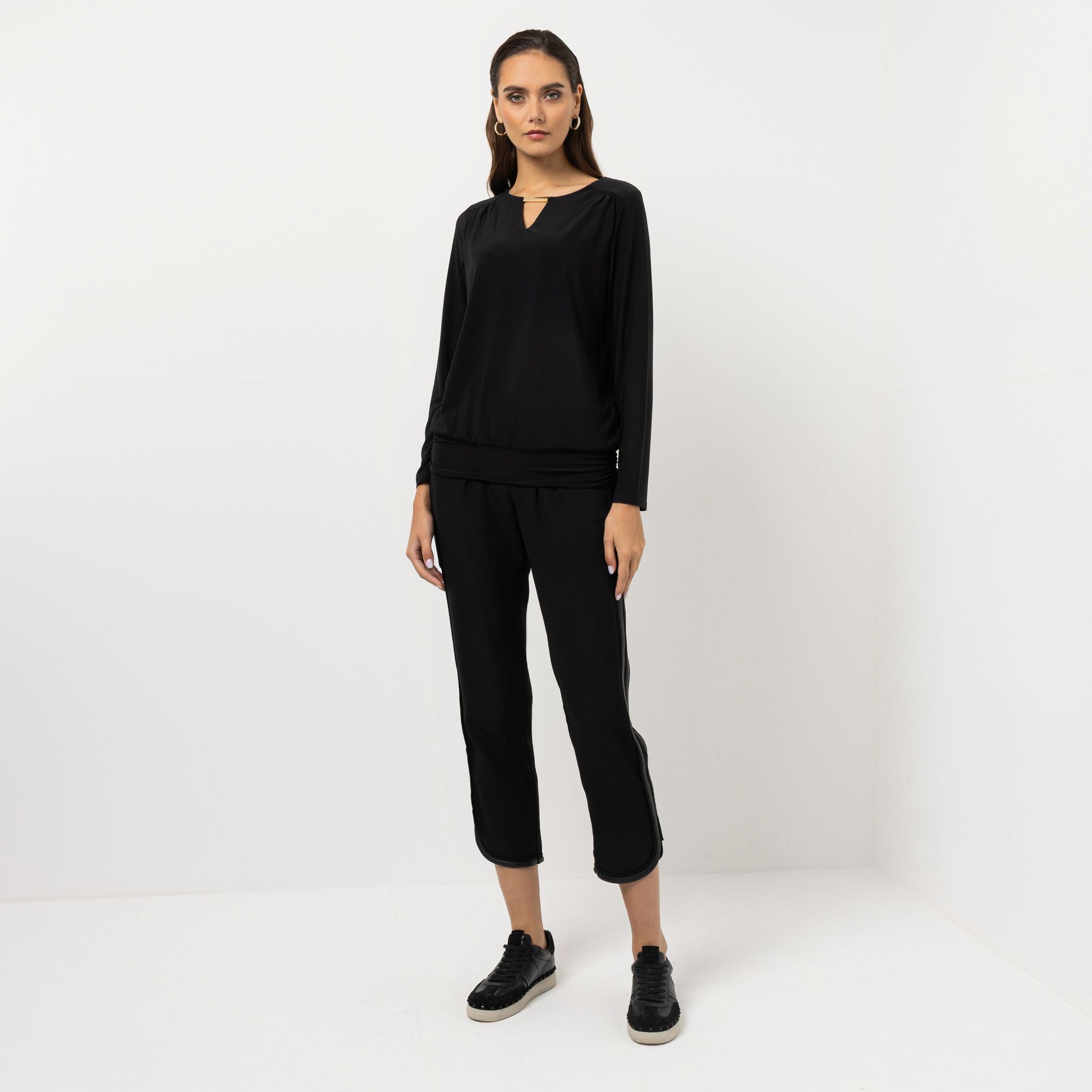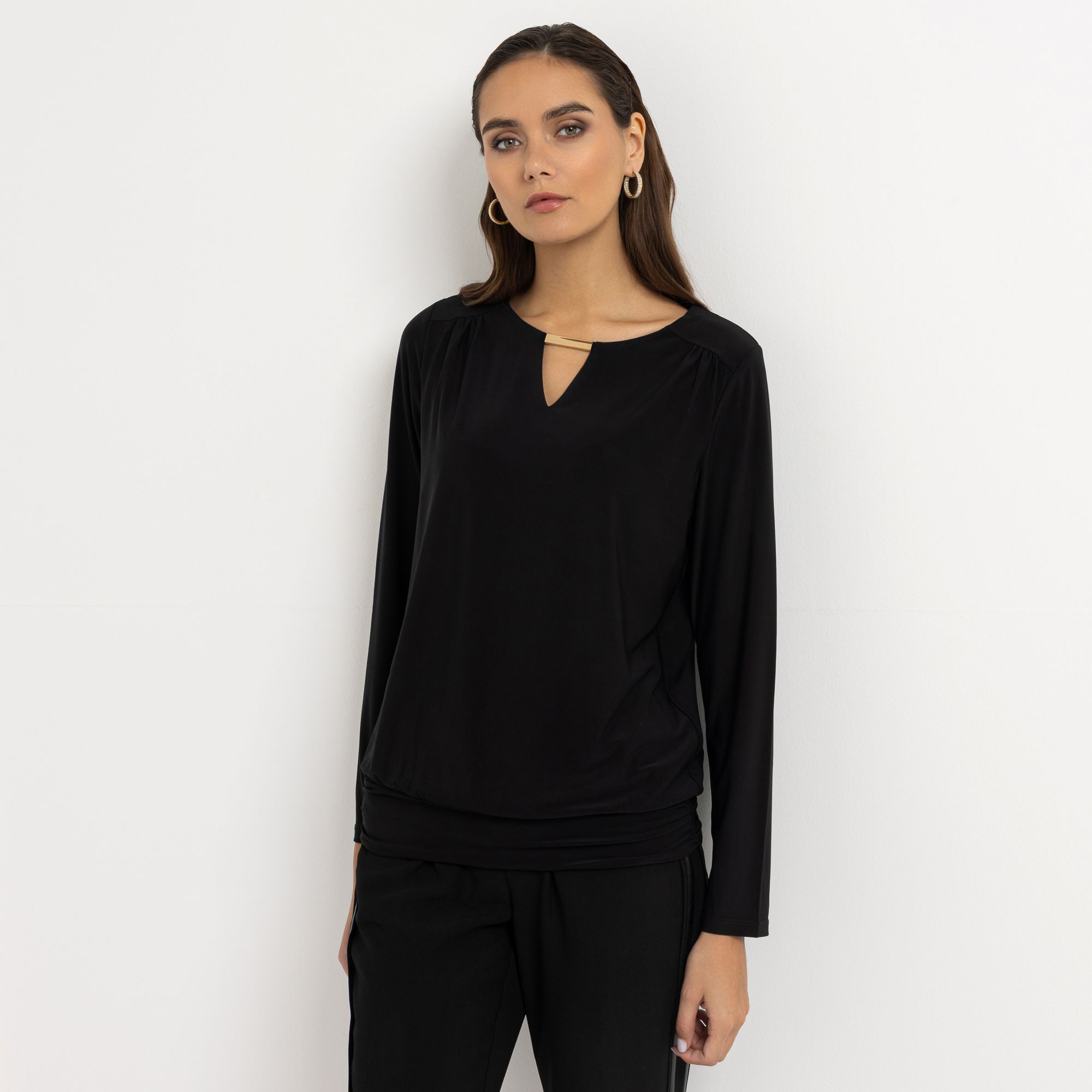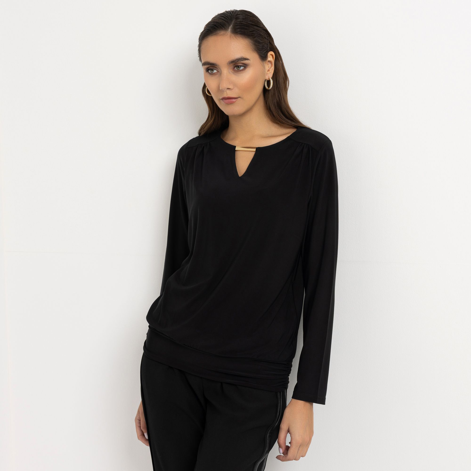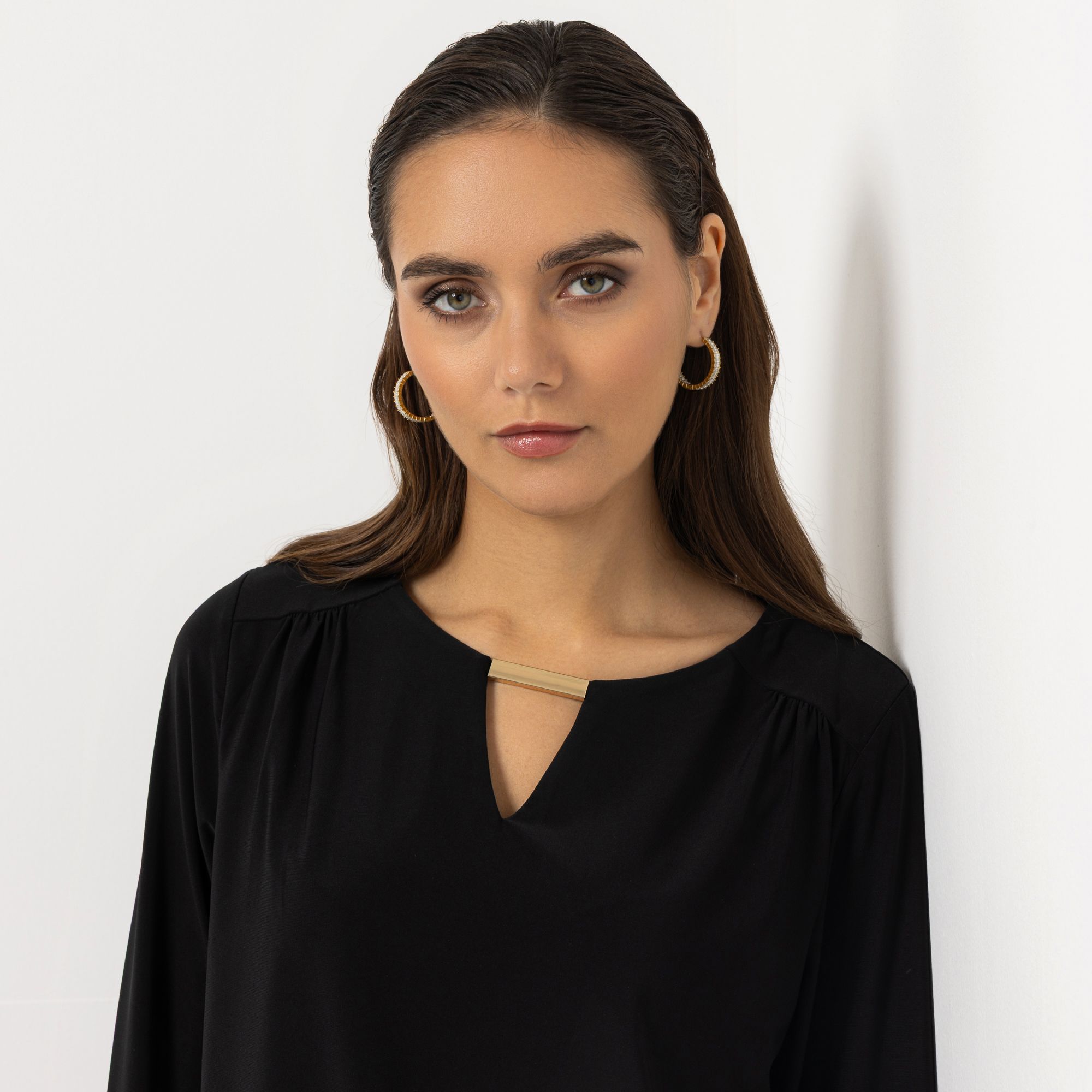 • Rundhalsausschnitt mit Schlitz und Schmuckdetai