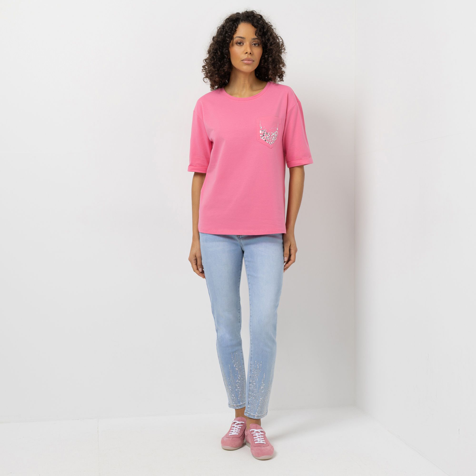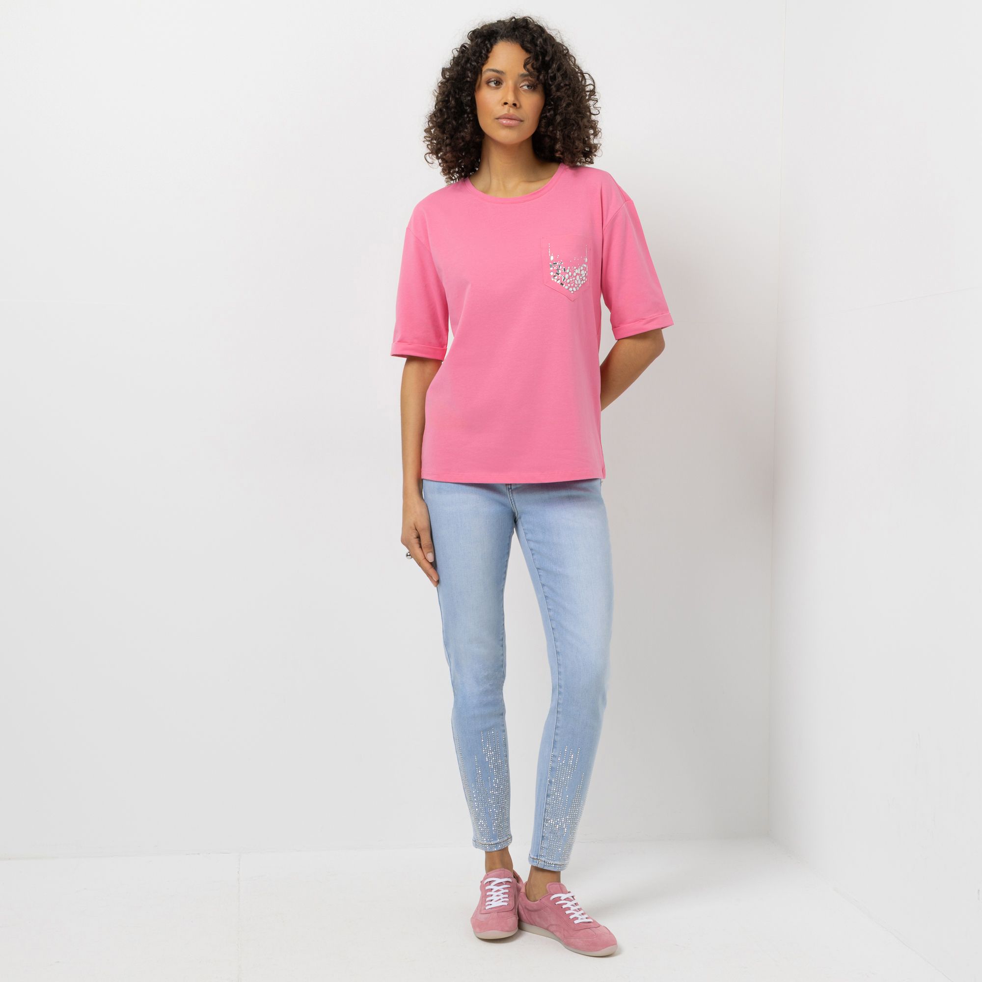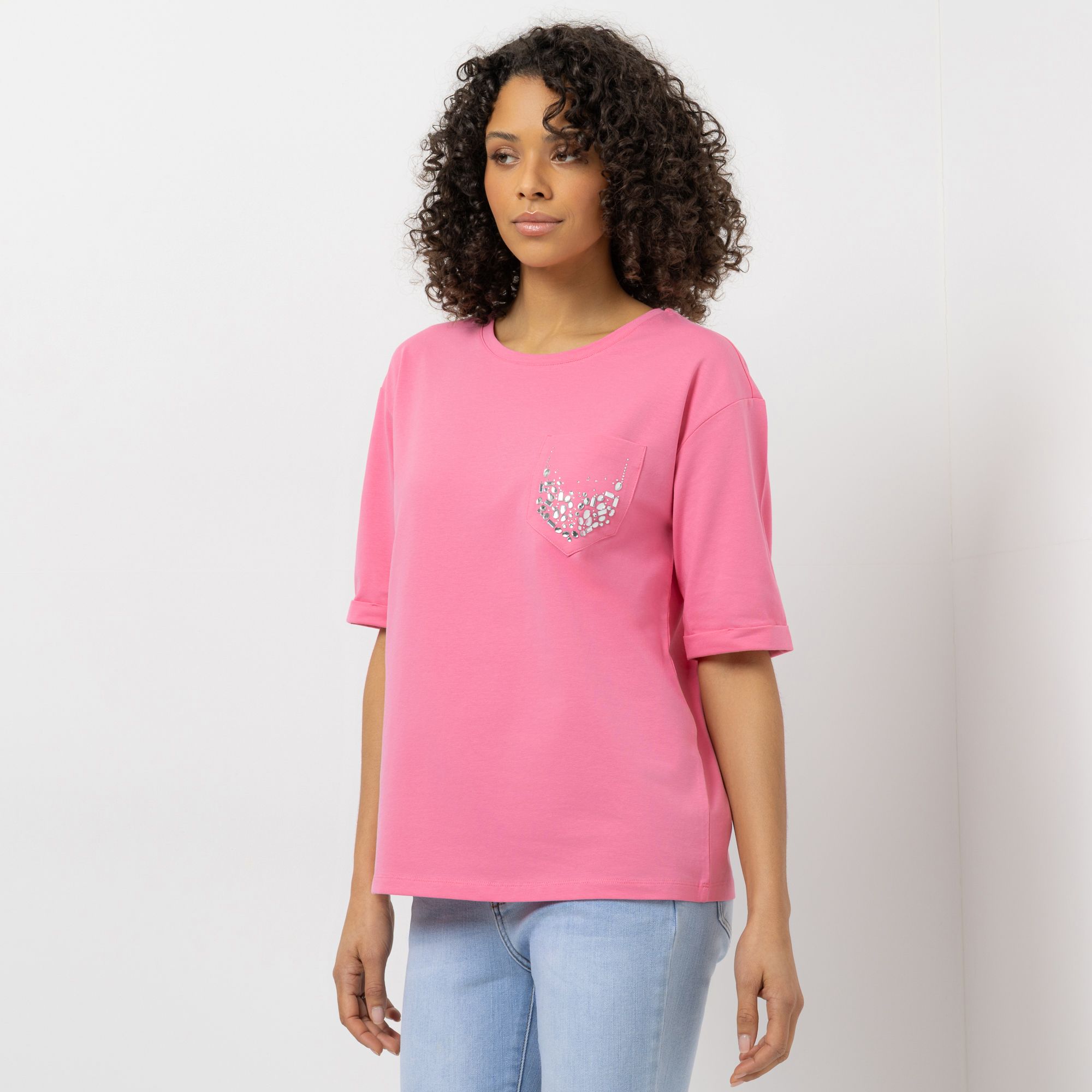 STEFFEN SCHRAUT Shirt, langer 1/2-Arm Rundhalsausschnitt Glitzersteine leger weit