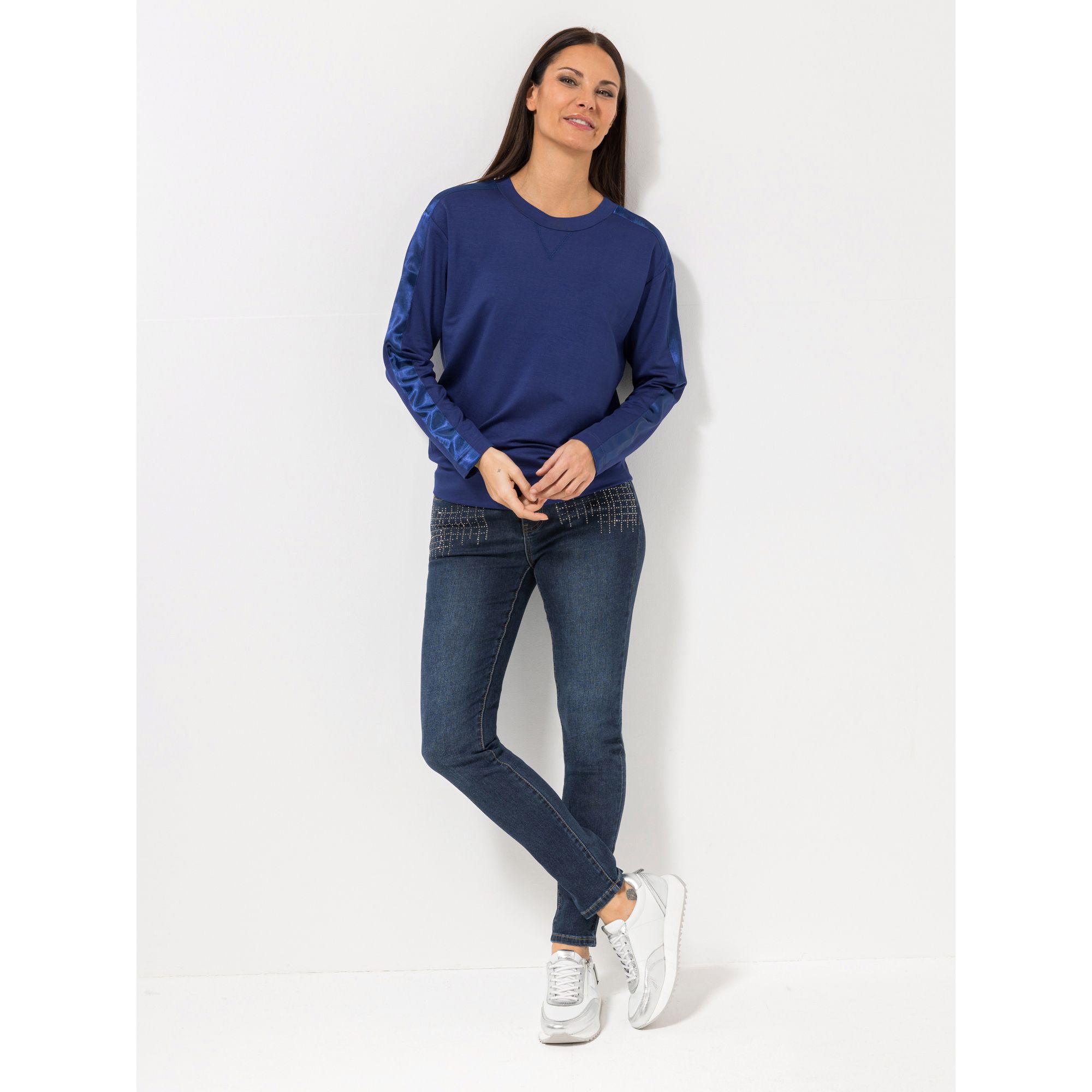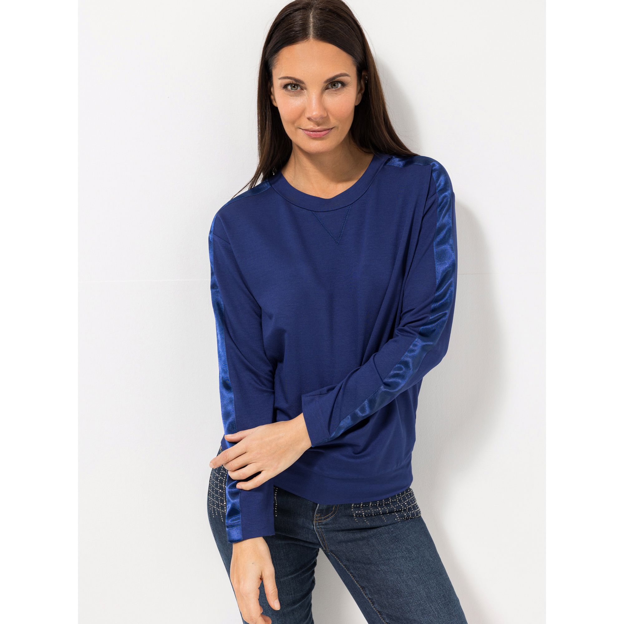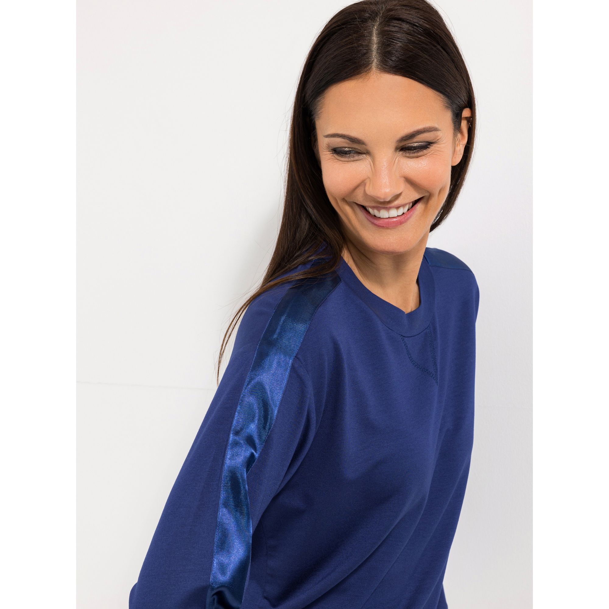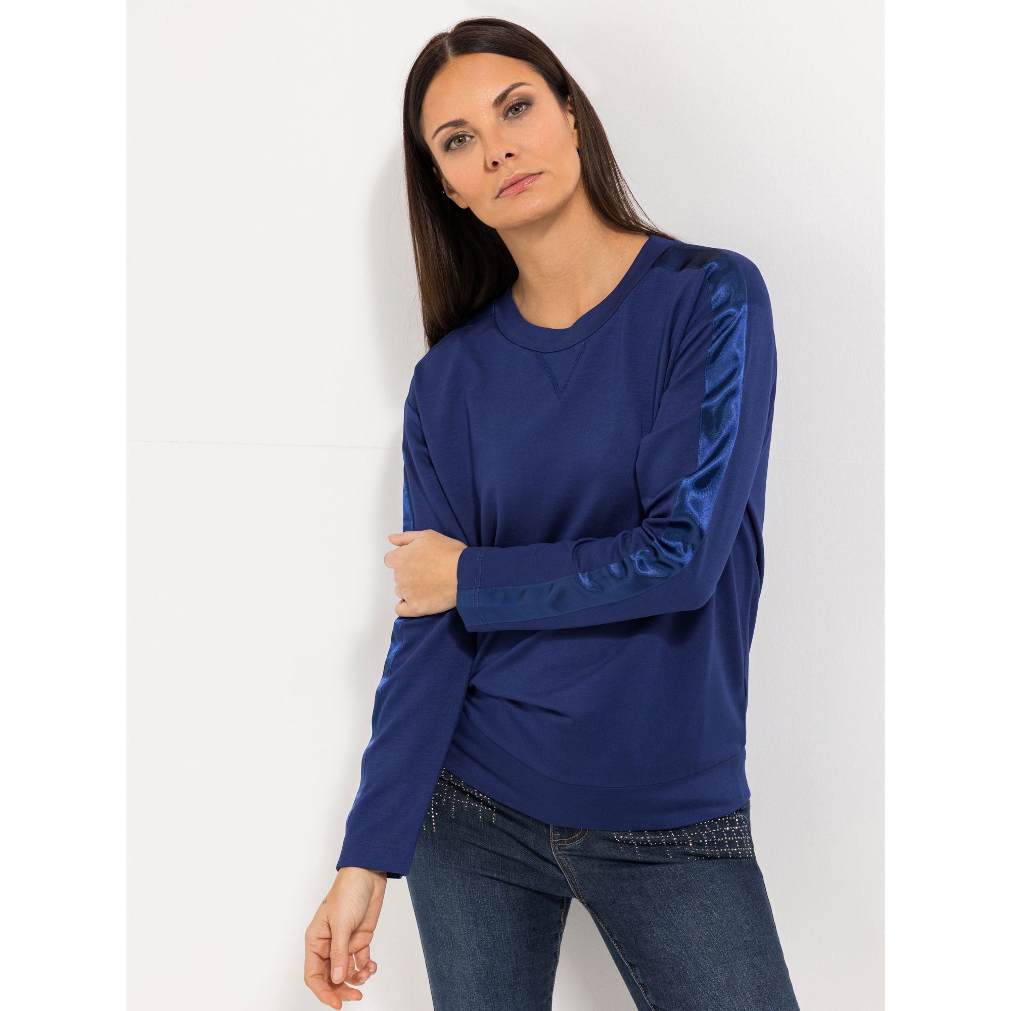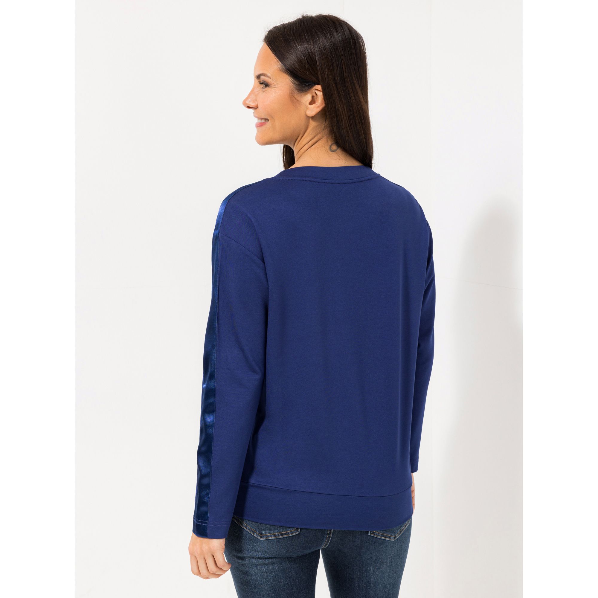 Entdecke das stilvolle Langarm-Shirt von STEFFEN SCHRAUT, das durch sein besonderes Design und den eleganten Satinband-Akzent an den Ärmeln und Schultern besticht.