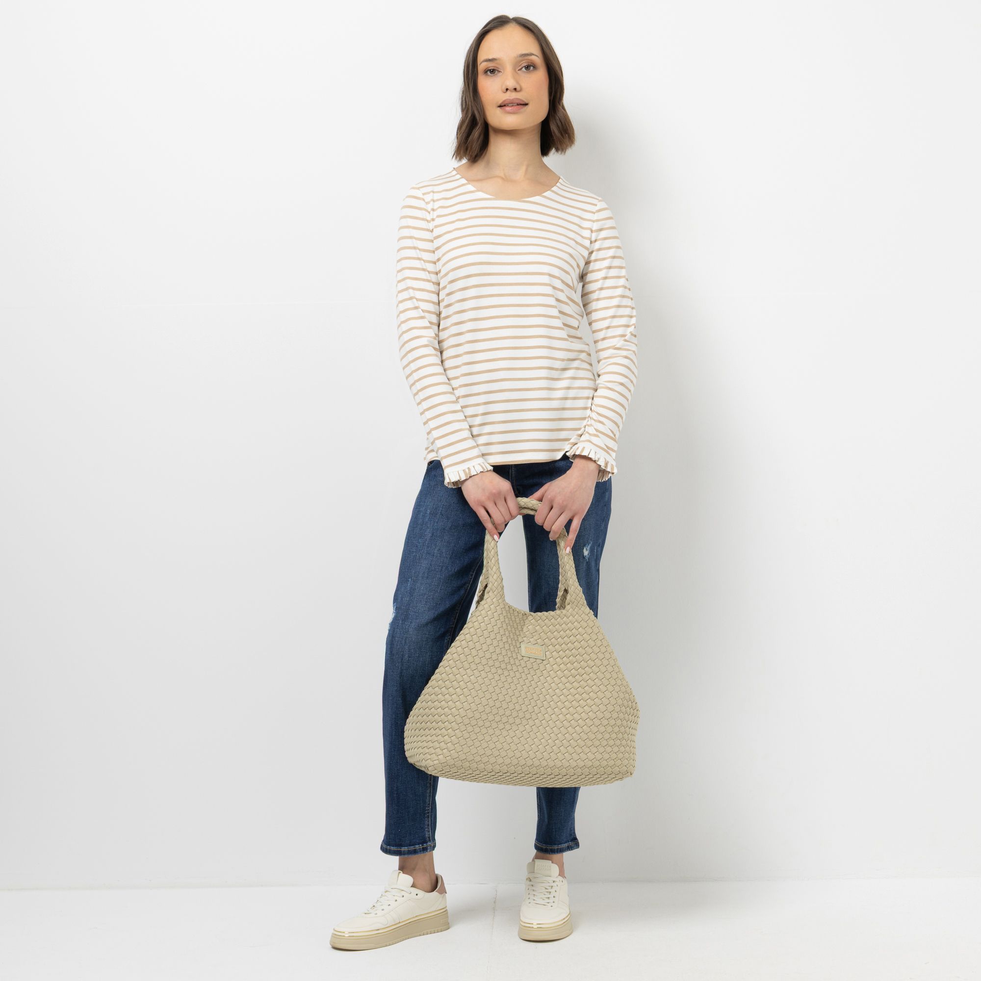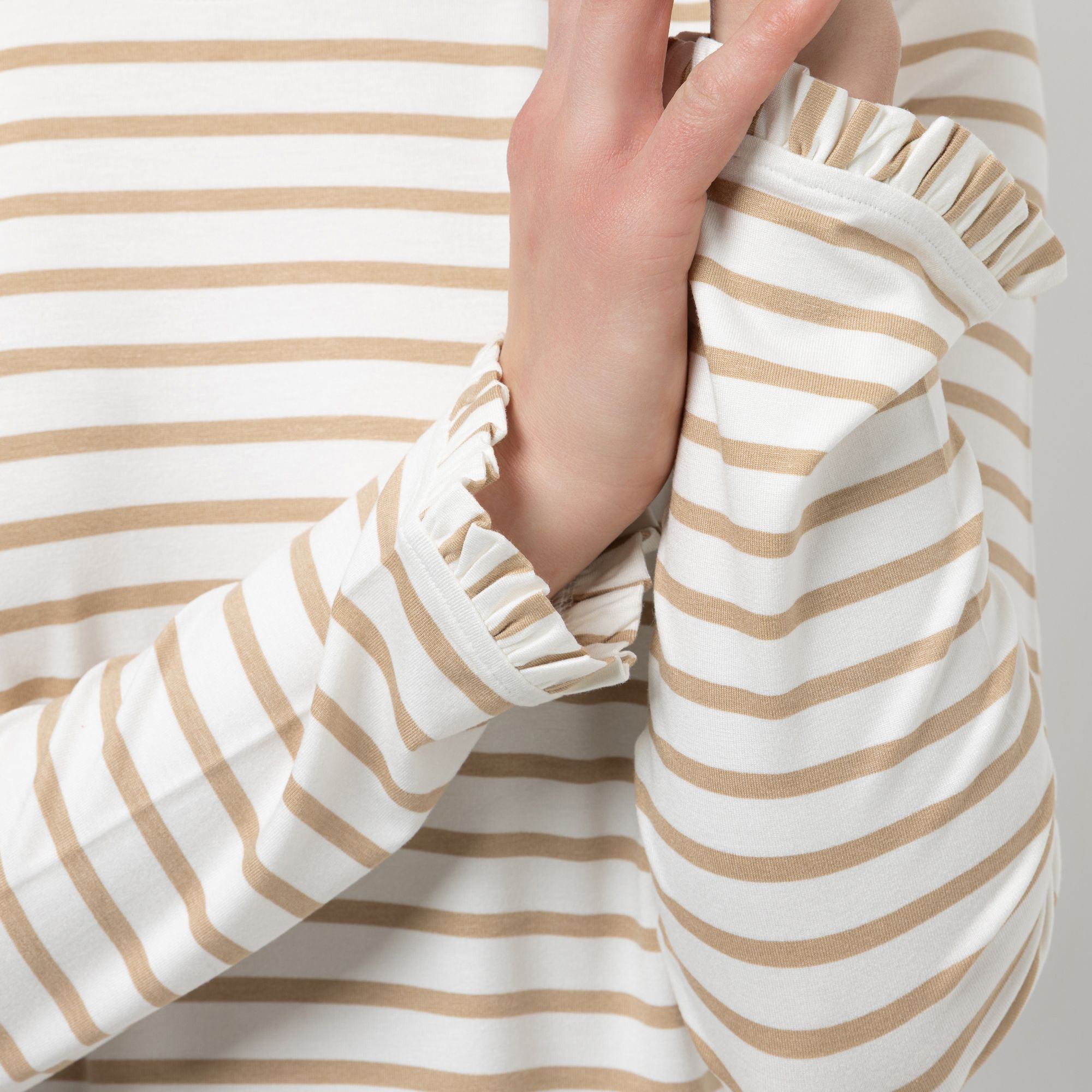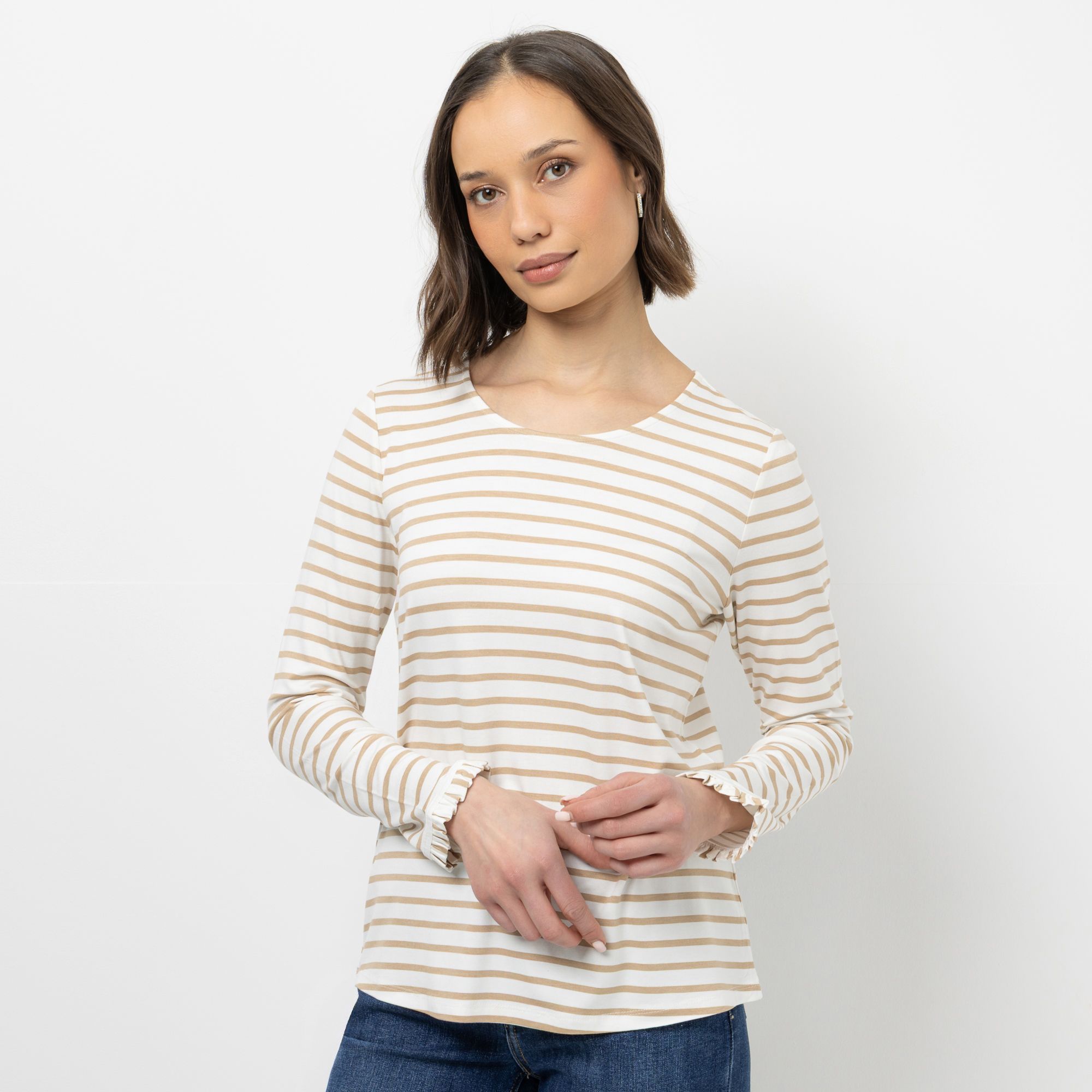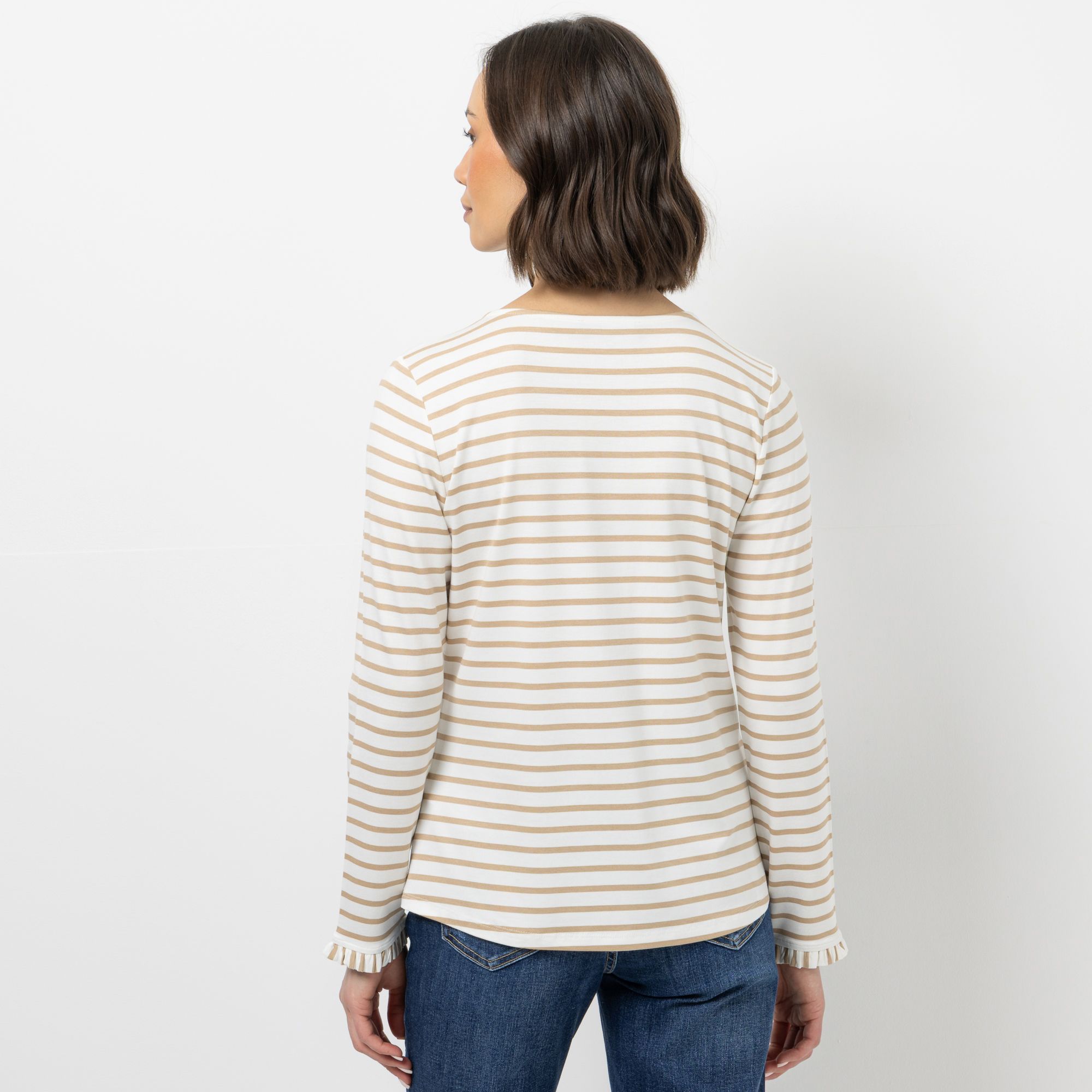 Gestreiftes figurumspielendes Langarmshirt von STEFFEN SCHRAUT mit charmantem Rüschenabschluss am Ärmelsaum