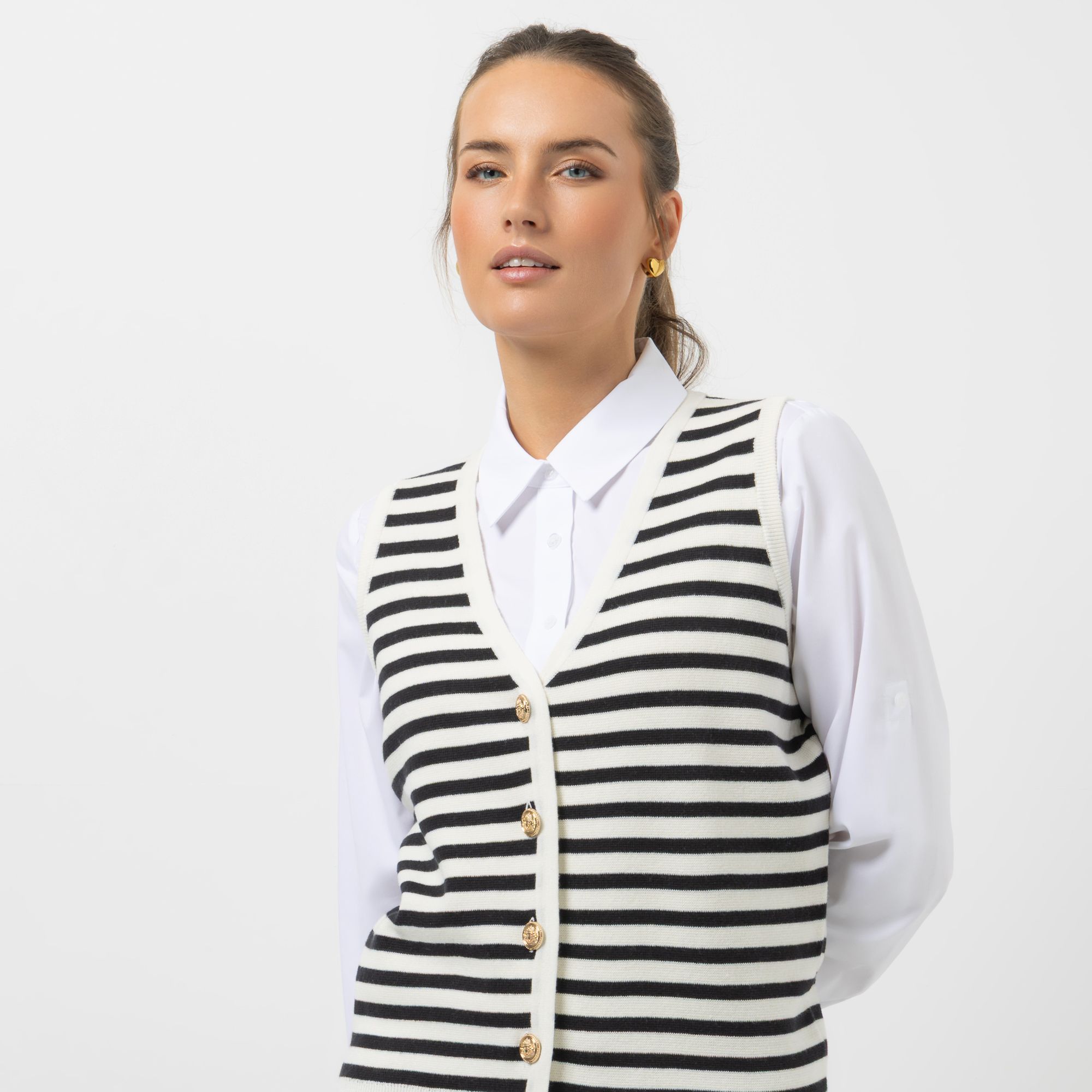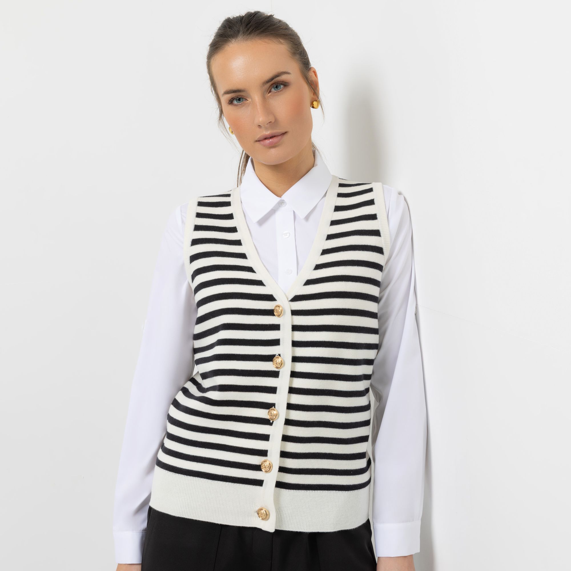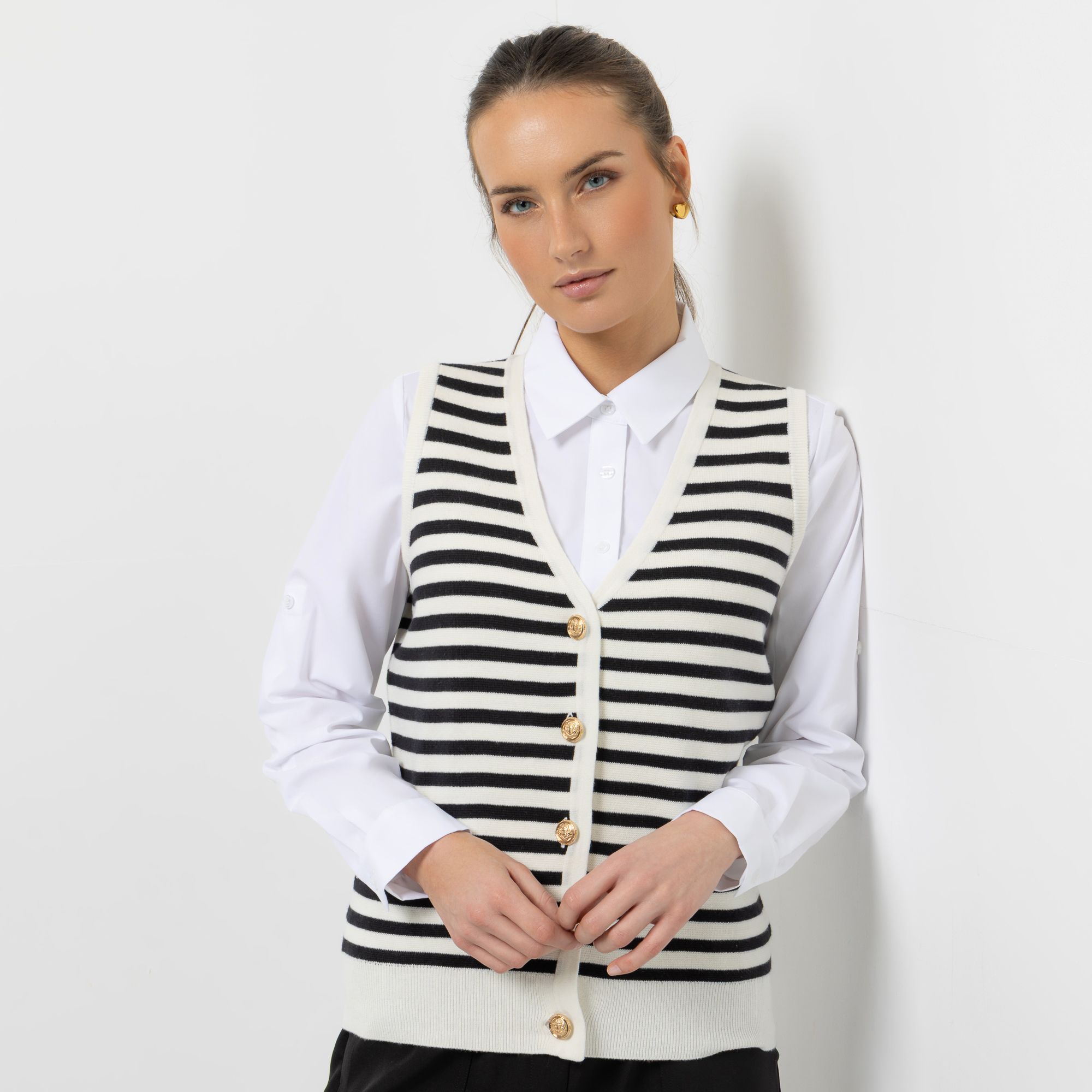 Designer-Strickweste mit Schmuckknöpfen