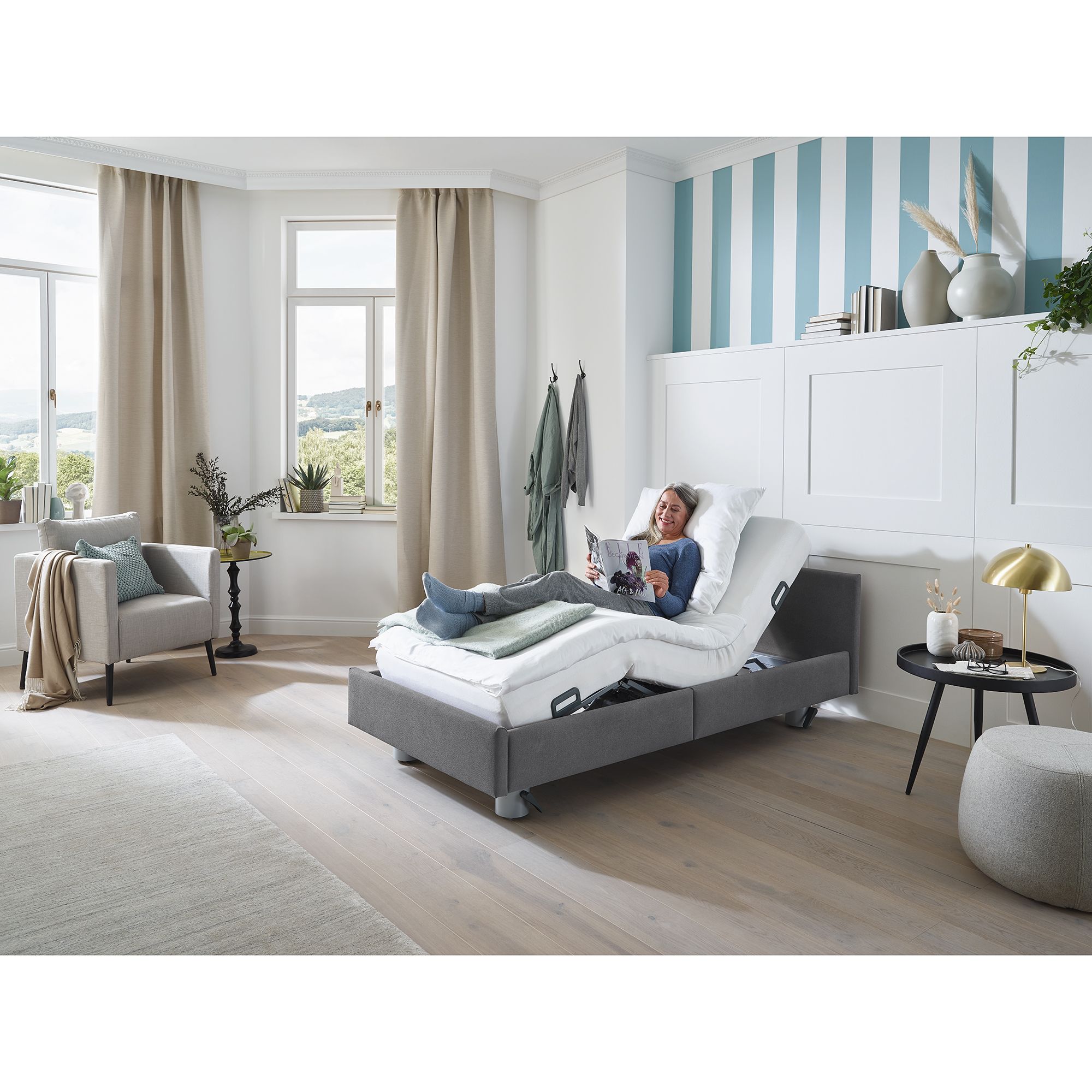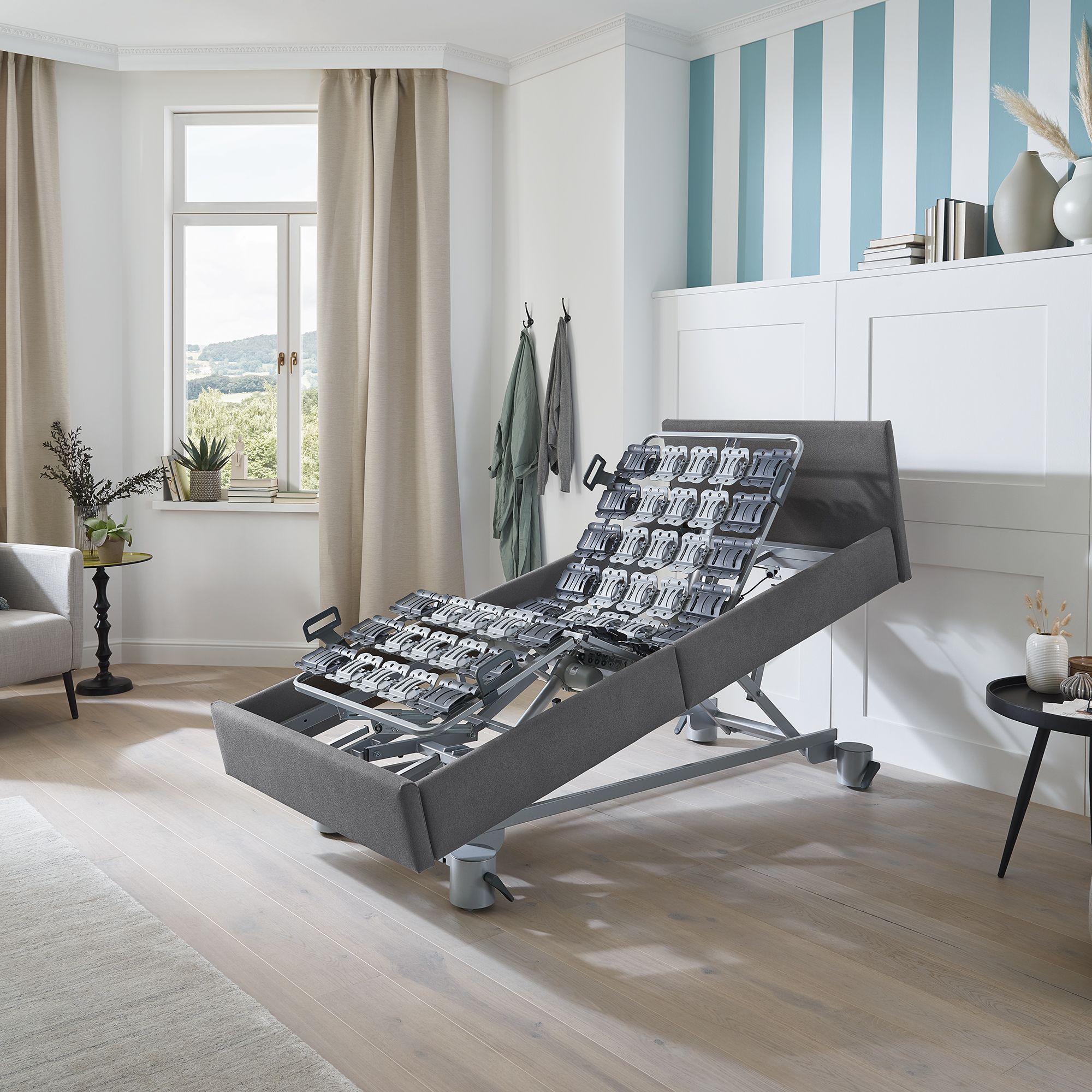 Mit dem STIEGELMEYER Polsterbett LIBRA sicherst du dir hilfreiche Unterstützung im Alltag bis ins hohe Alter hinein. Denn das konfigurierbare Komfortbett bietet u. a. mit elektrischer Höhenverstellung und leichtgängigen Rollen Attribute, die dein Leben erleichtern. Unterstützung beim Aufstehen, das vereininfachte Bettenmachen durch die Höhenverstellung und die Möglichkeit, das Bett z. B. in eine Sesselposition zu bringen, sind nur einige der Vorteile von LIBRA. Darüber hinaus garantiert dir die luxuriöse Liegefläche mit 50 freischwingenden Elementen höchsten Schlafkomfort.