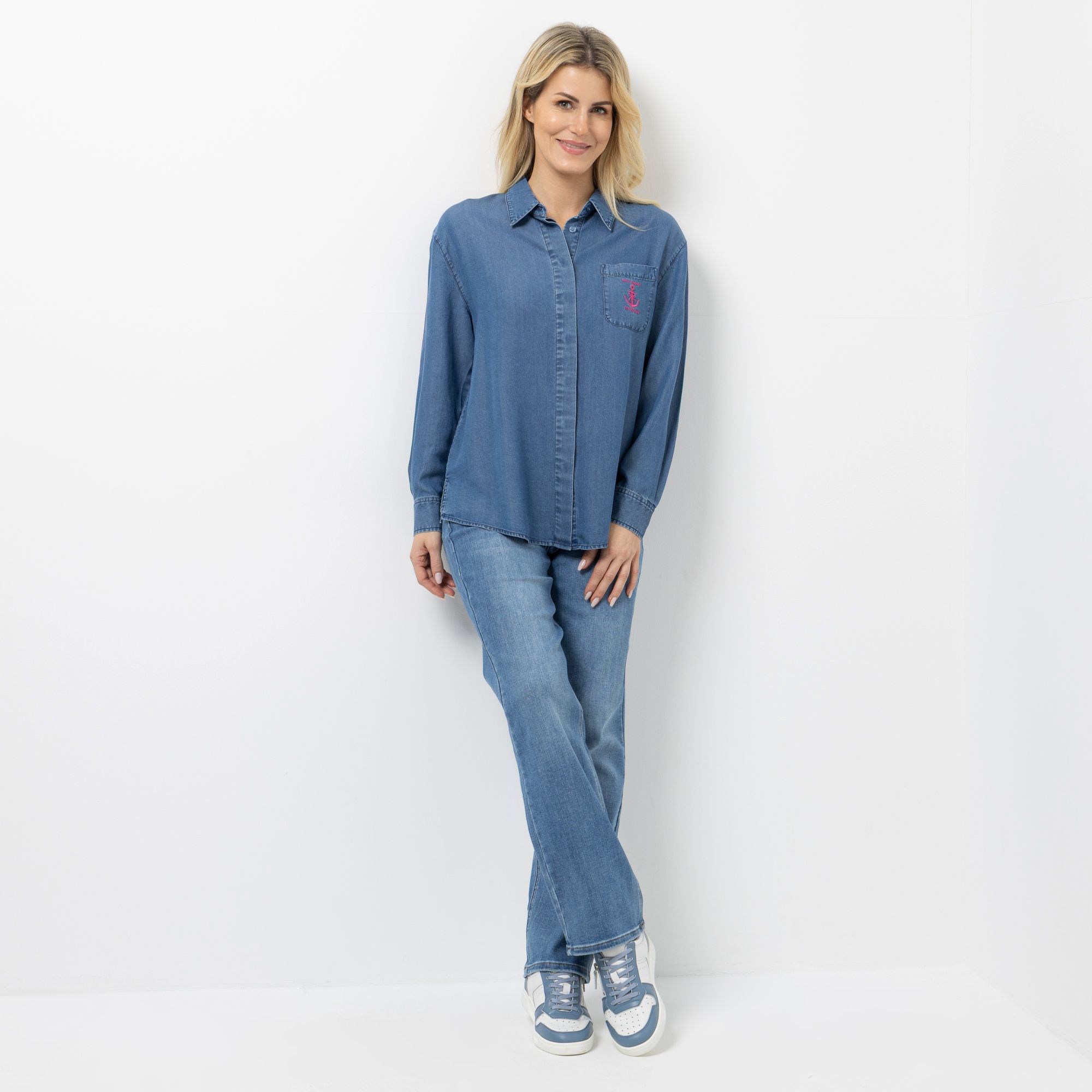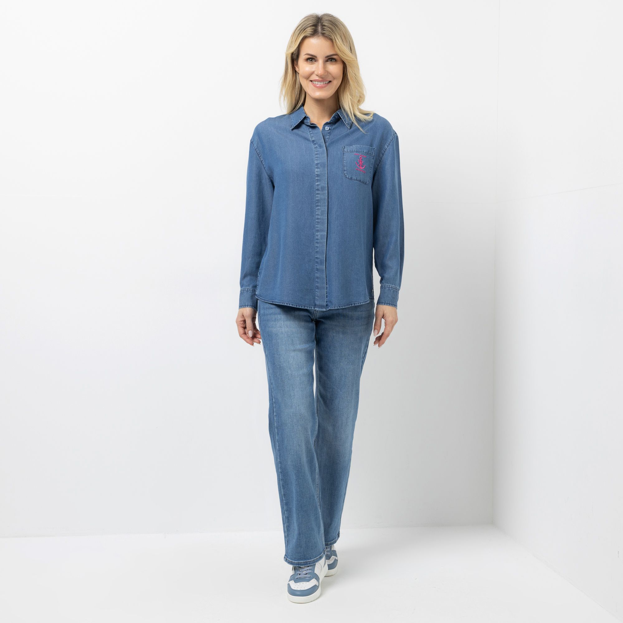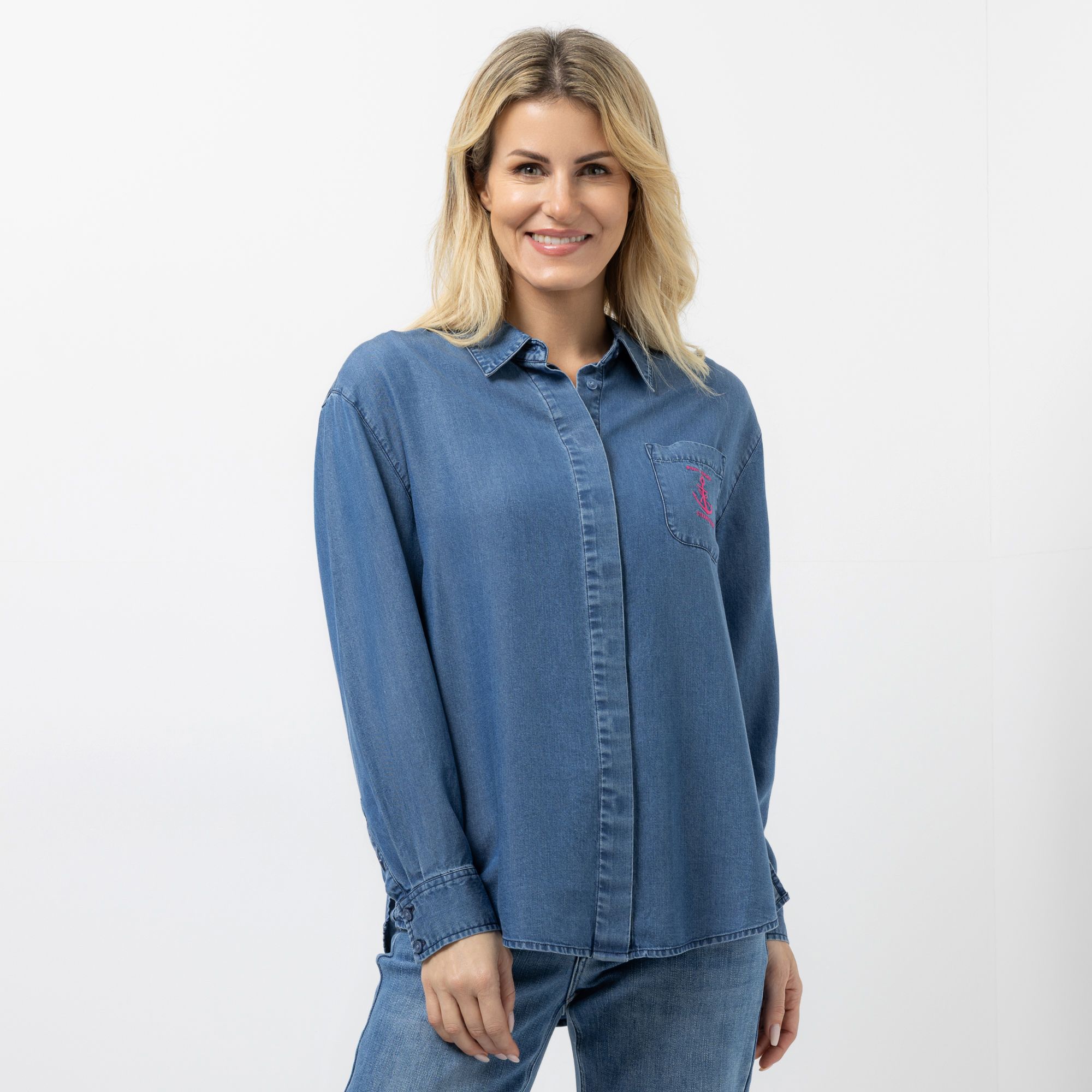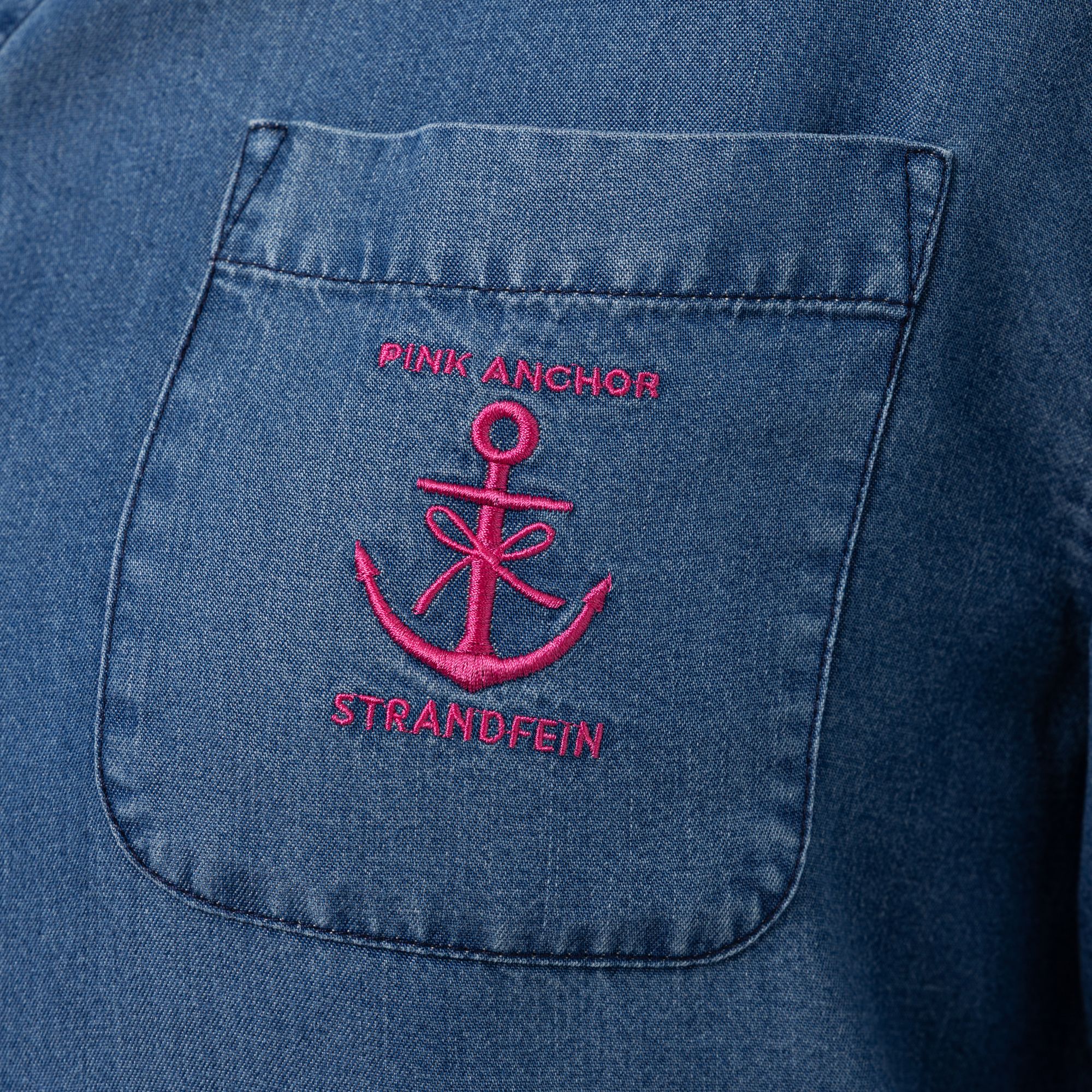 STRANDFEIN Bluse, Lyocell Hemdblusenkragen mit Logodruck figurumspielend