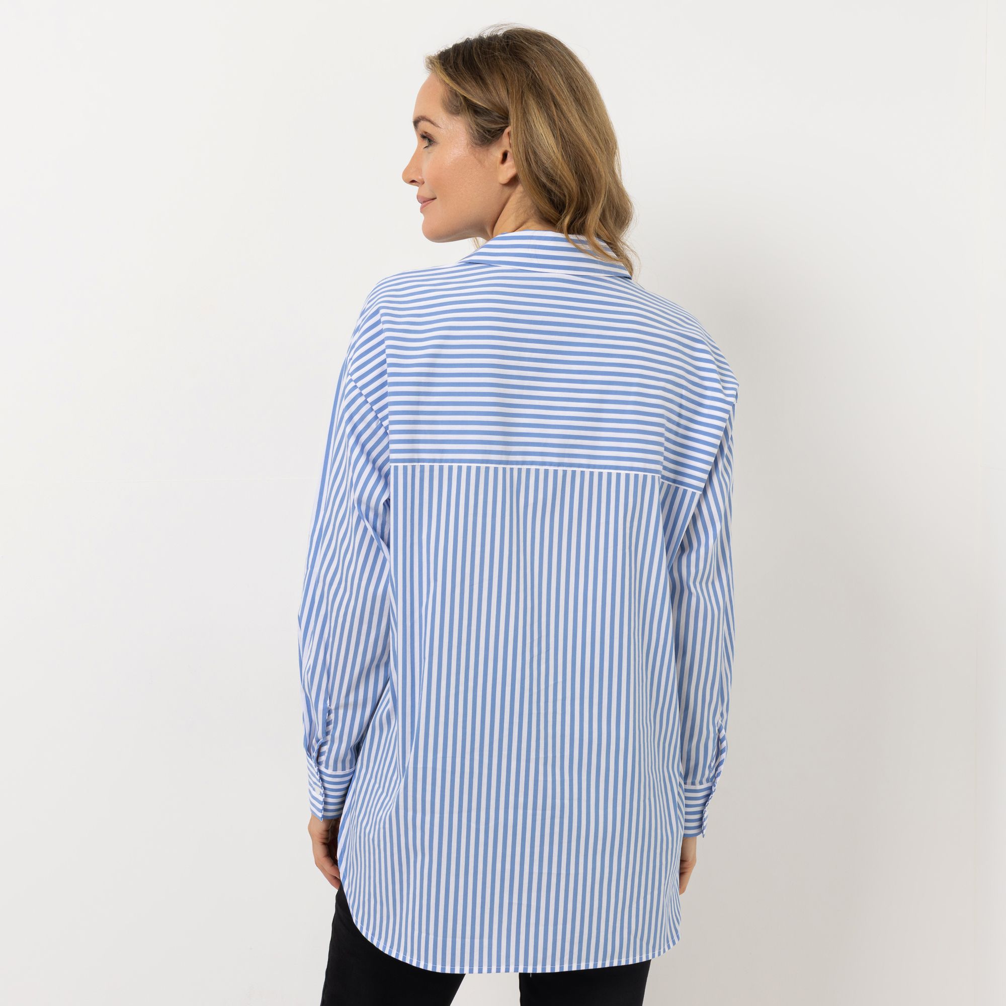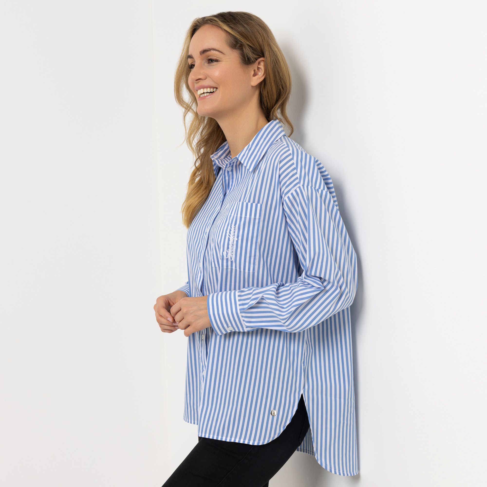 STRANDFEIN Bluse, oversized Hemdblusenkragen Brusttasche leger weit