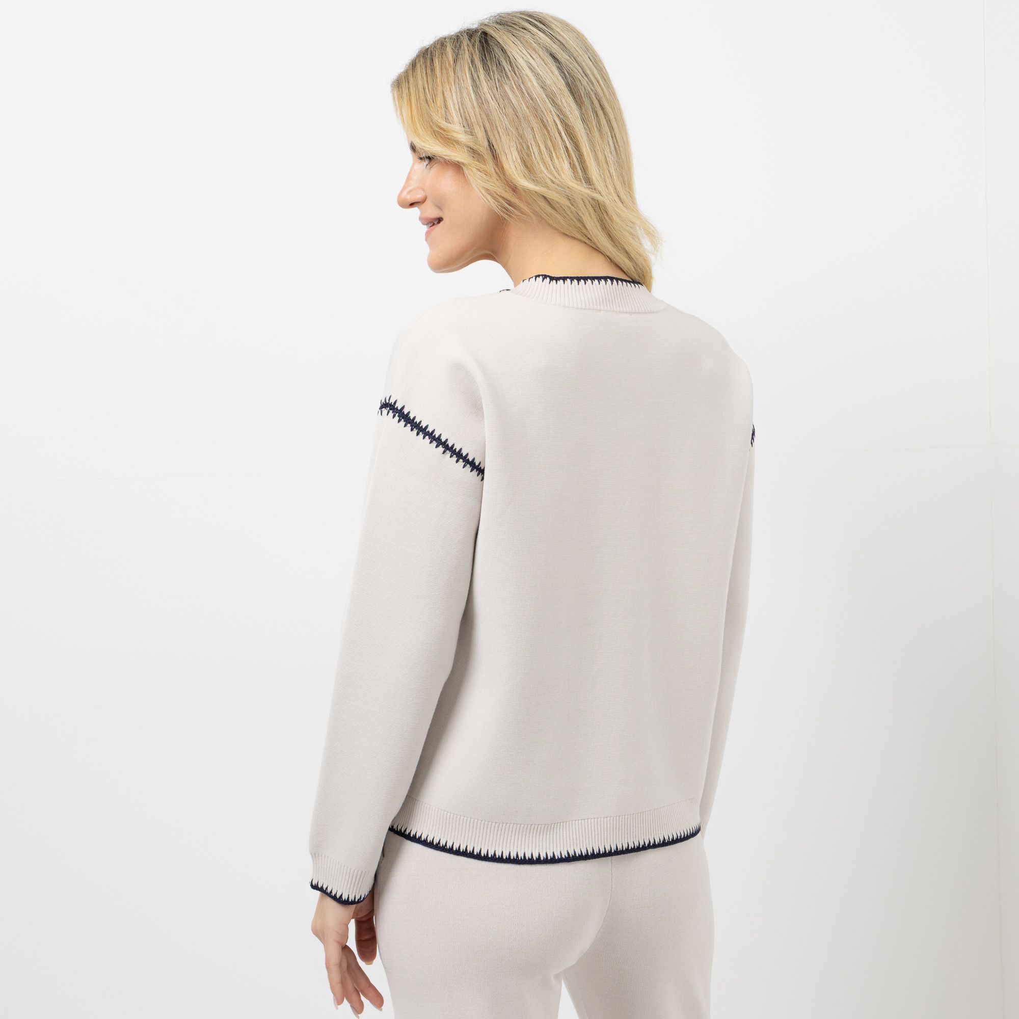 STRANDFEIN Cardigan 1/1-Arm Rundhalsausschnitt Ziernähte figurumspielend