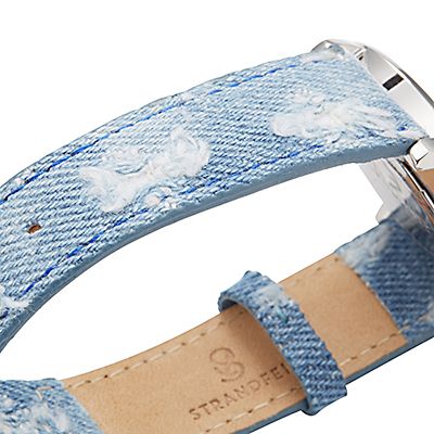Lässiger Charme fürs Handgelenk: Die Damenuhr von STRANDFEIN besticht durch ihre stilvolle Optik ebenso wie durch ihr Jeans-Armband im Used-Look. Dank Leder-Innenseite bietet die attraktive Uhr einen hohen Tragekomfort. Passend zum modisch-maritimen Charakter des Accessoires kommt das Ziffernblatt in Blau, die Indizes als dezente Striche.