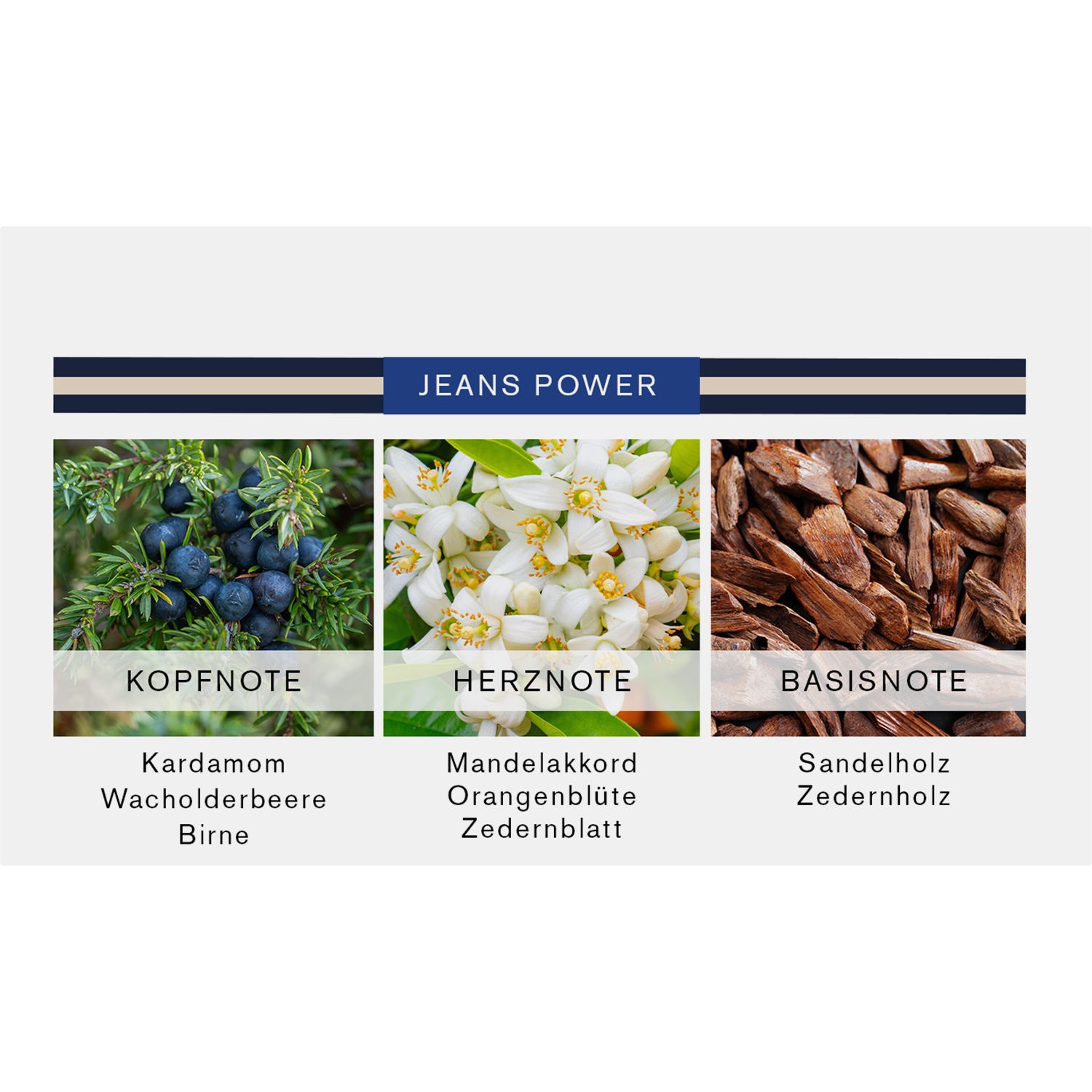 - Herznoten: Mandel-Akkord, Orangenblüte, Zedernblatt