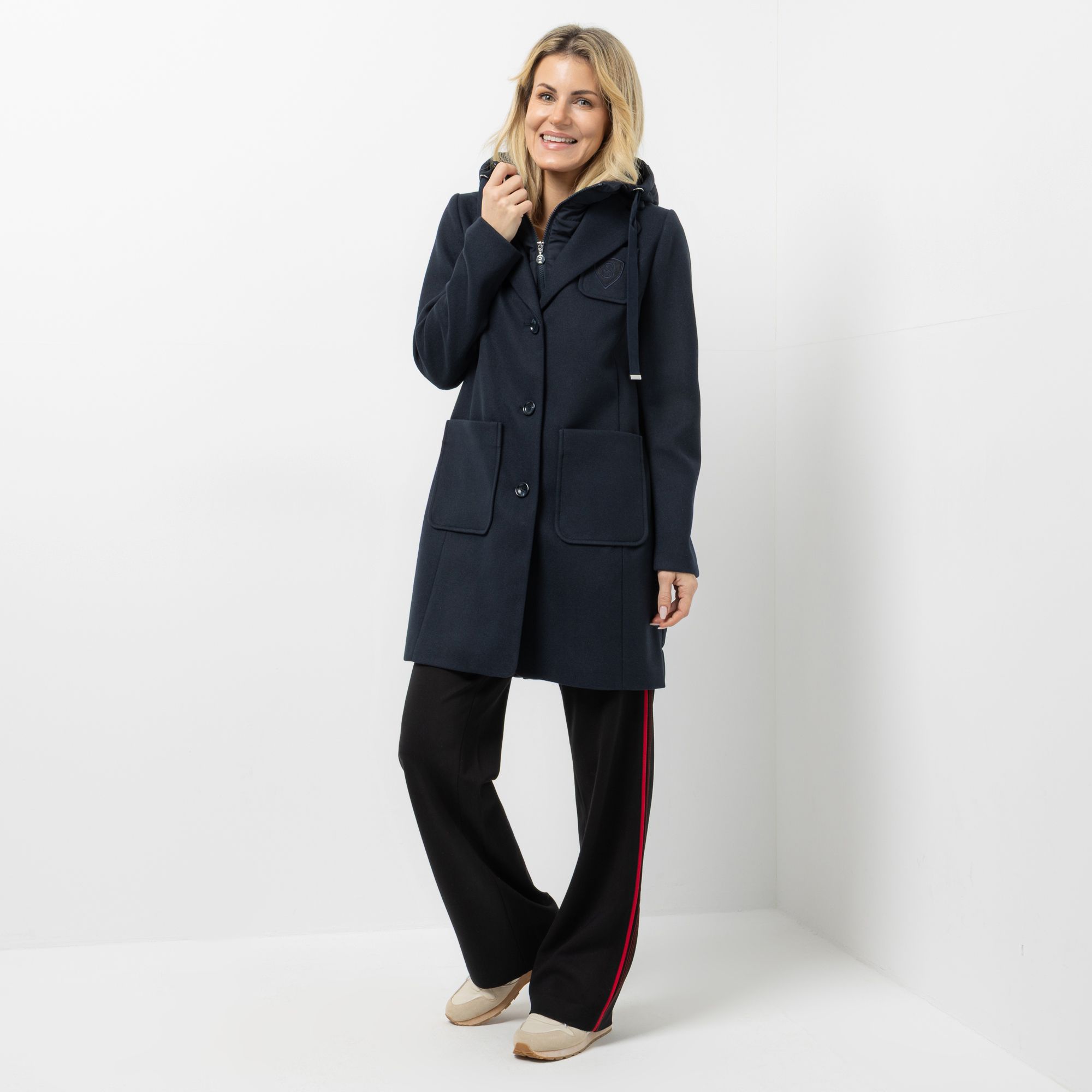 STRANDFEIN Outdoormantel 2in1 Look abnehmbare Kapuze figurumspielend