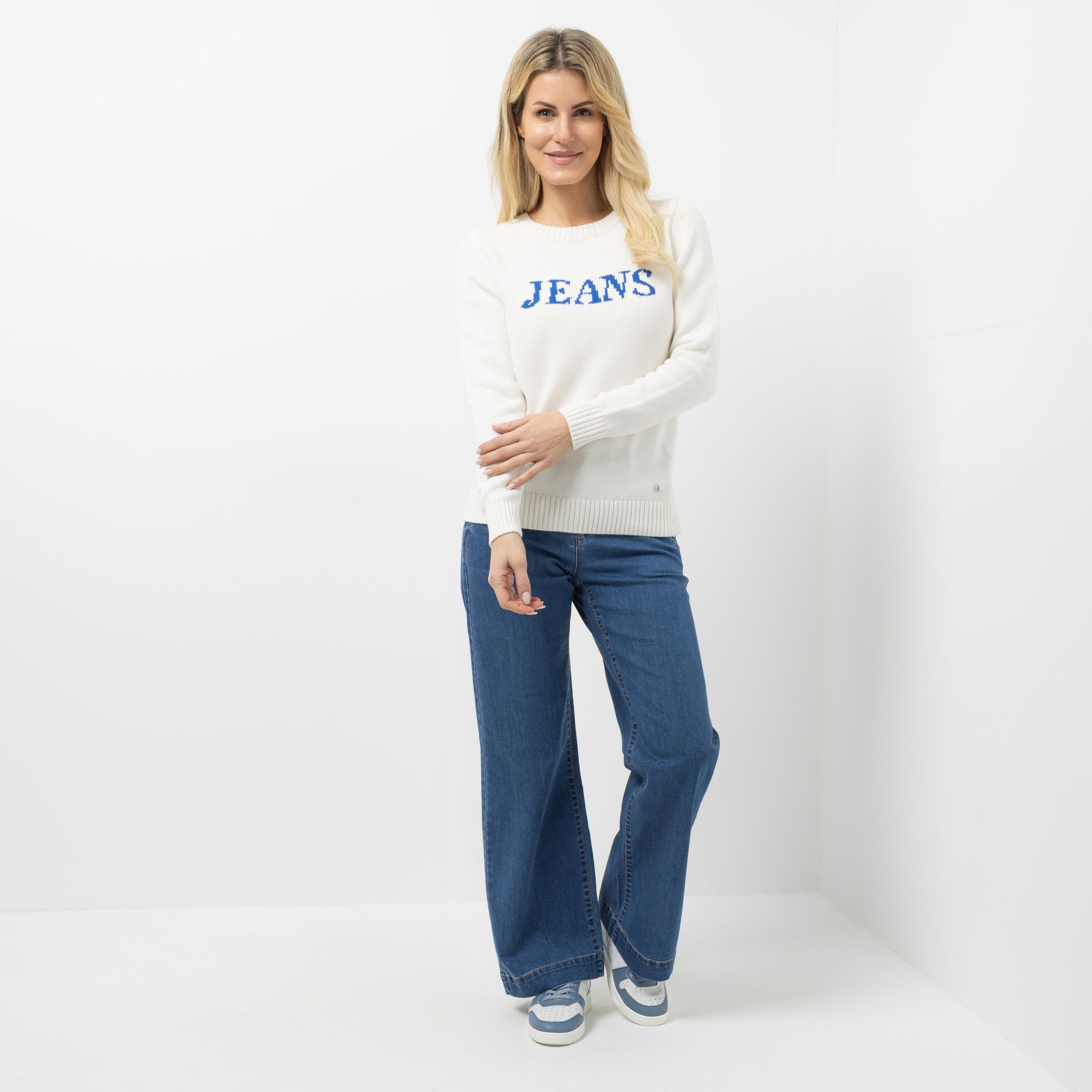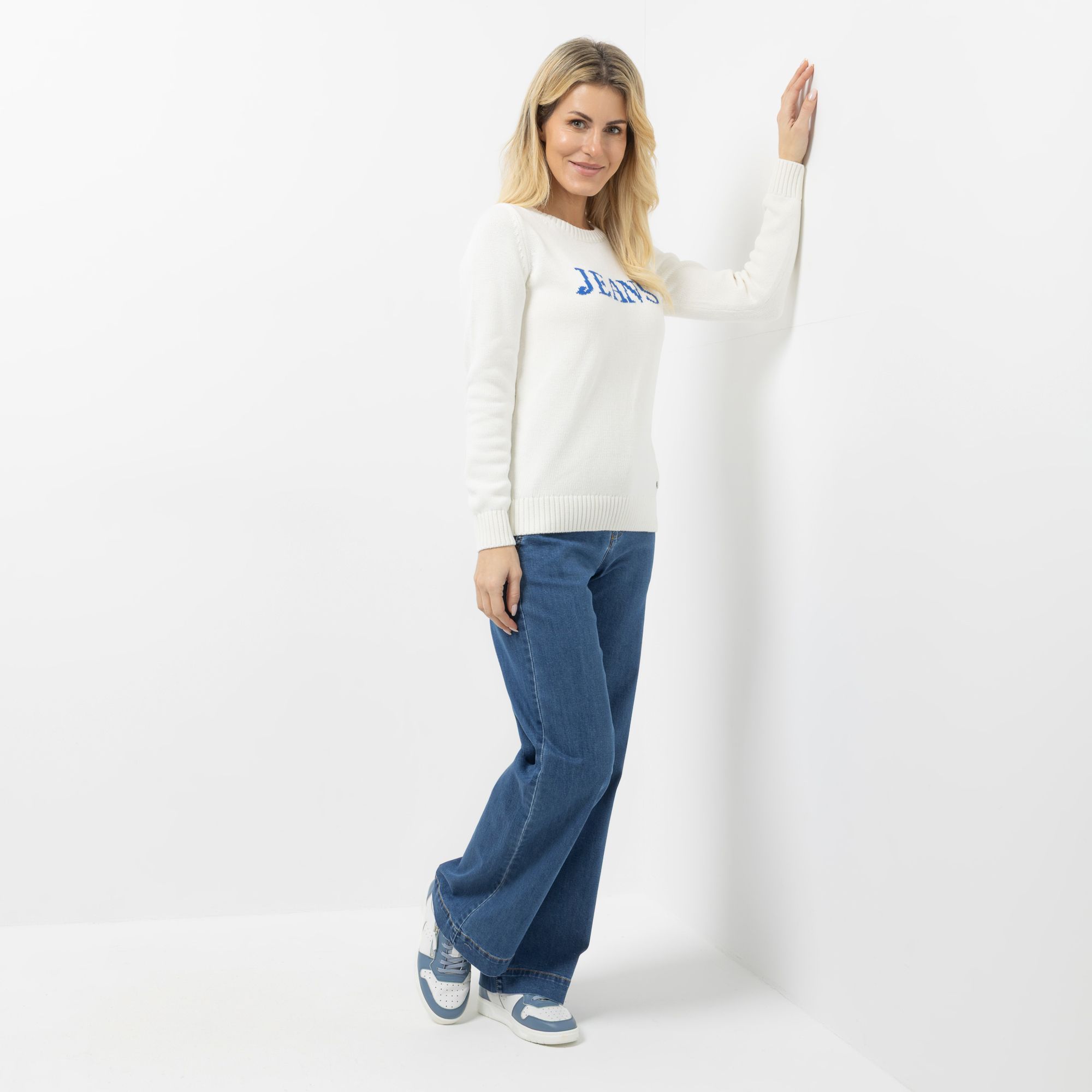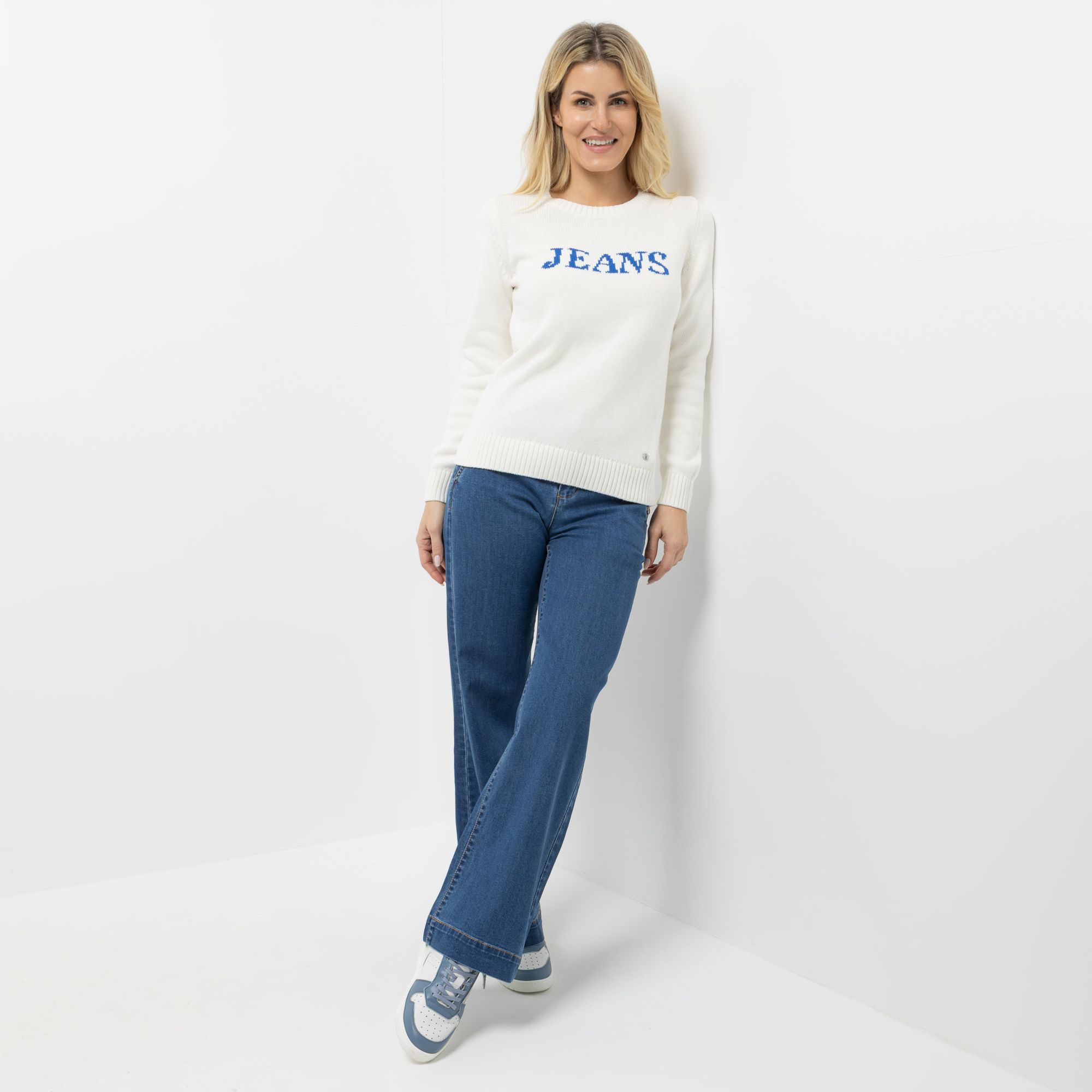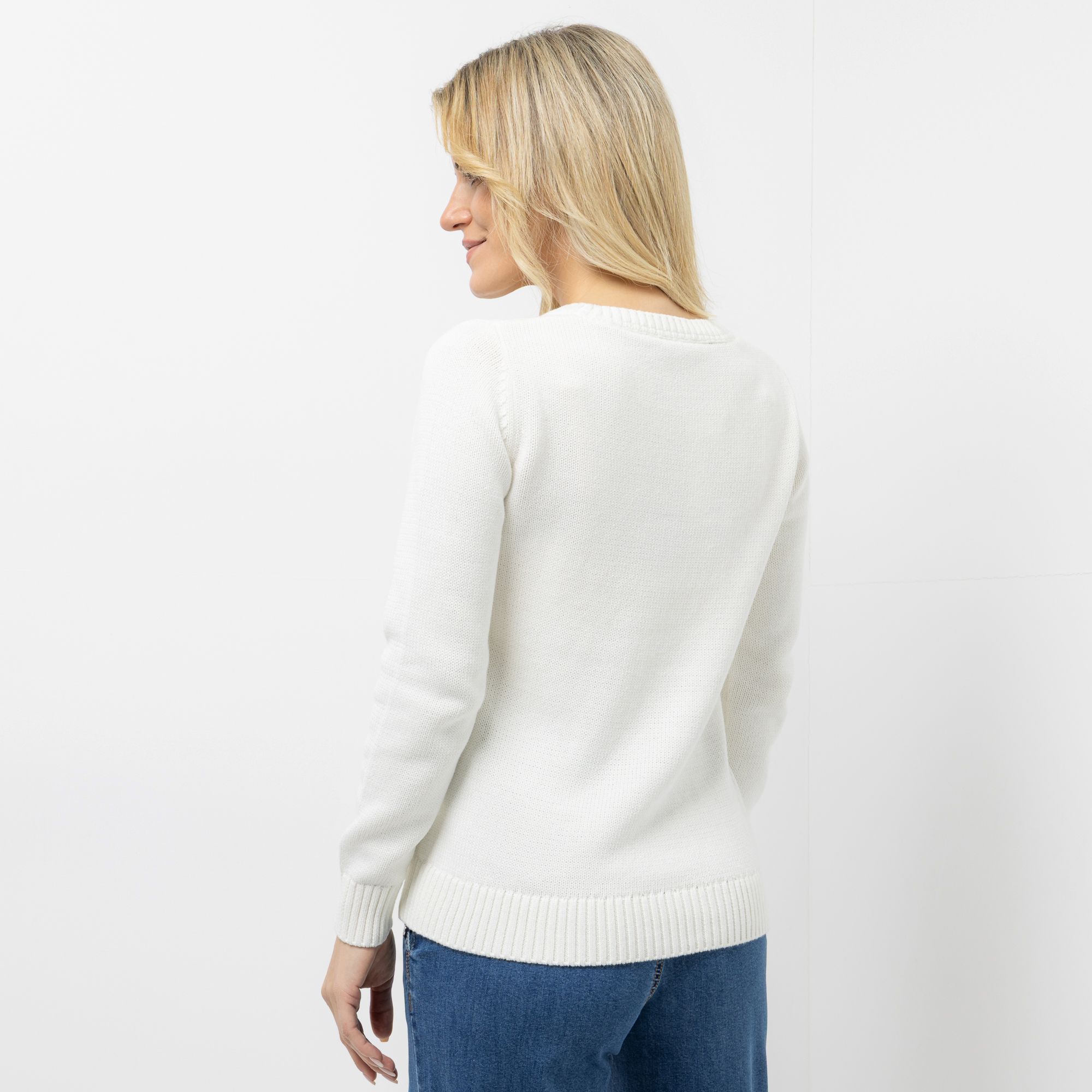 STRANDFEIN Pullover Rundhalsausschnitt Motiv-Intarsie figurumspielend