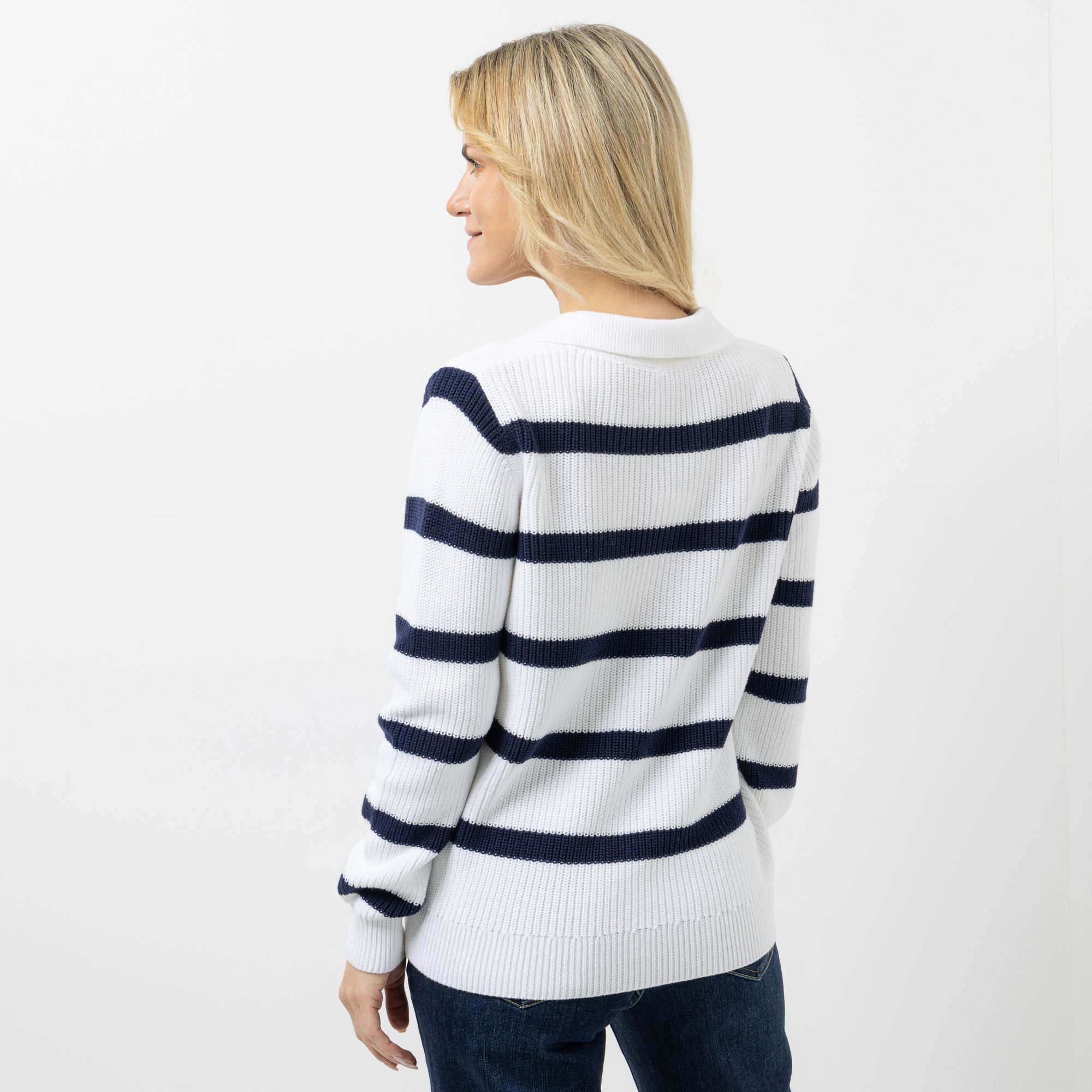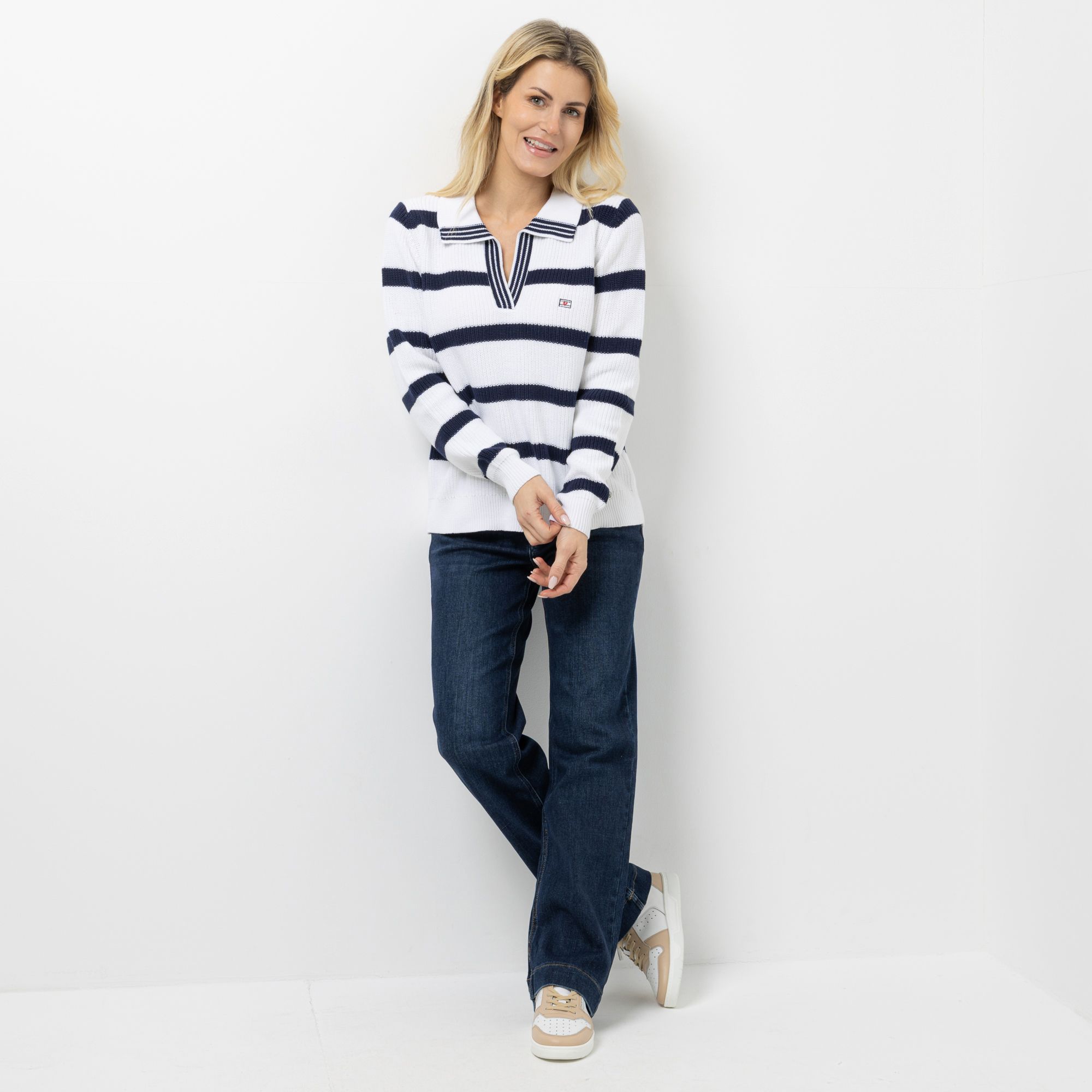 STRANDFEIN Pullover V-Ausschnitt Polo-Kragen figurumspielend