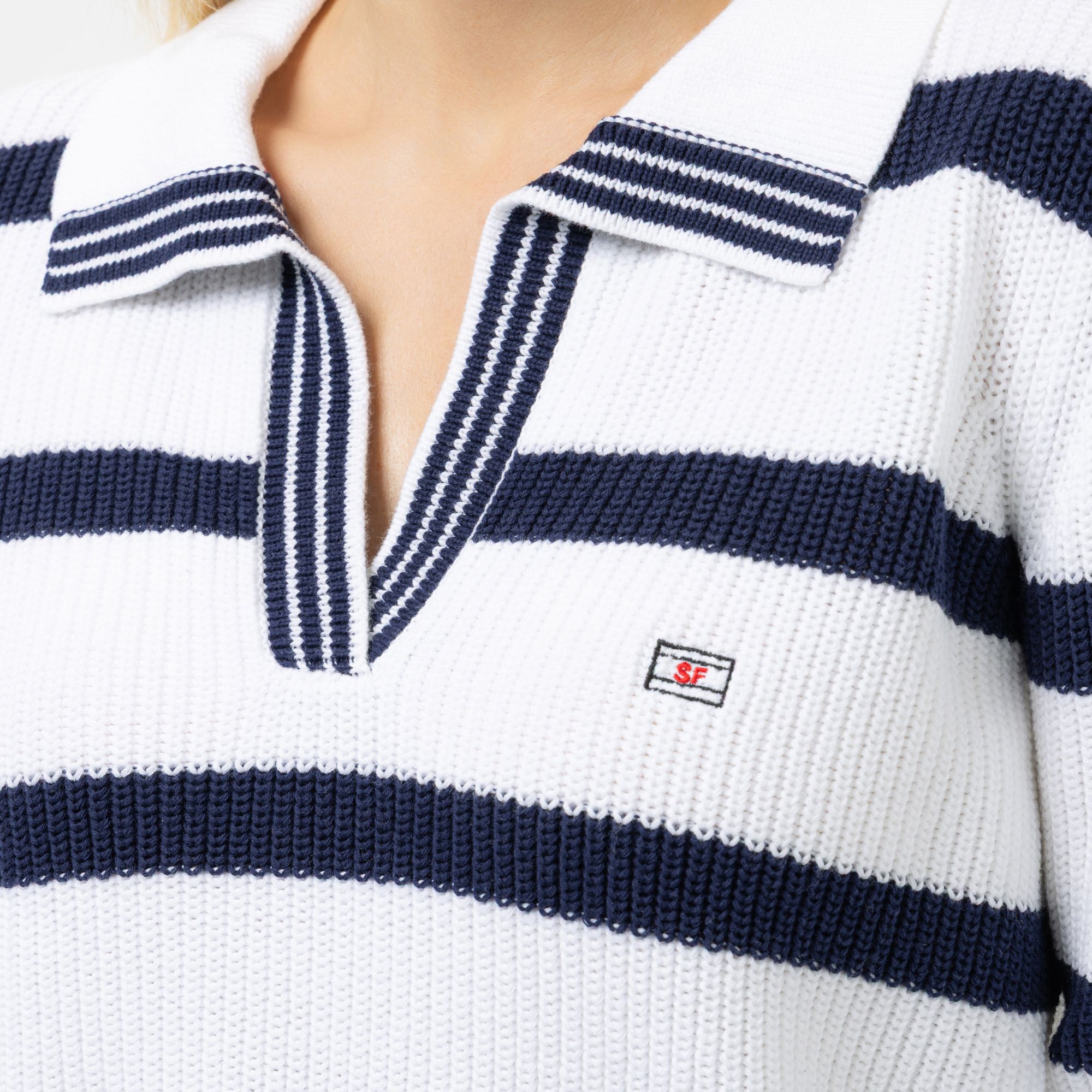 Der Pullover von STRANDFEIN kommt mit Streifen & Stickerei – ein toller Klassiker