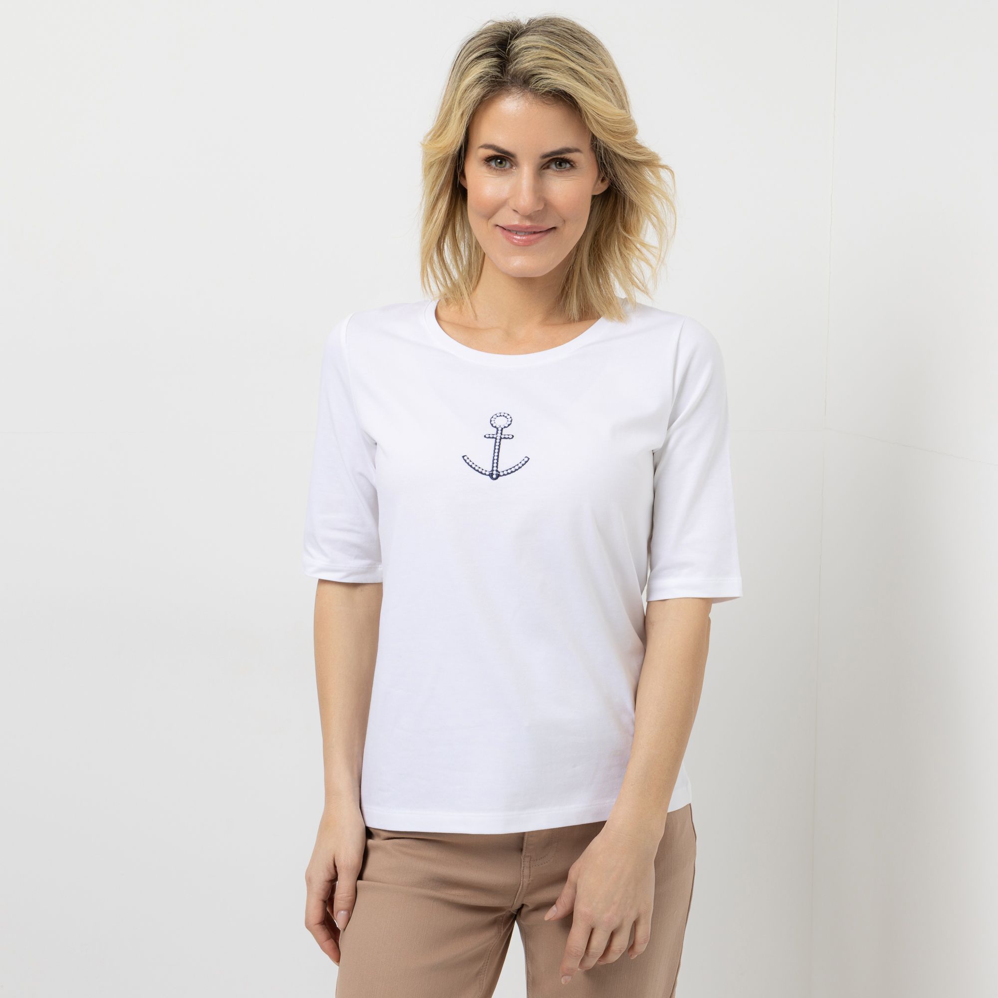 STRANDFEIN Shirt, 1/2-Arm Rundhalsausschnitt Anker-Stickerei figurumspielend