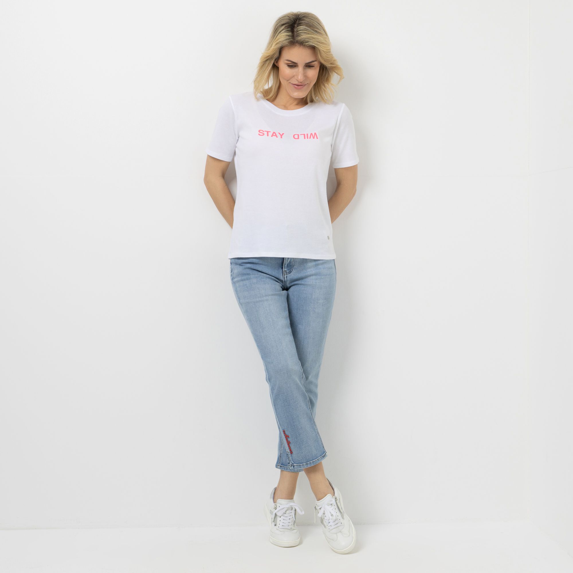 STRANDFEIN Shirt , 1/2-Arm Rundhalsausschnitt Neon-Druck-Detail figurumspielend
