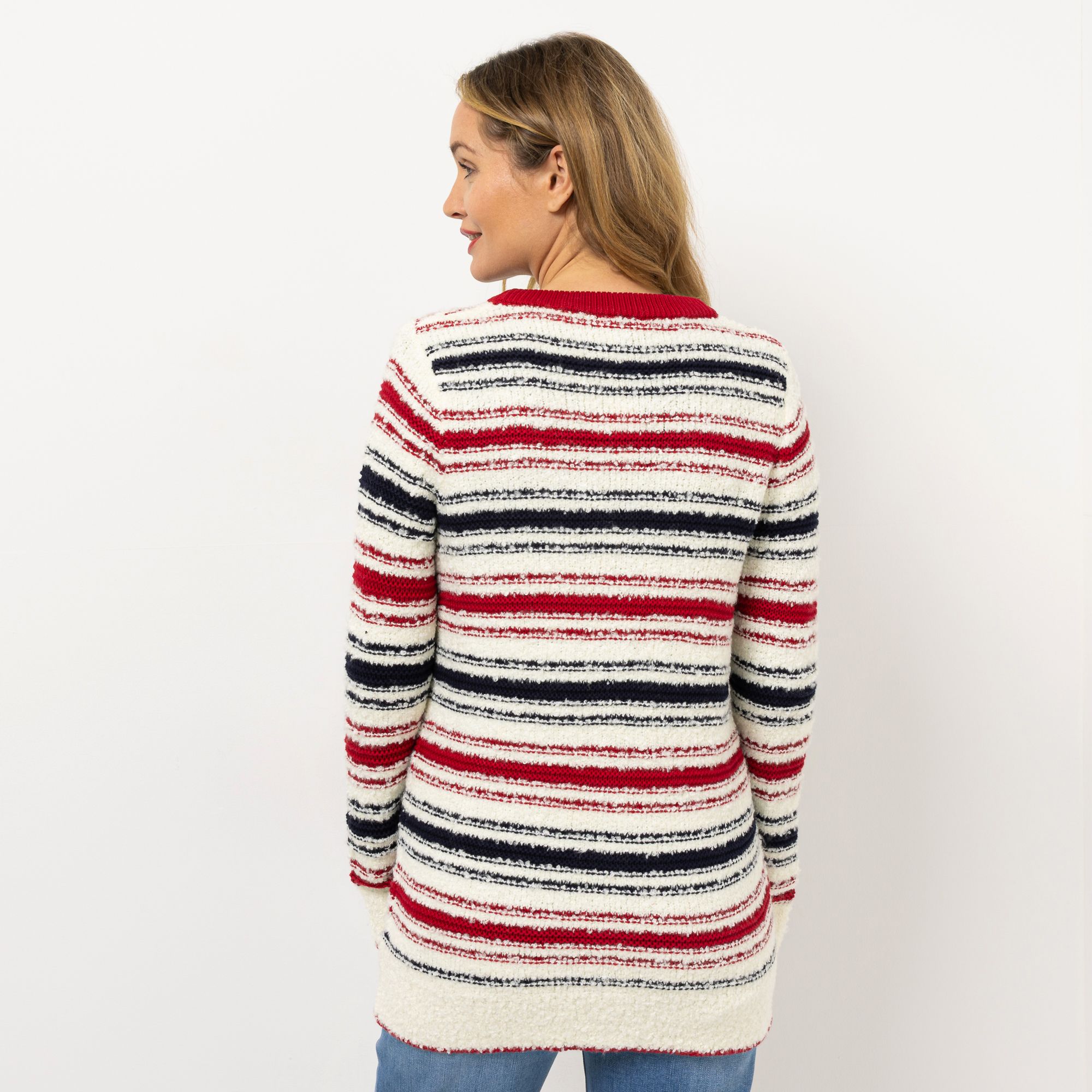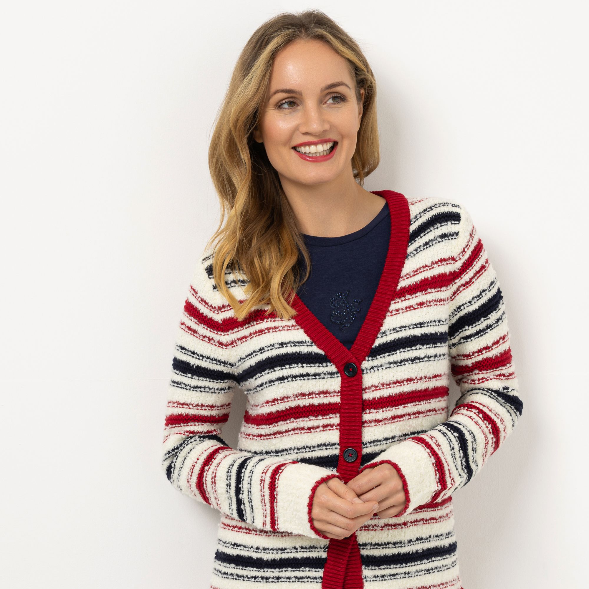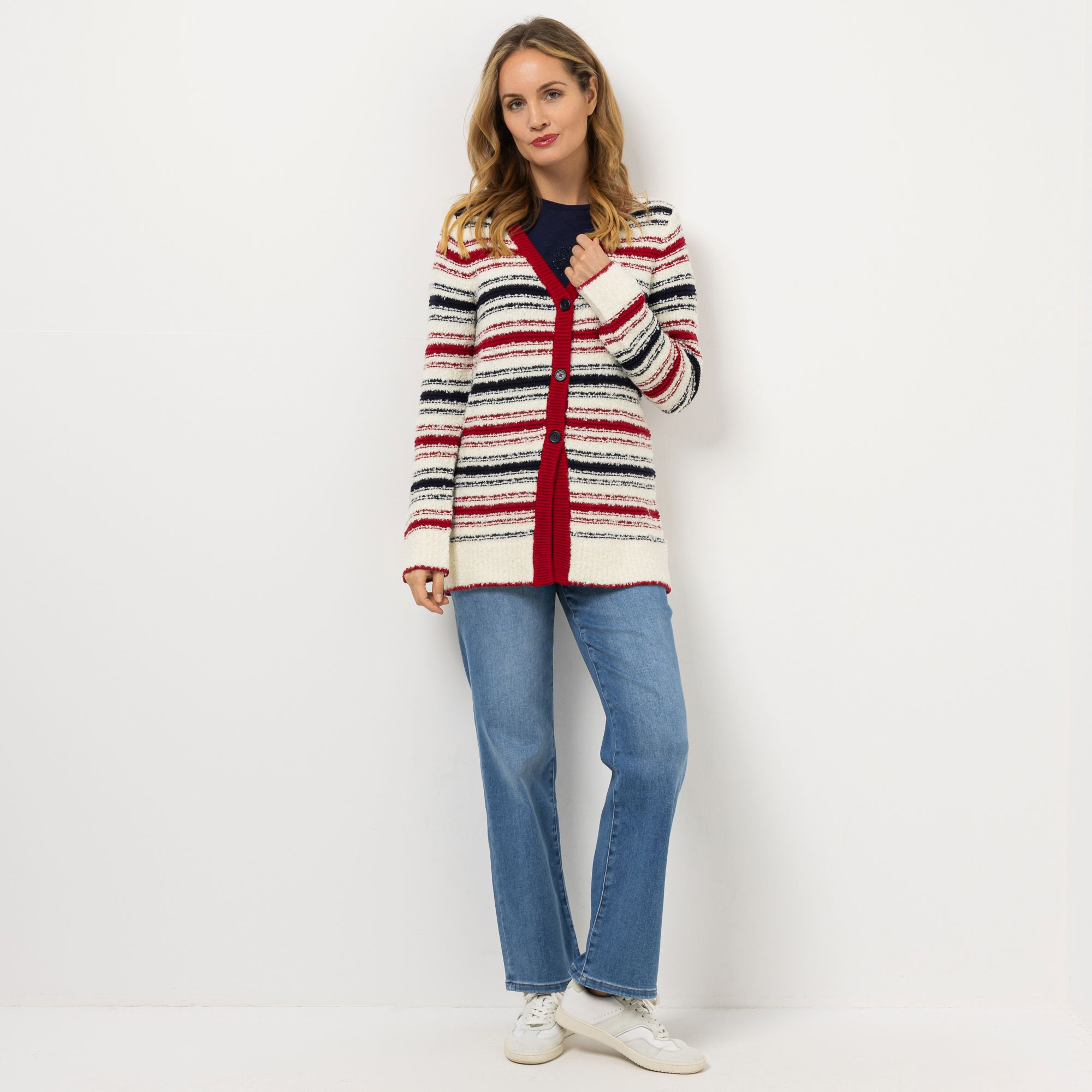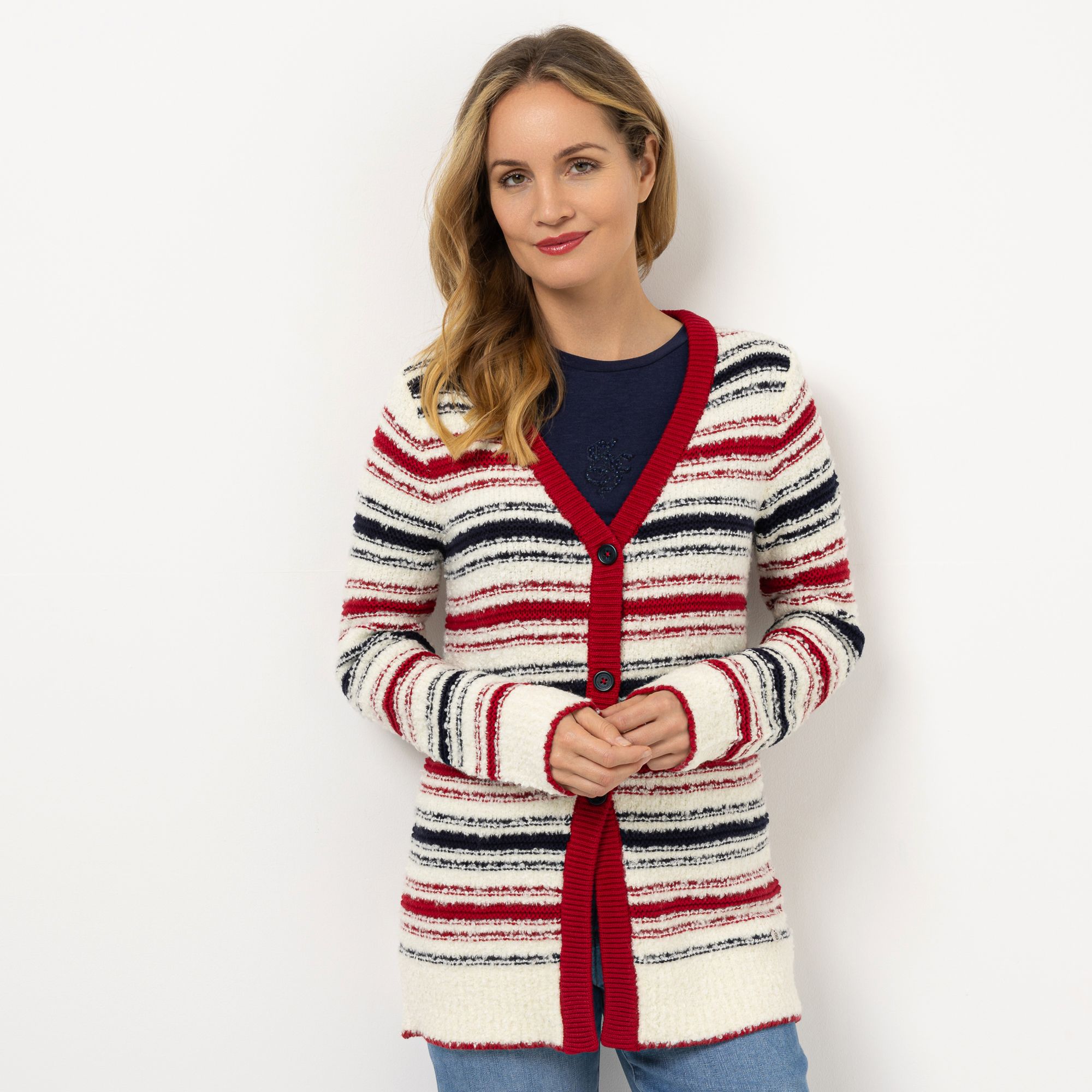 STRANDFEIN Strickjacke V-Ausschnitt multicolor gestreift figurumspielend