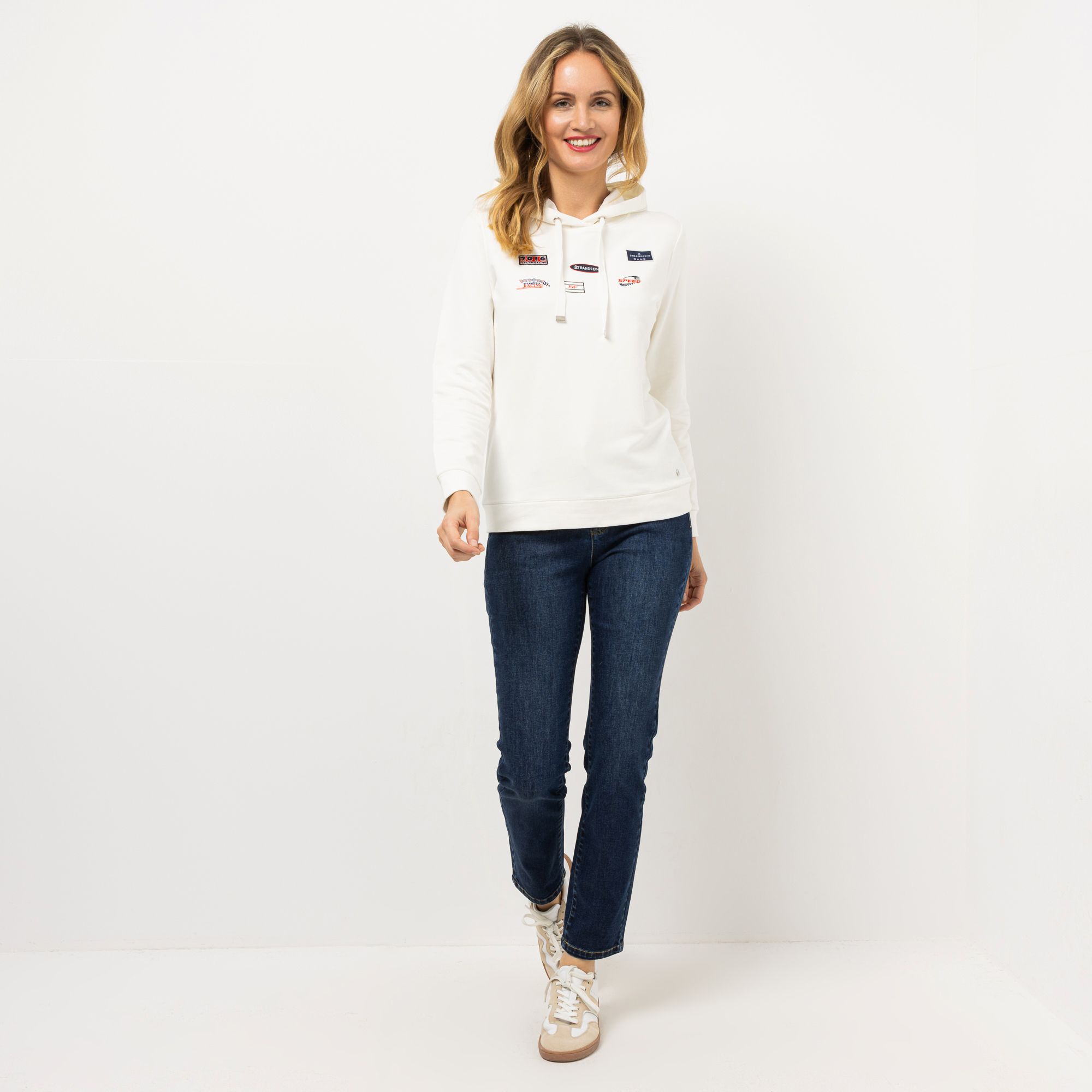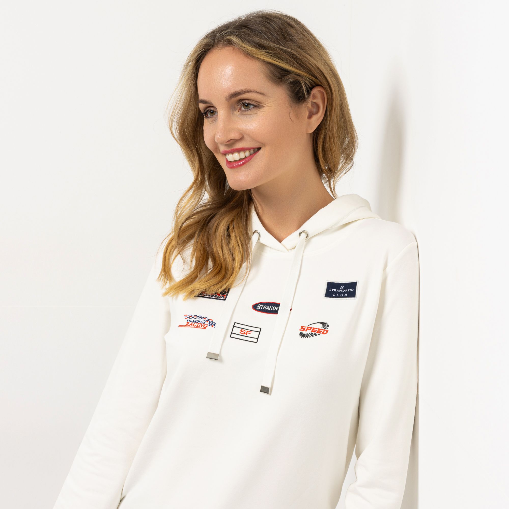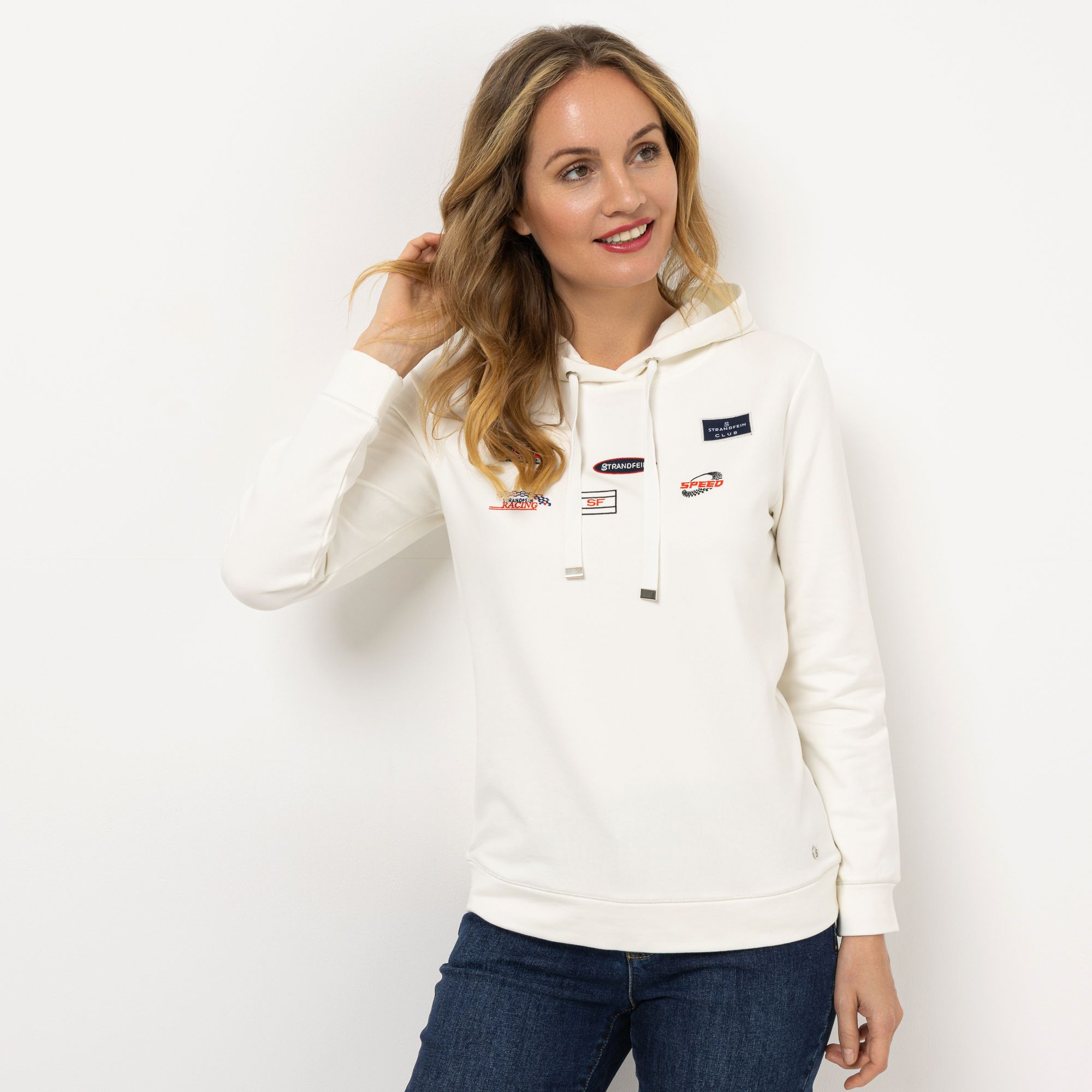 STRANDFEIN Sweatshirt mit Kapuze Logo-Badges figurumspielend